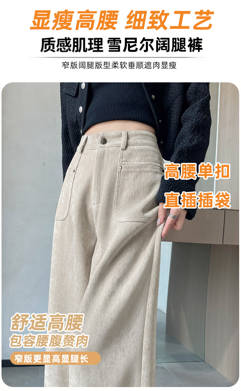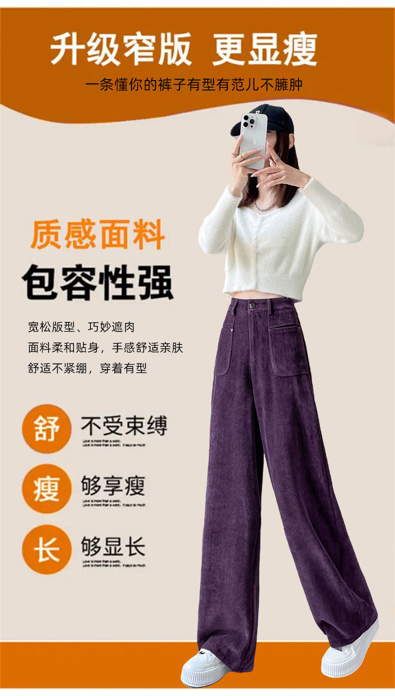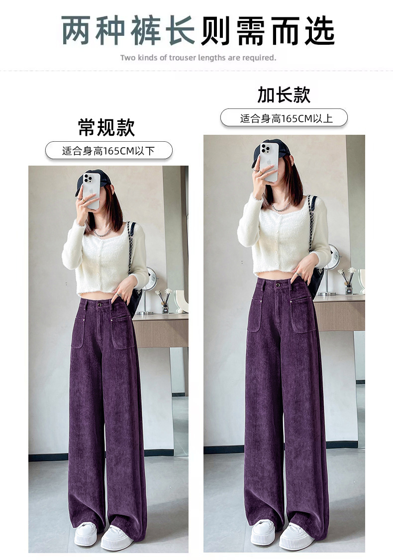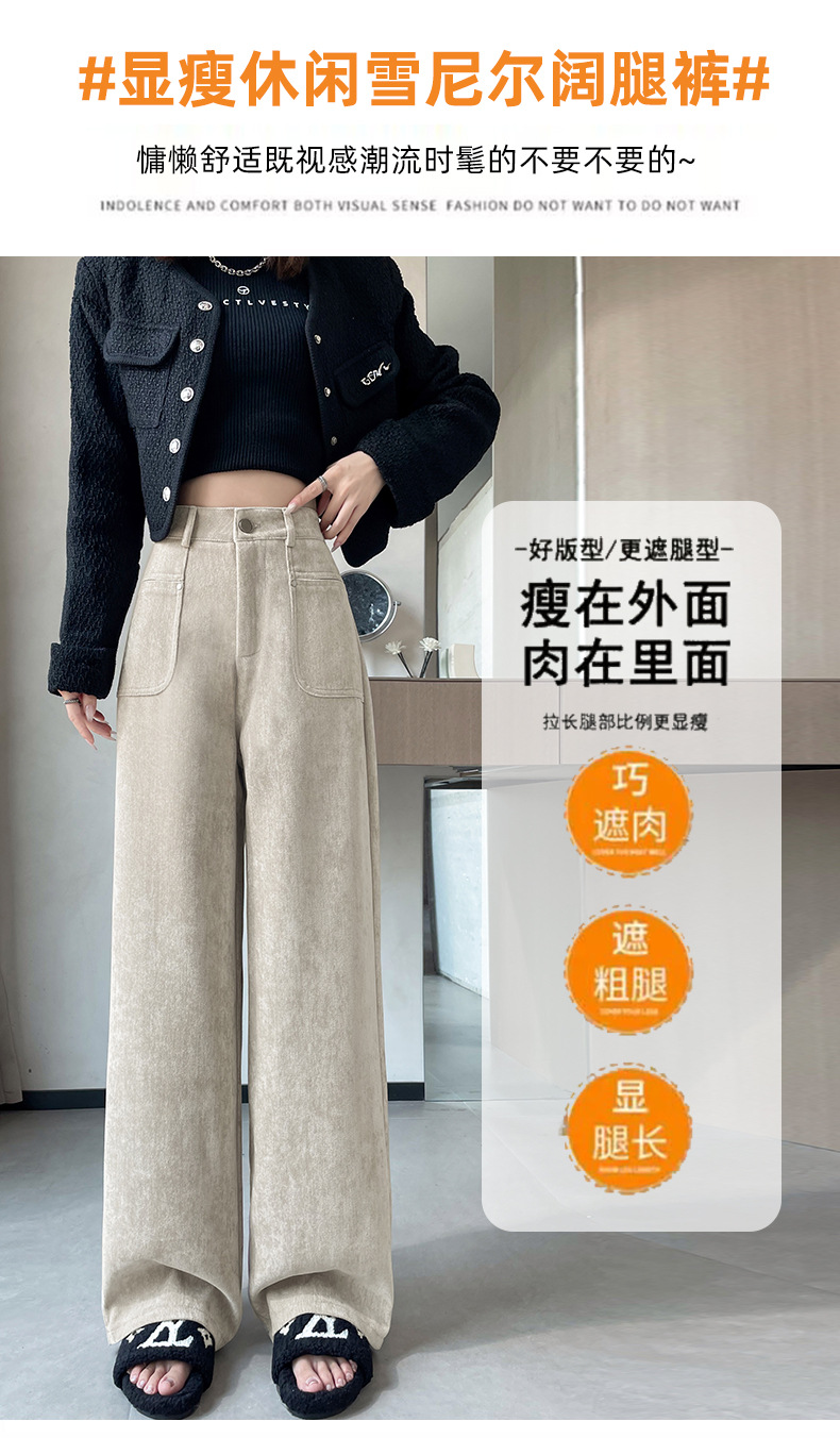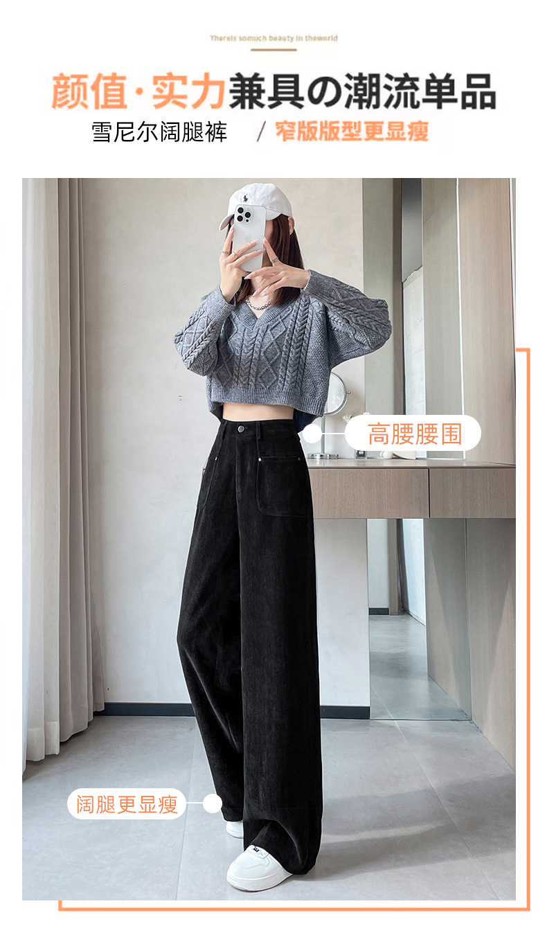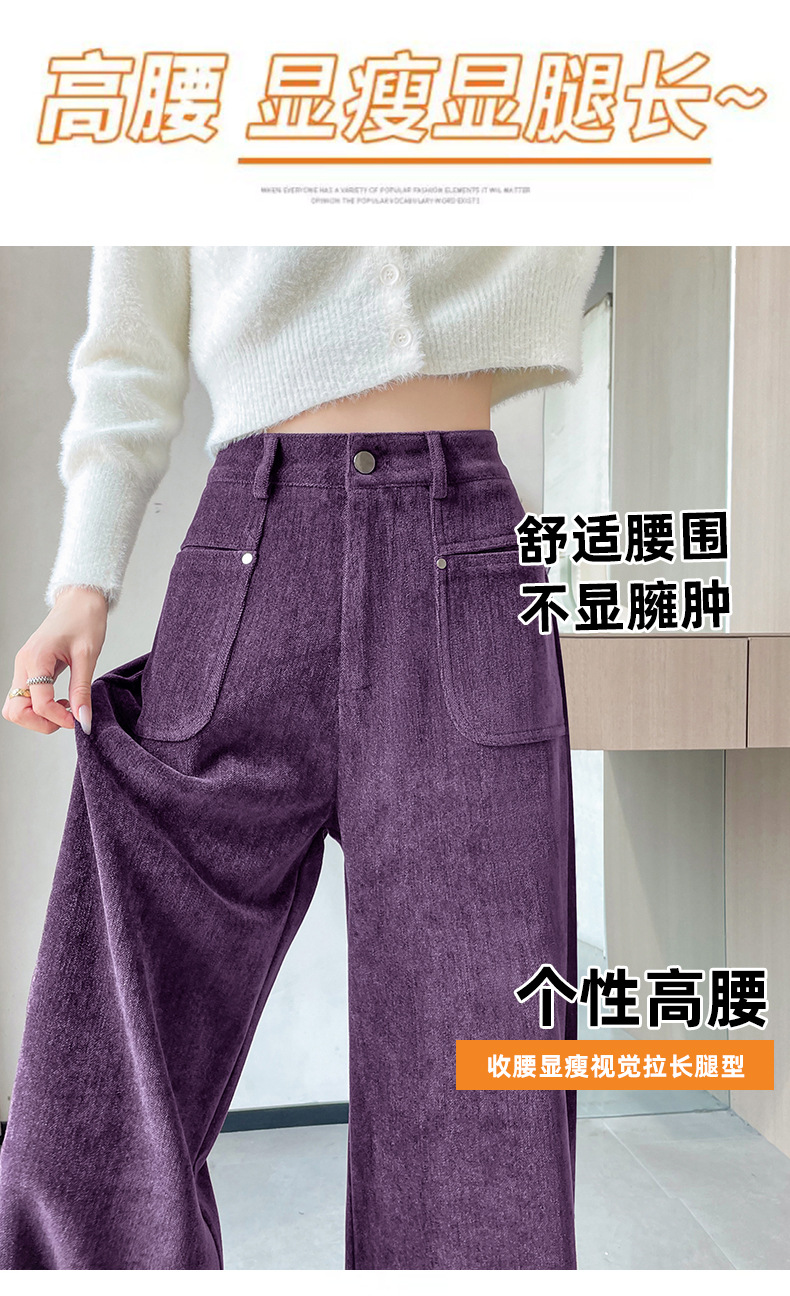리얼 샷 퍼플 하이 허리 셔닐 와이드 레그 팬츠 여성용 가을과 겨울 새로운 느슨한 수직 슬리밍 스트레이트 세트 바지스토어 가기