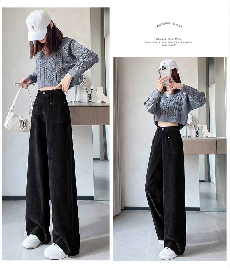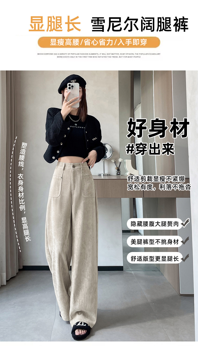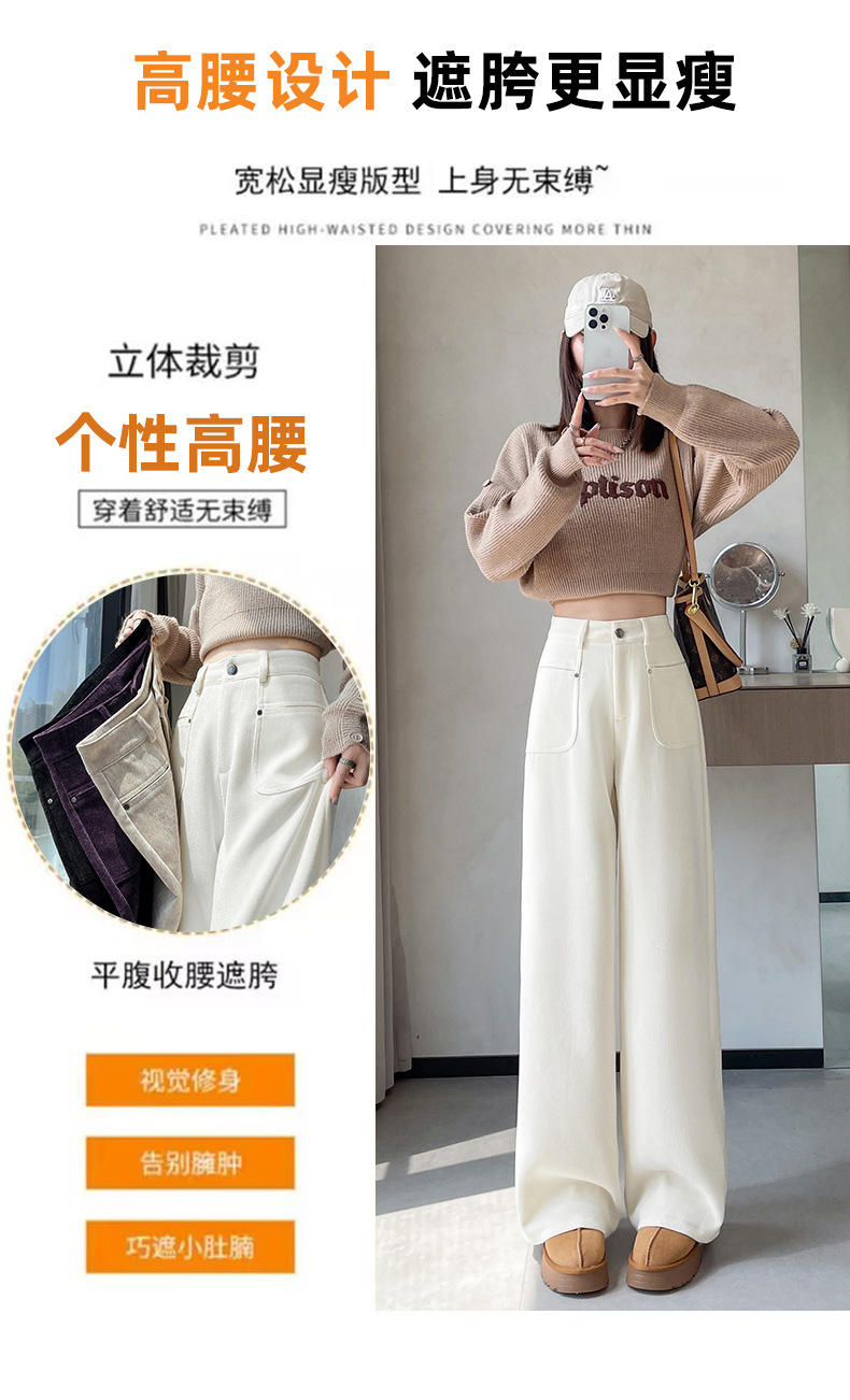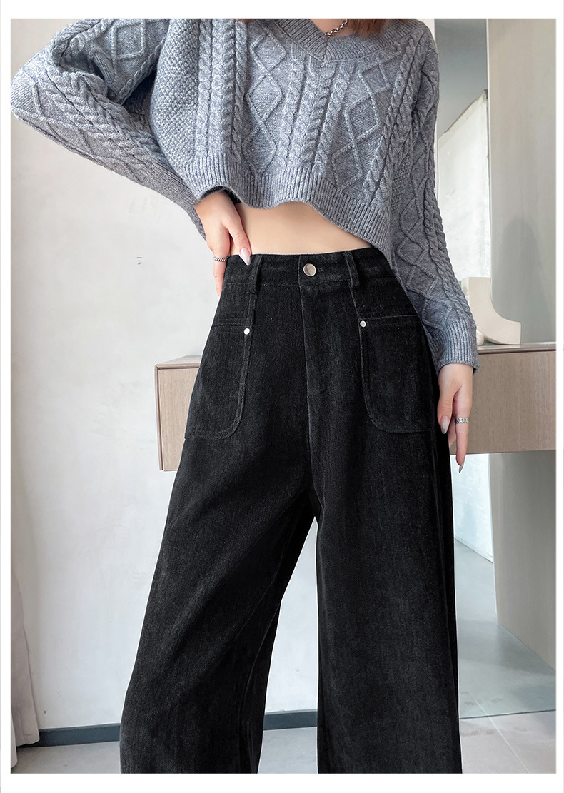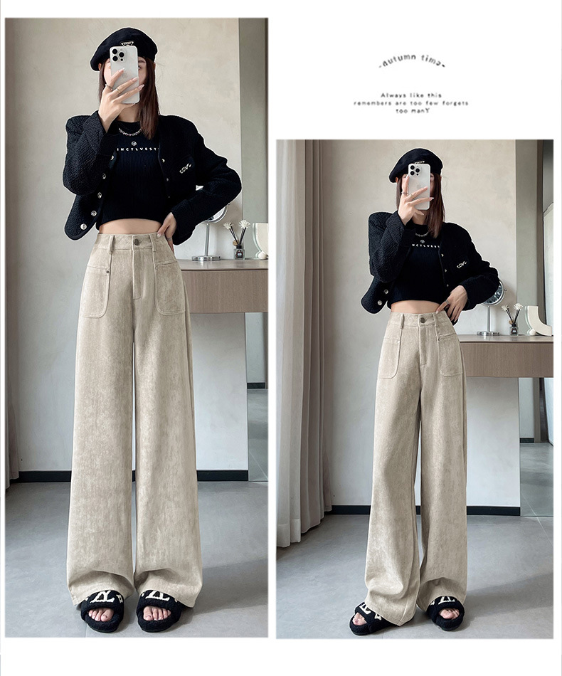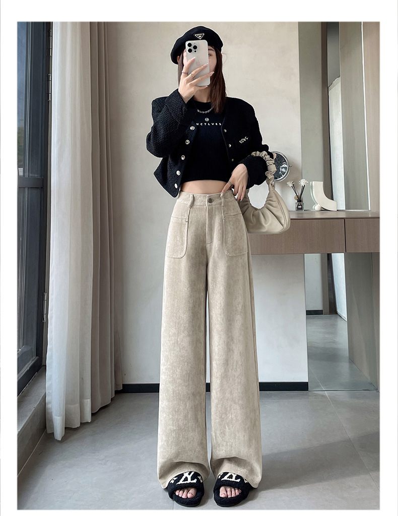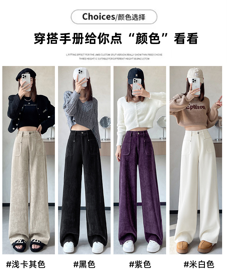 리얼 샷 퍼플 하이 허리 셔닐 와이드 레그 팬츠 여성용 가을과 겨울 새로운 느슨한 수직 슬리밍 스트레이트 세트 바지스토어 가기