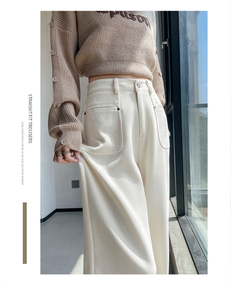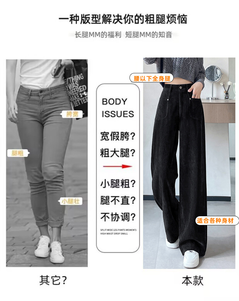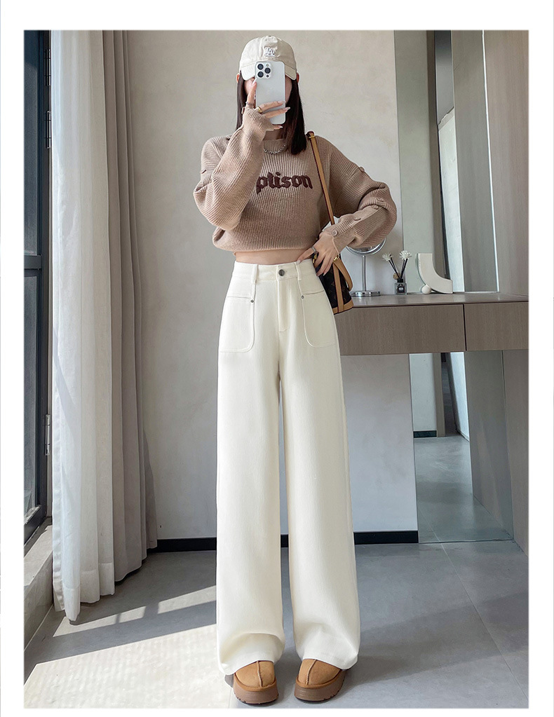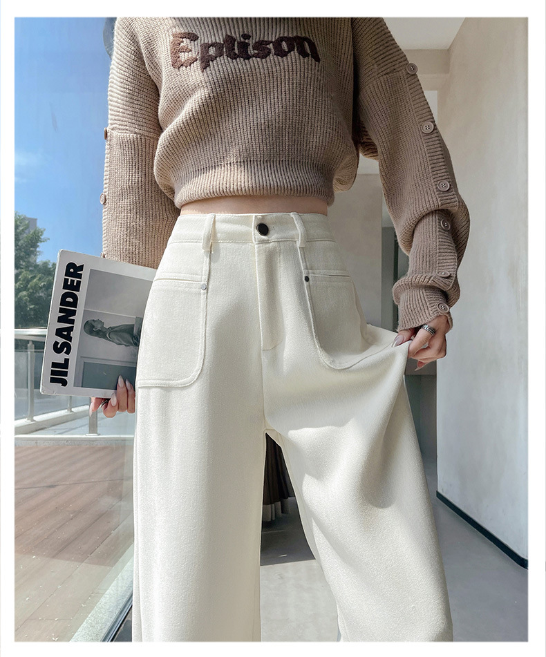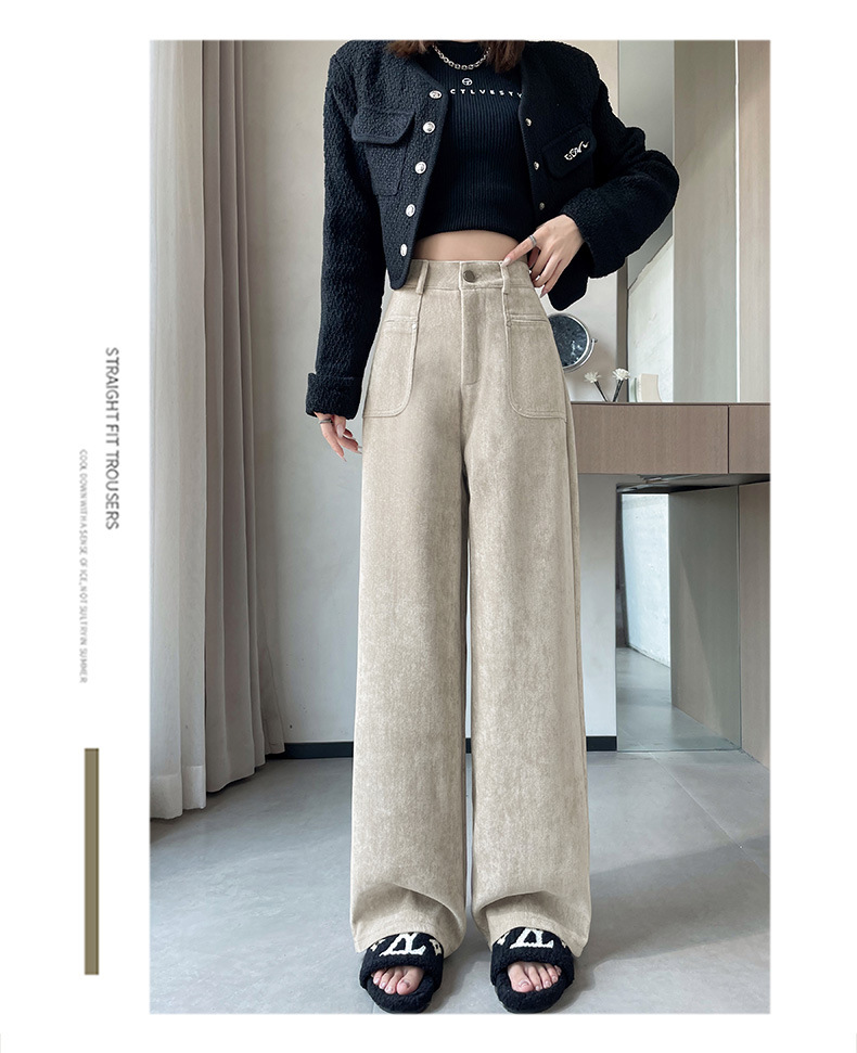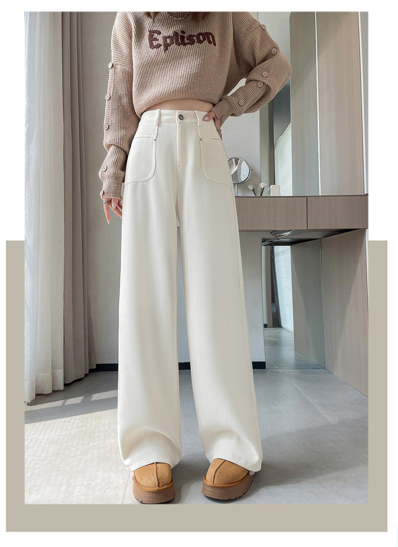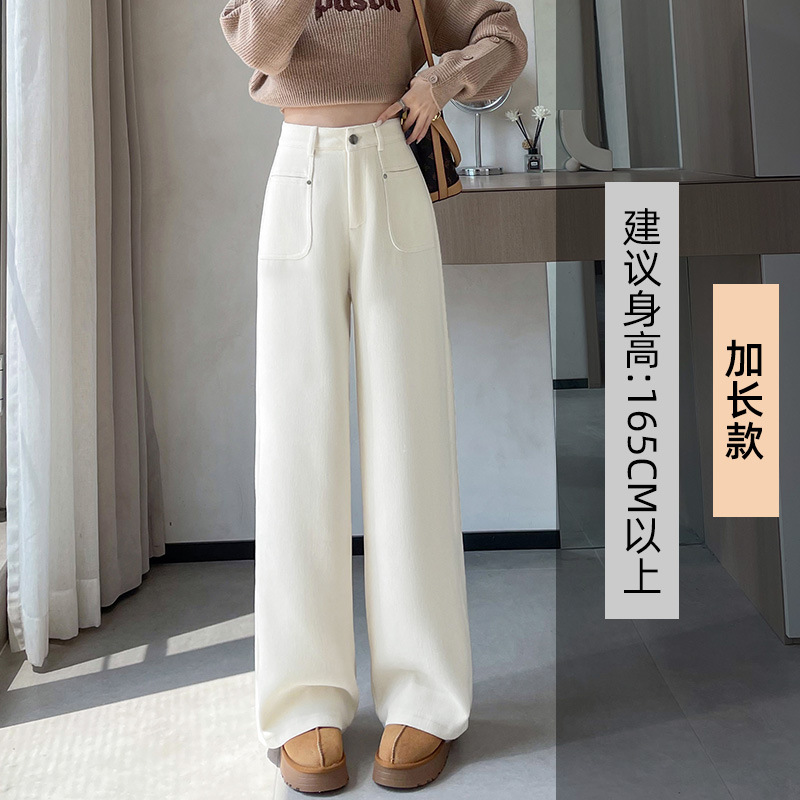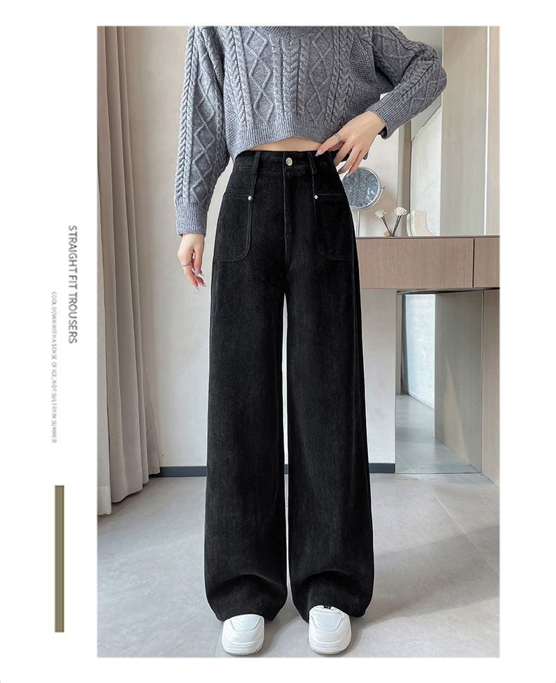 리얼 샷 퍼플 하이 허리 셔닐 와이드 레그 팬츠 여성용 가을과 겨울 새로운 느슨한 수직 슬리밍 스트레이트 세트 바지스토어 가기