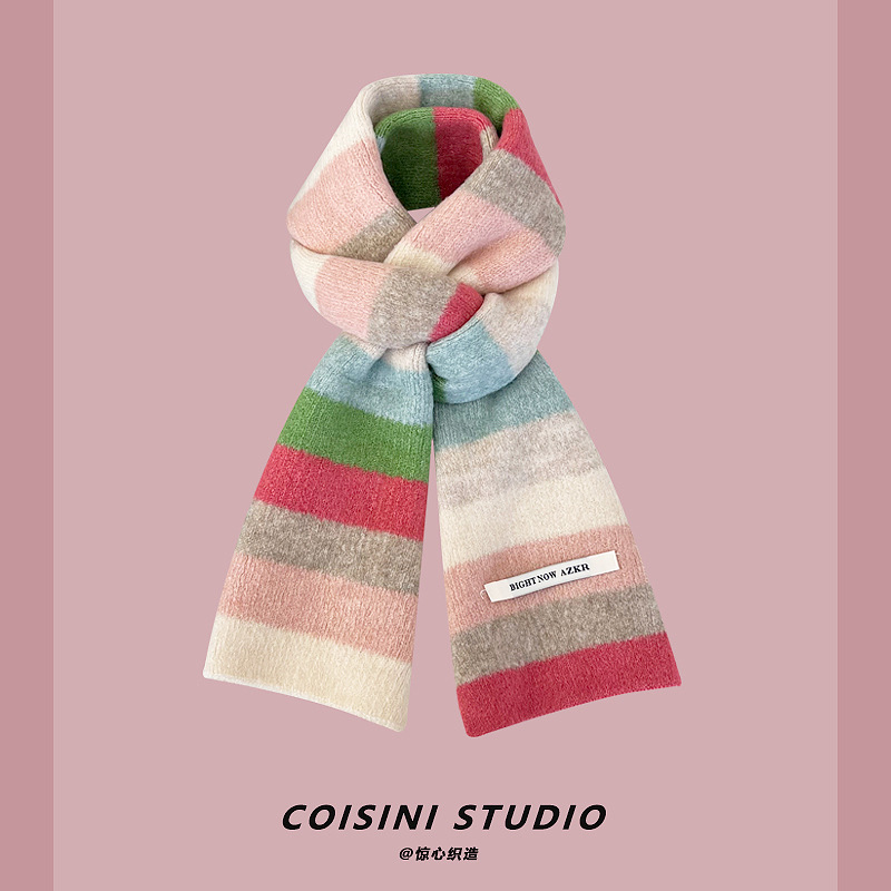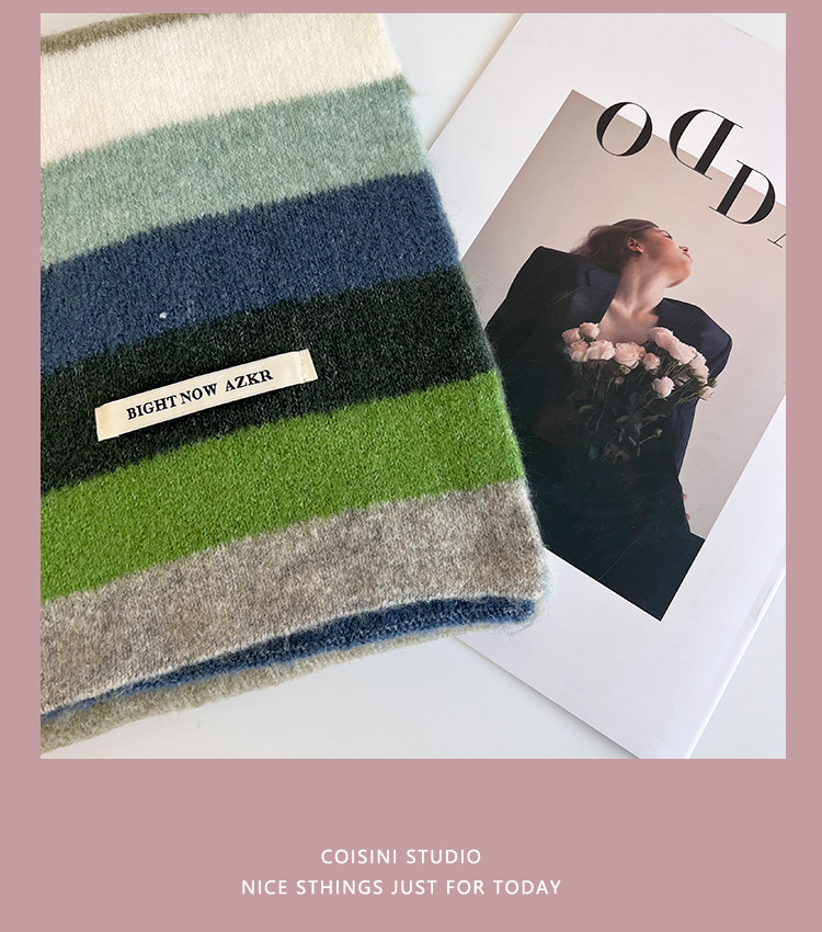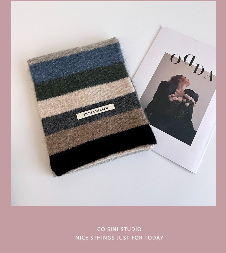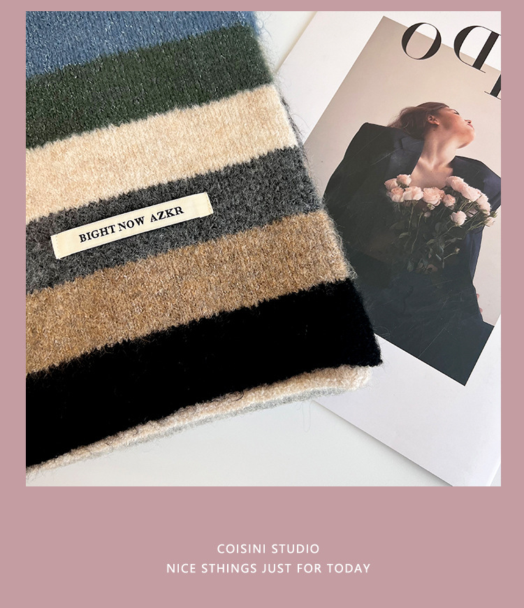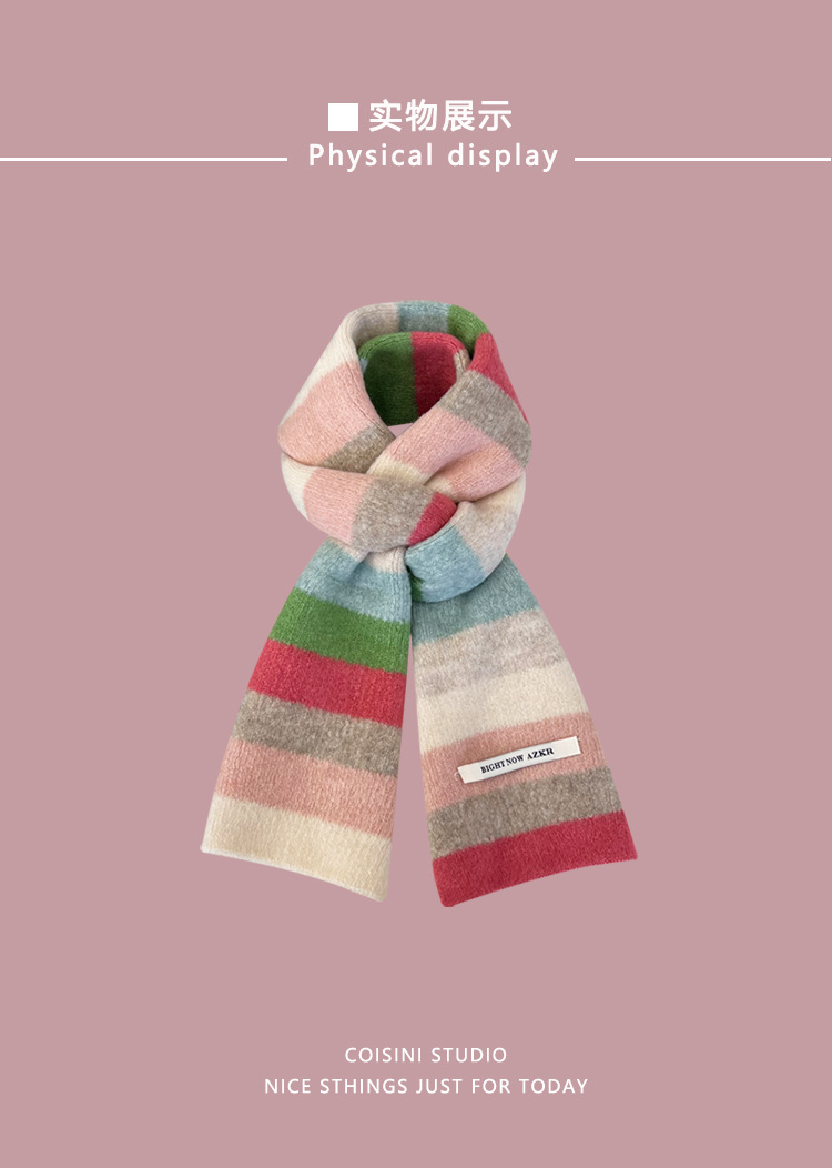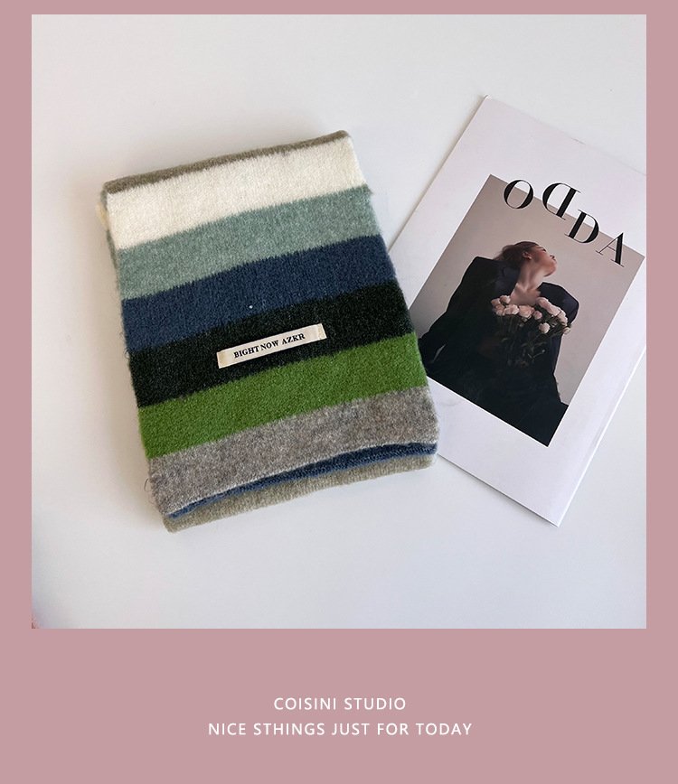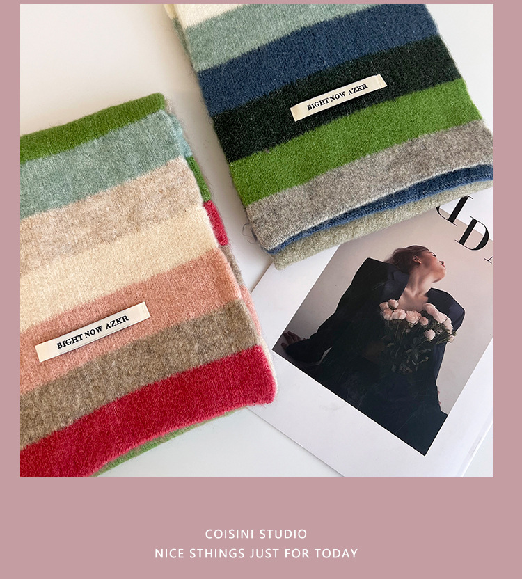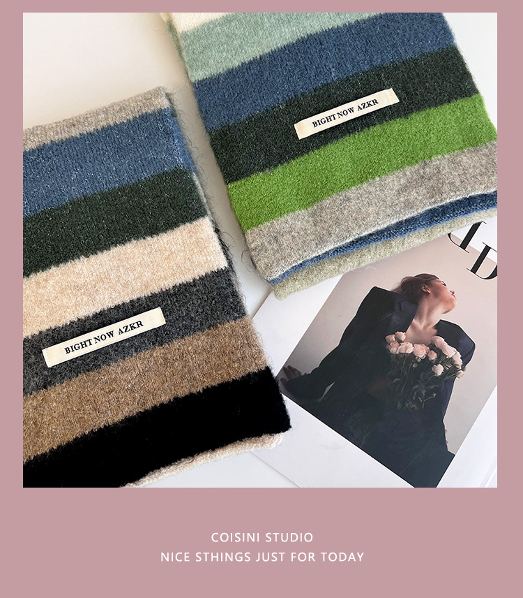 부드러운 ~ 한국어 버전의 양모 대비 줄무늬 스카프 여성의 가을과 겨울 따뜻한 조커 학생 커플 니트 작은 스카프스토어 가기
