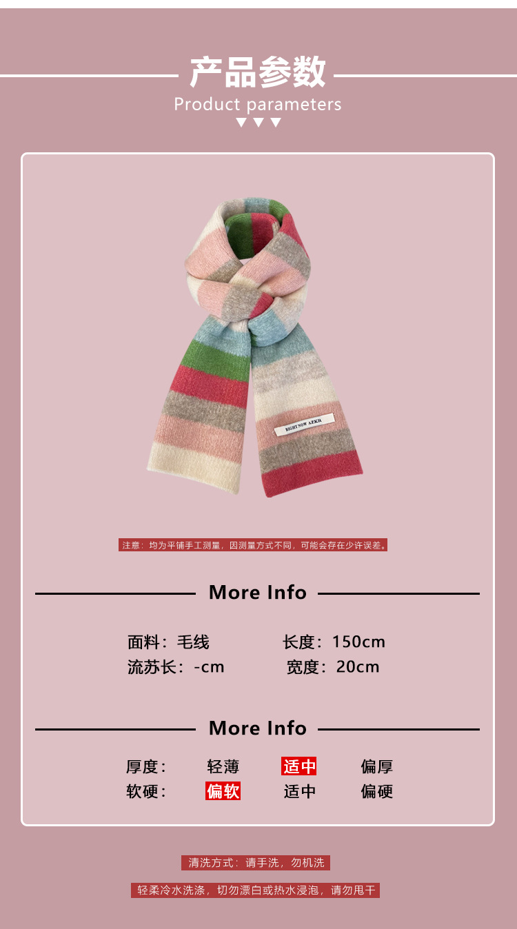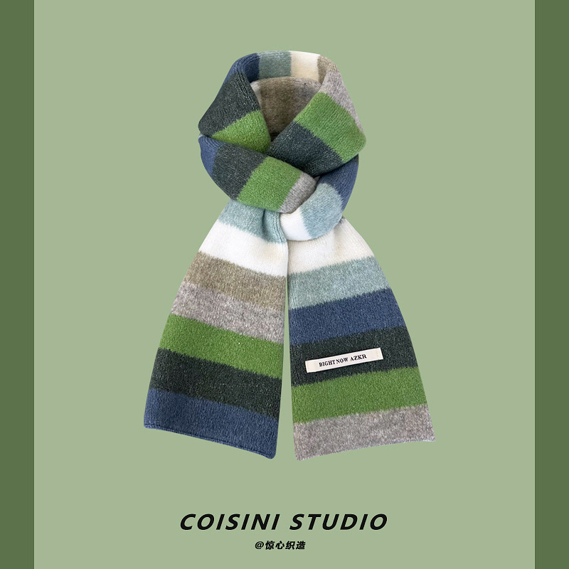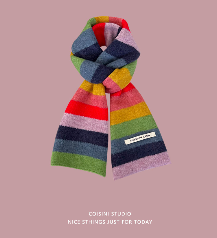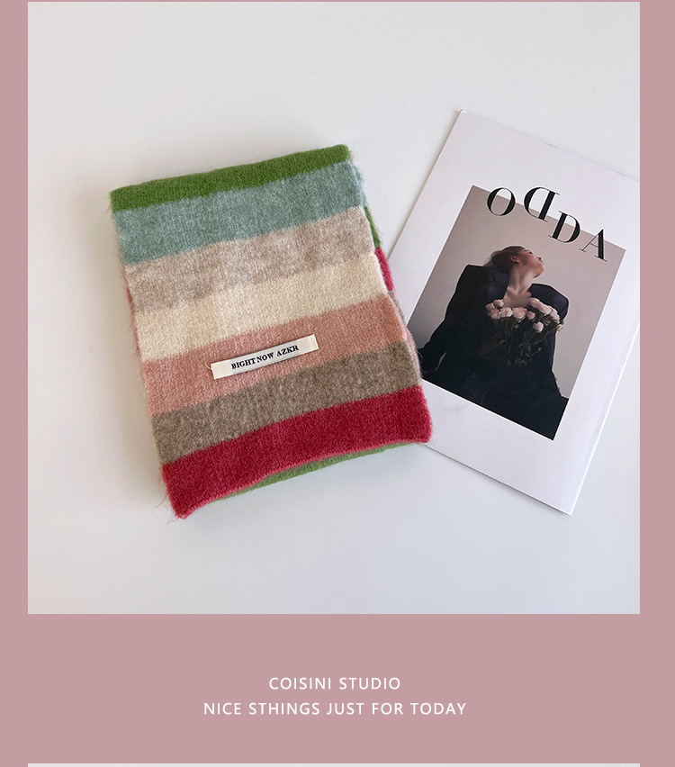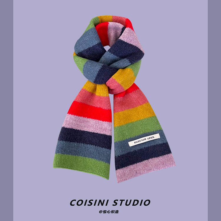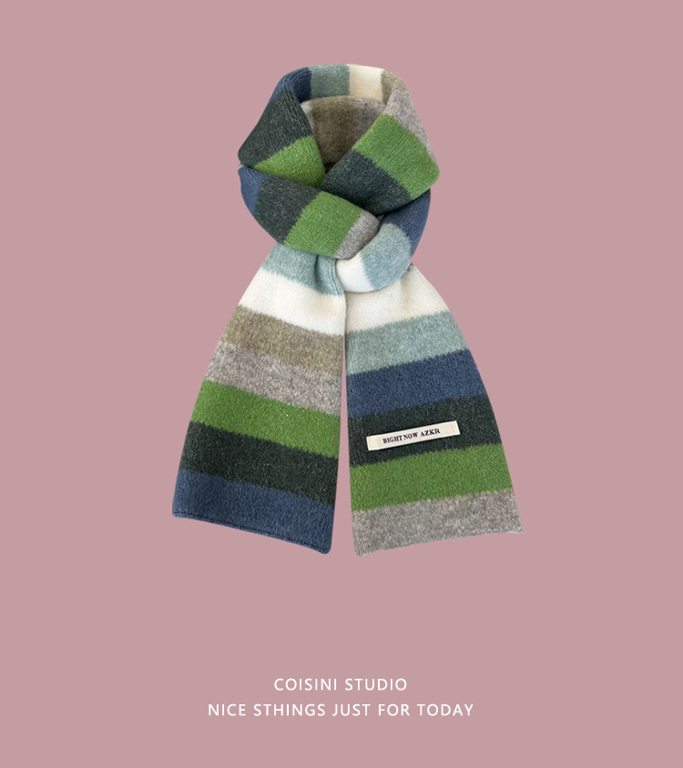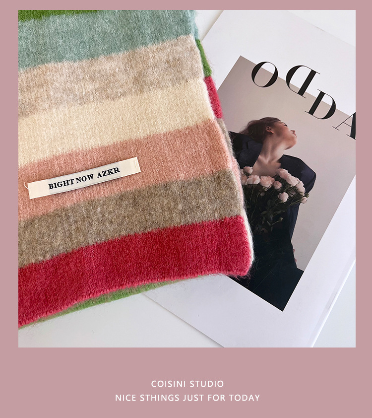 부드러운 ~ 한국어 버전의 양모 대비 줄무늬 스카프 여성의 가을과 겨울 따뜻한 조커 학생 커플 니트 작은 스카프스토어 가기