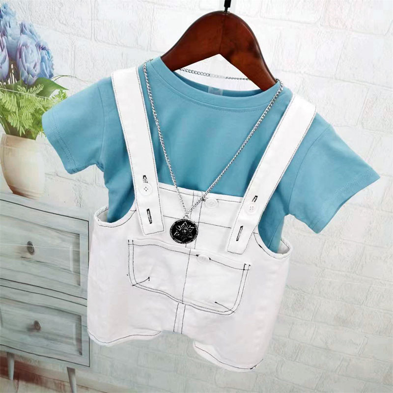 남학생과 여학생 여름 세트 2024 새로운 아기 서양식 서스펜더 어린이 여름 잘 생긴 캐주얼 투피스 트렌디스토어 가기