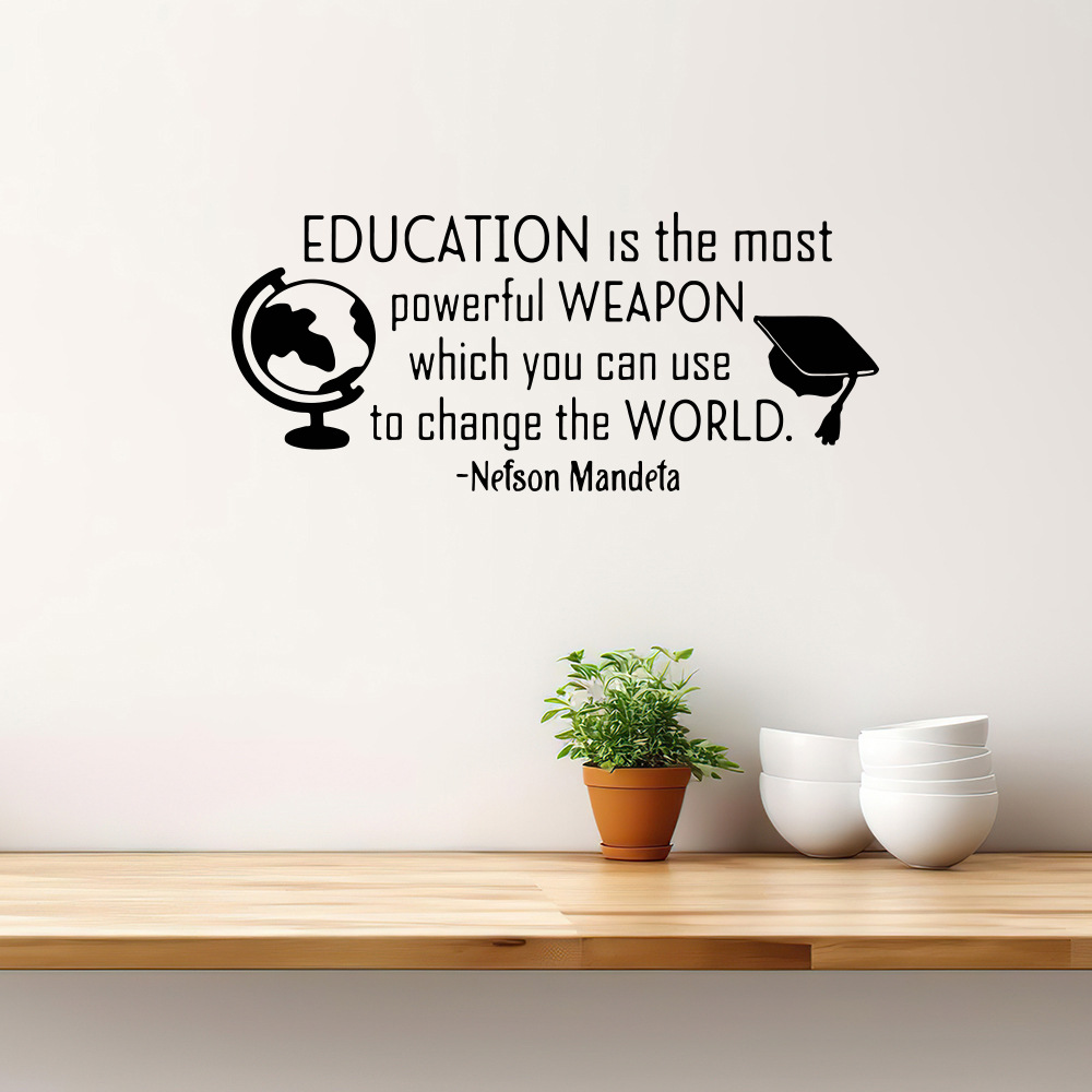 영감을주는 벽 스티커 참조 교육은 가장 강력한 무기 분리 가능한 비닐 벽 스티커 교실 학교 장식입니다