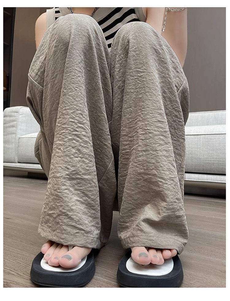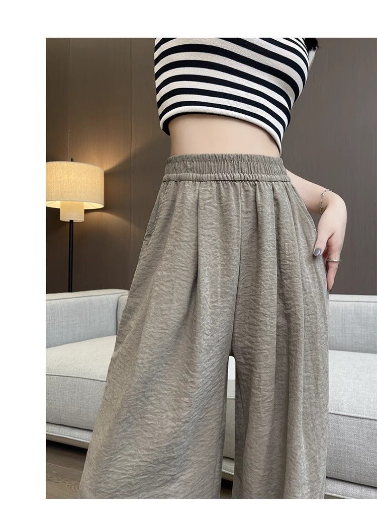 크림 화이트 질감 넓은 다리 바지 여성용 여름 얇은 높은 허리 슬리밍 루즈 디핑 바지 스트레이트 캐주얼 바지스토어 가기