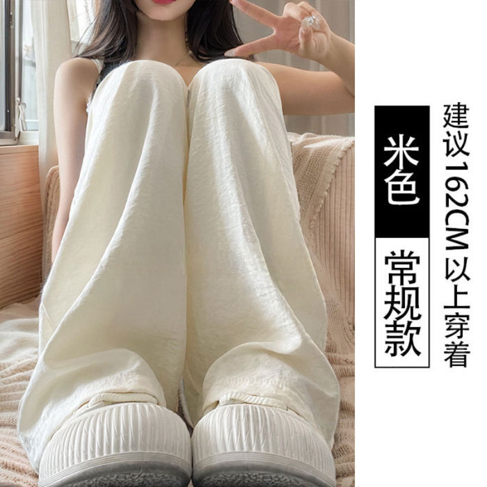 크림 화이트 질감 넓은 다리 바지 여성용 여름 얇은 높은 허리 슬리밍 루즈 디핑 바지 스트레이트 캐주얼 바지