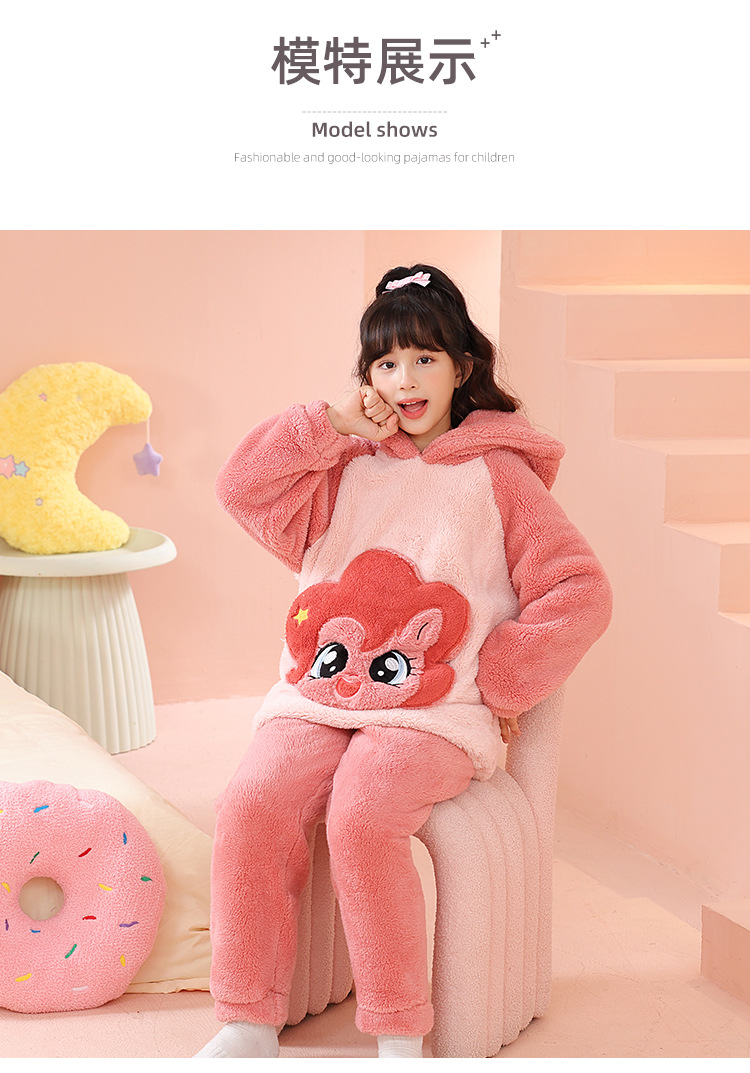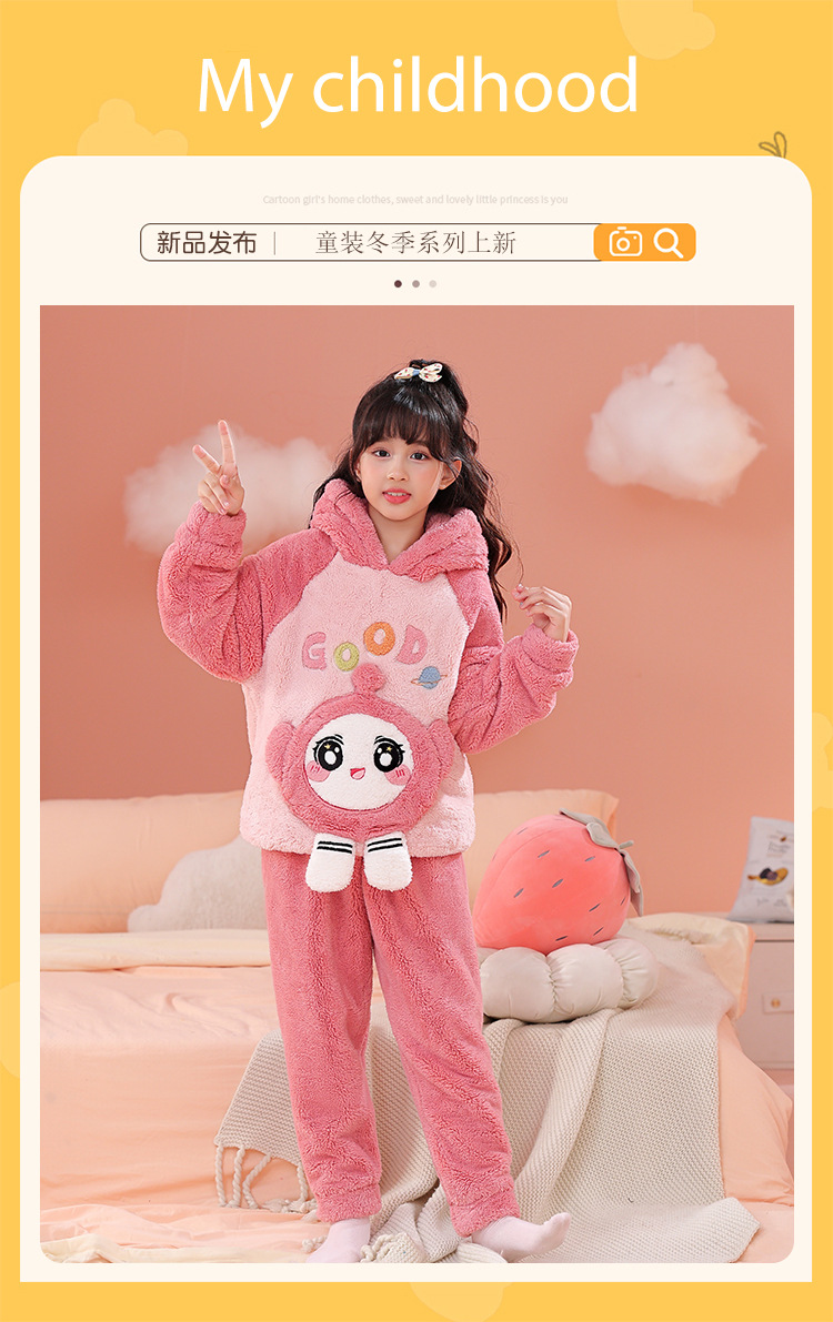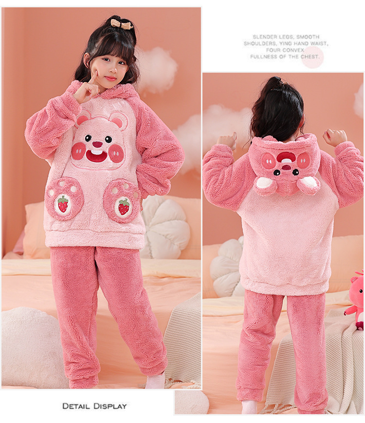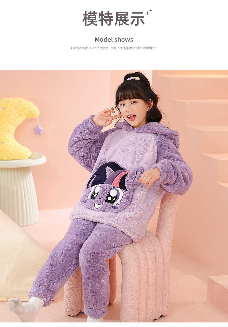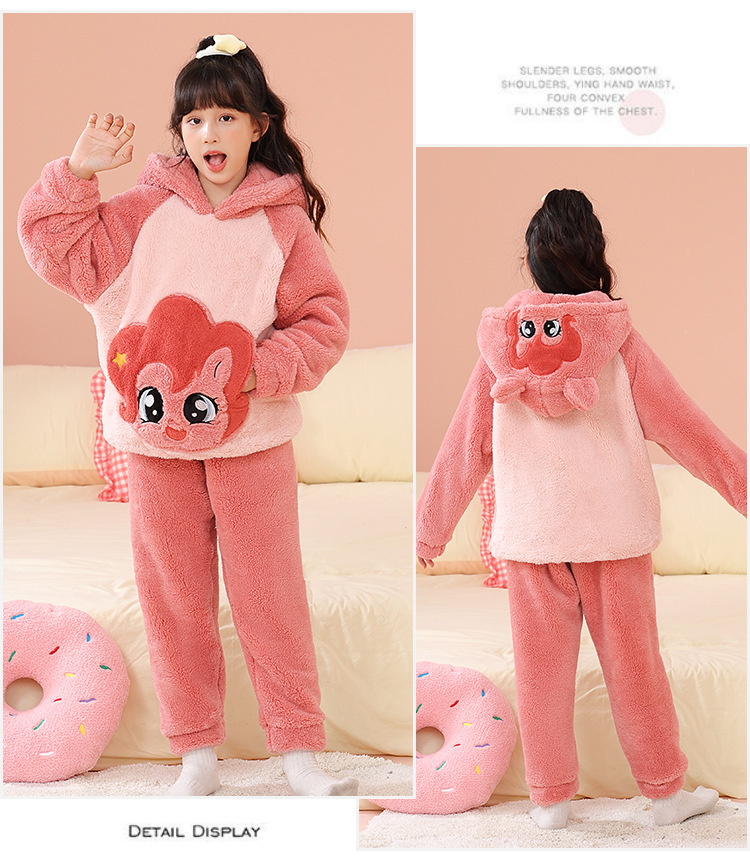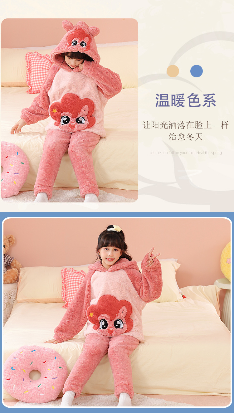 어린이 잠옷 겨울 소녀 봉제 기모 두꺼운 후드 큰 소년의 귀여운 만화 따뜻한 집 옷스토어 가기