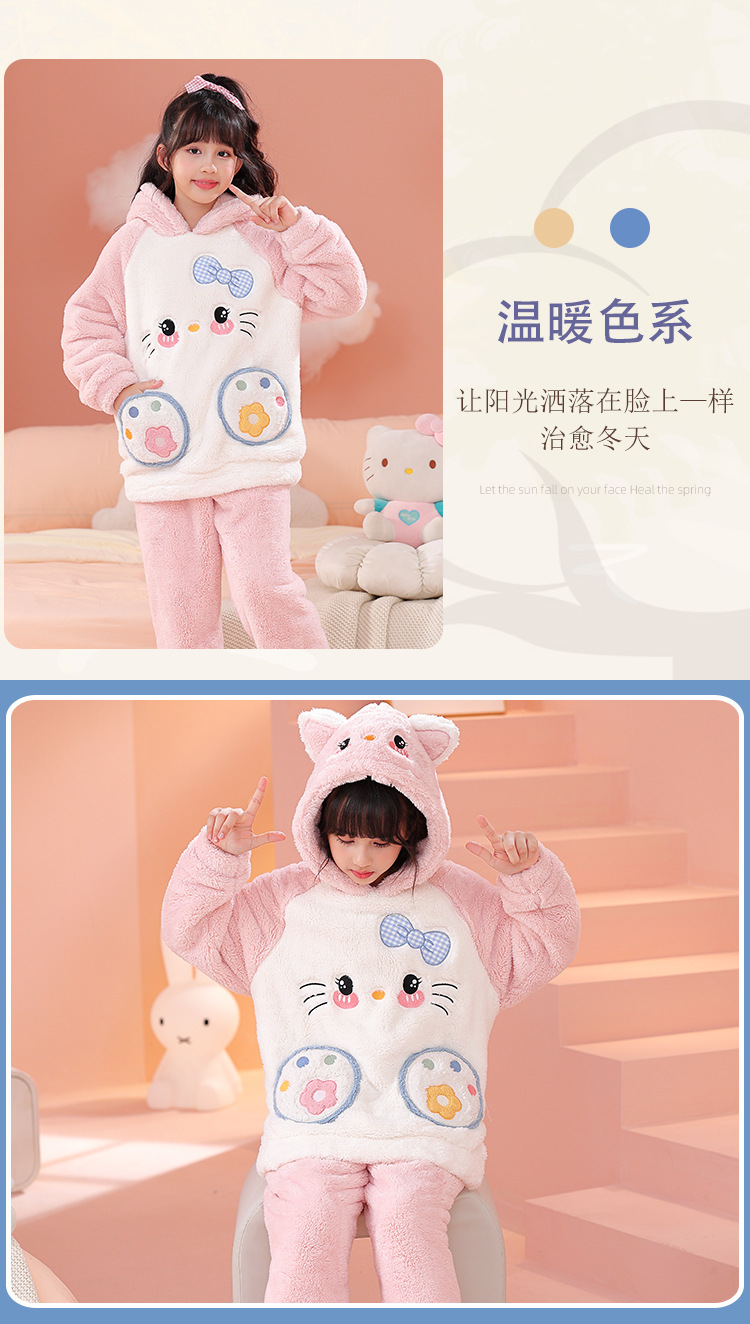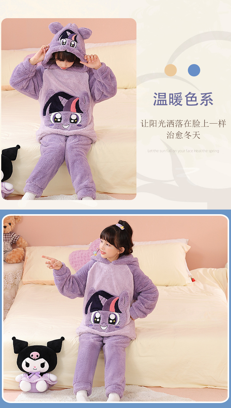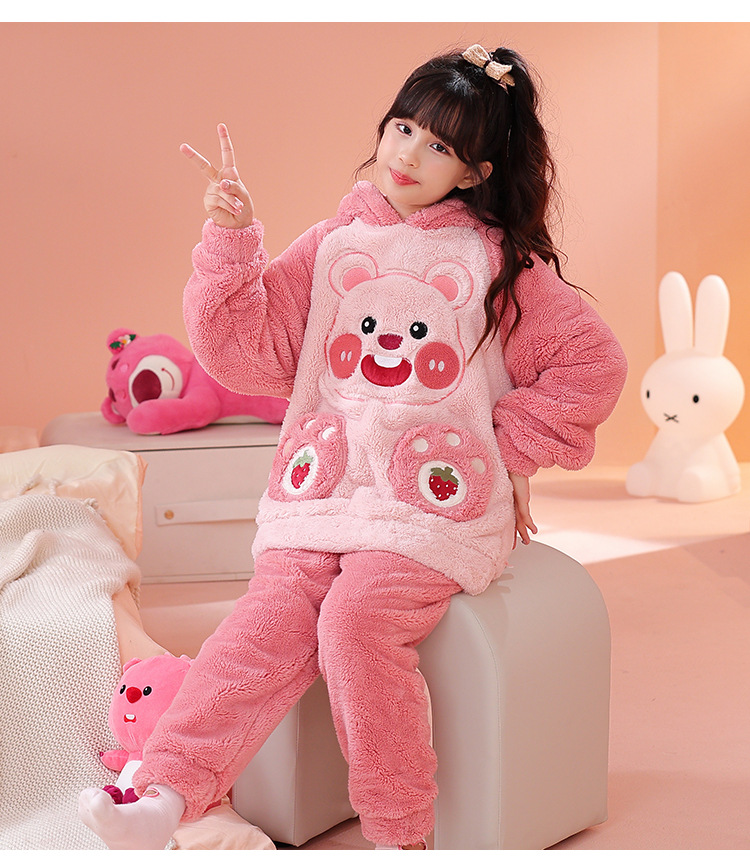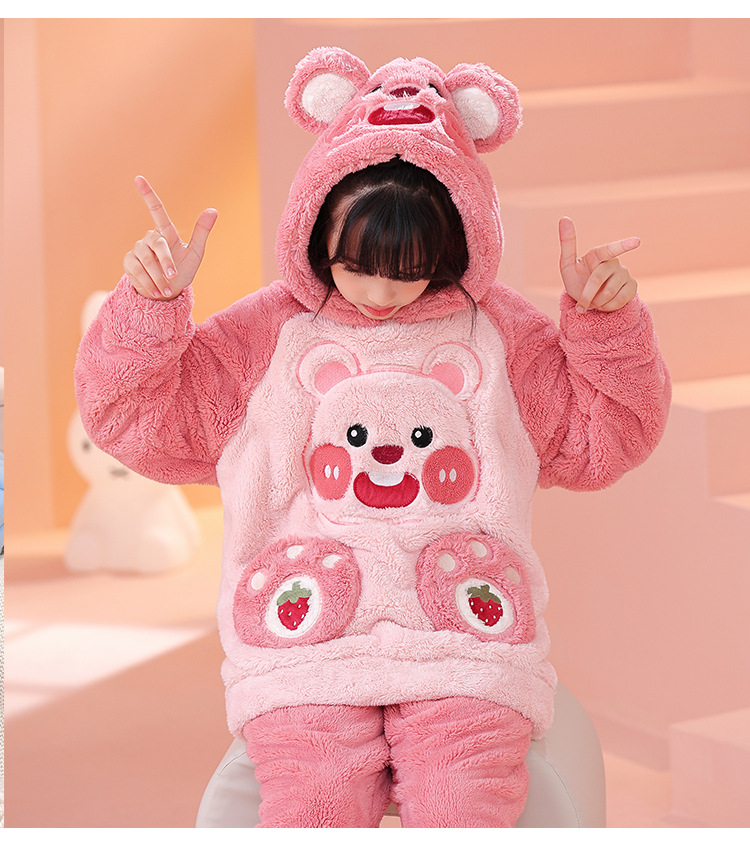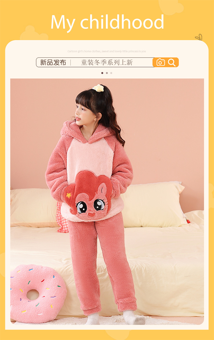 어린이 잠옷 겨울 소녀 봉제 기모 두꺼운 후드 큰 소년의 귀여운 만화 따뜻한 집 옷스토어 가기