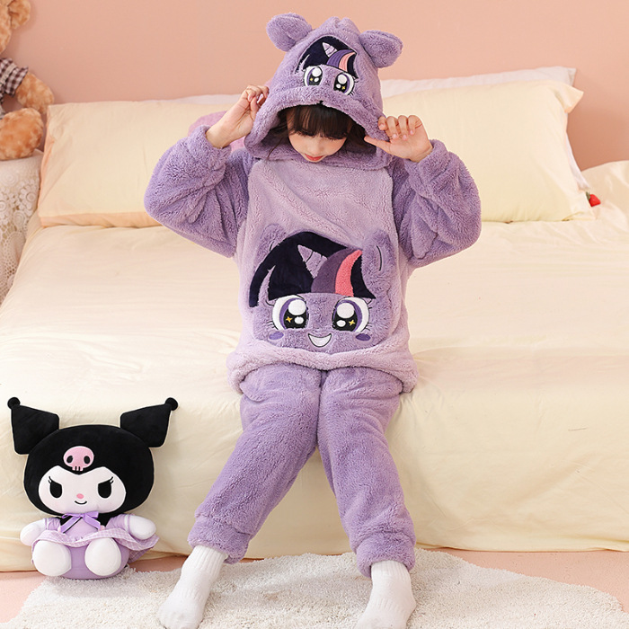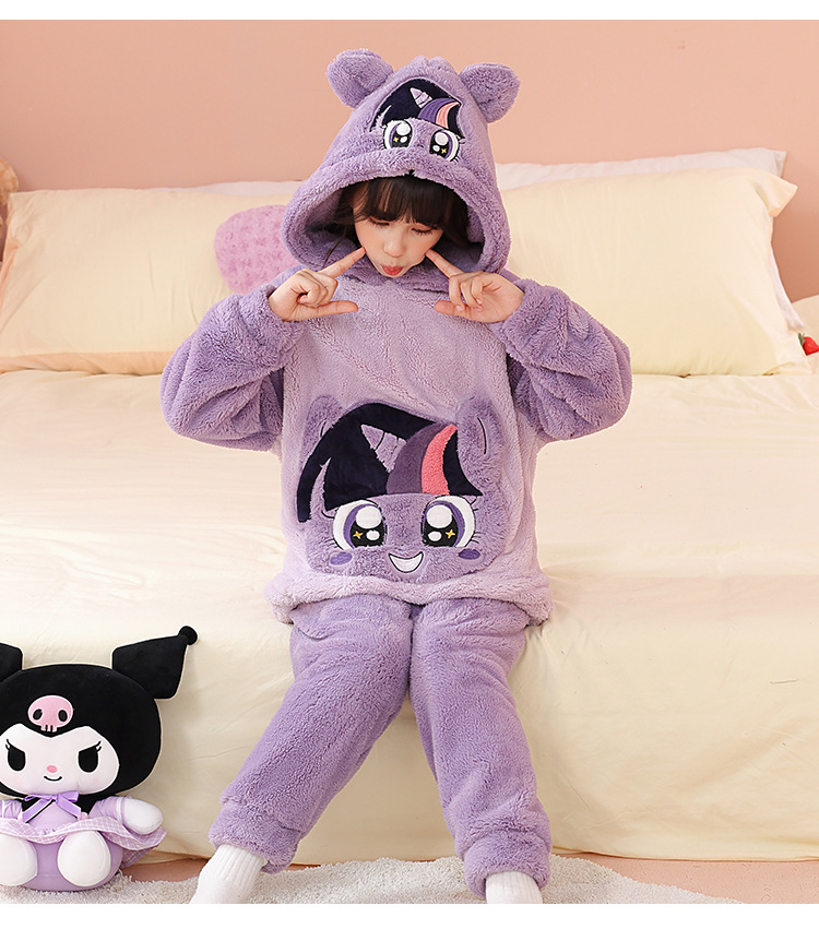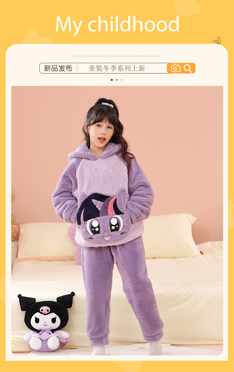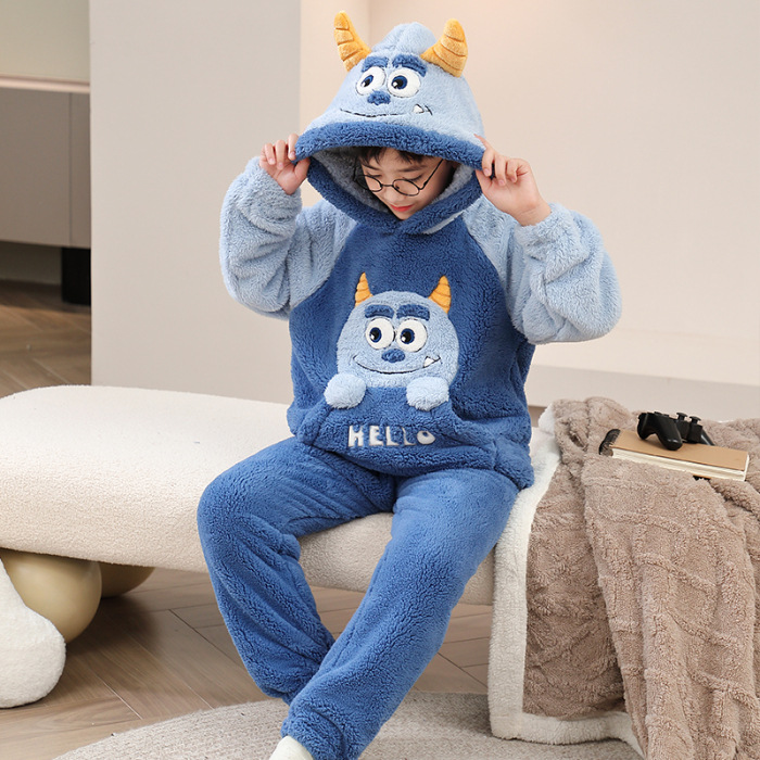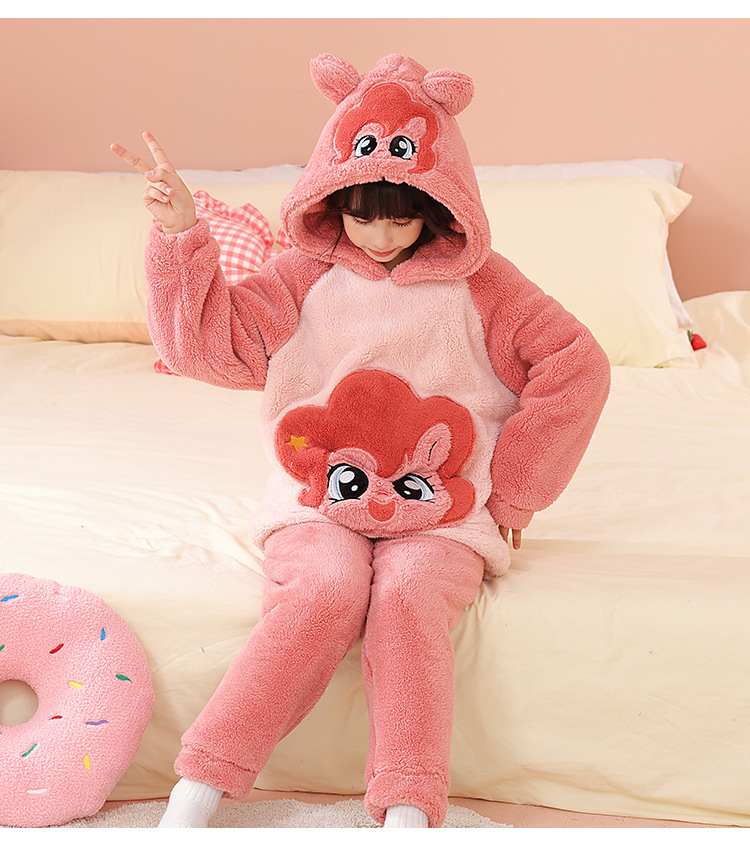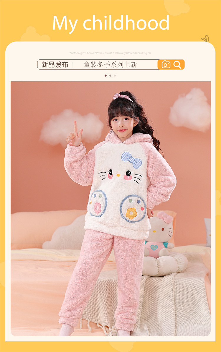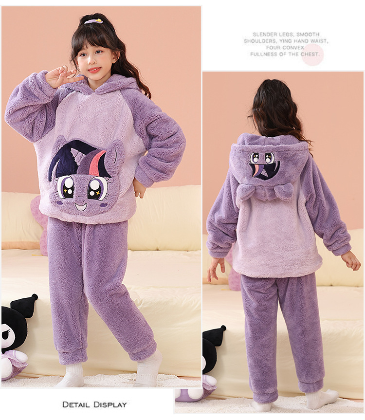 어린이 잠옷 겨울 소녀 봉제 기모 두꺼운 후드 큰 소년의 귀여운 만화 따뜻한 집 옷스토어 가기