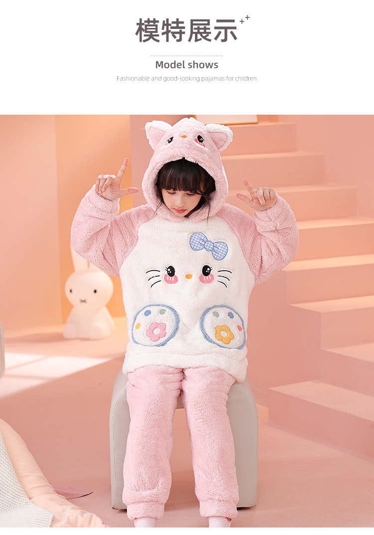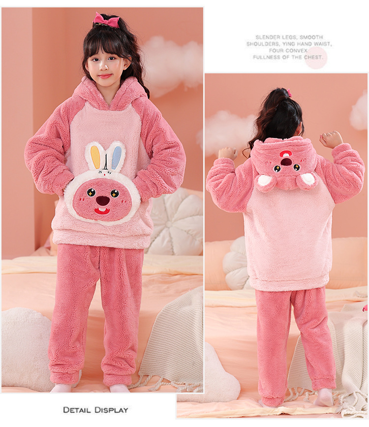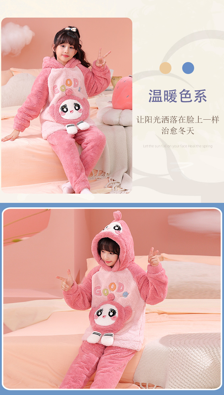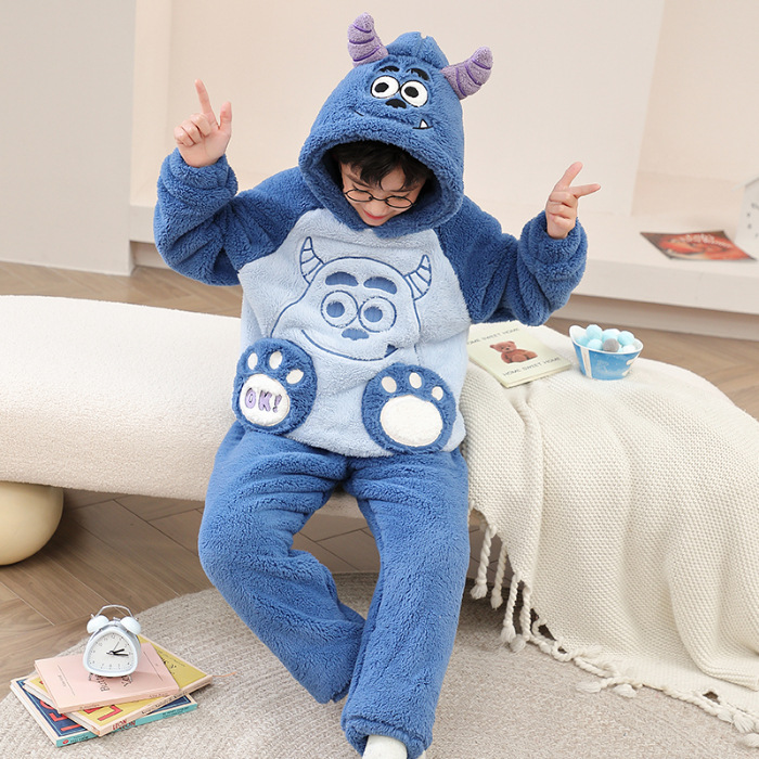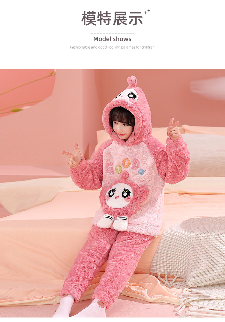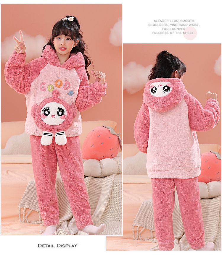 어린이 잠옷 겨울 소녀 봉제 기모 두꺼운 후드 큰 소년의 귀여운 만화 따뜻한 집 옷