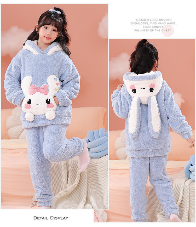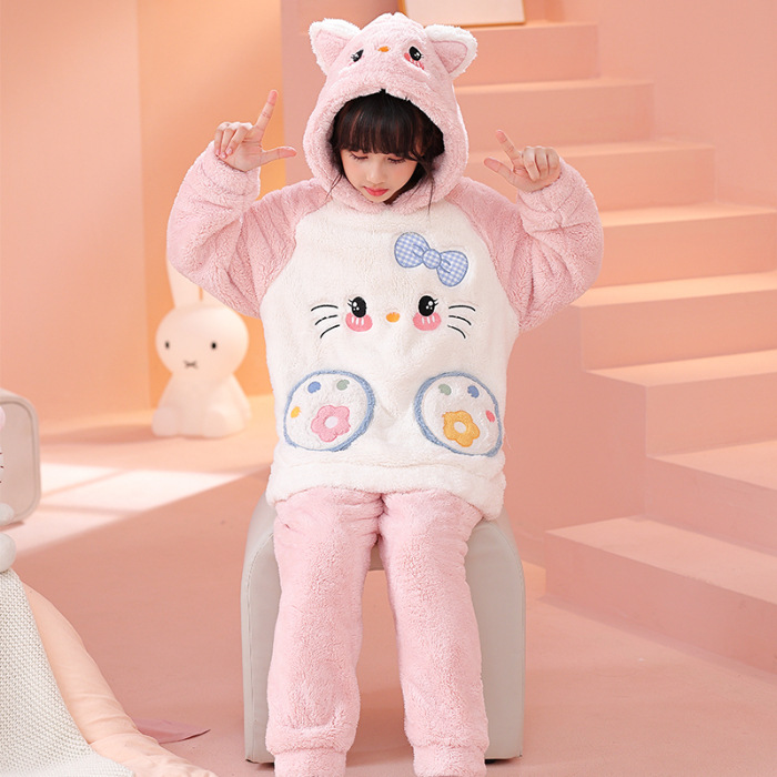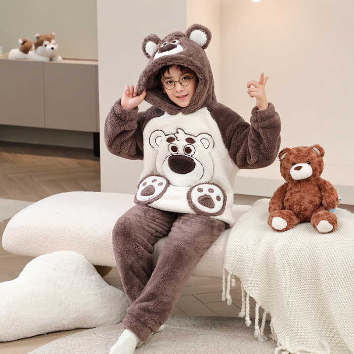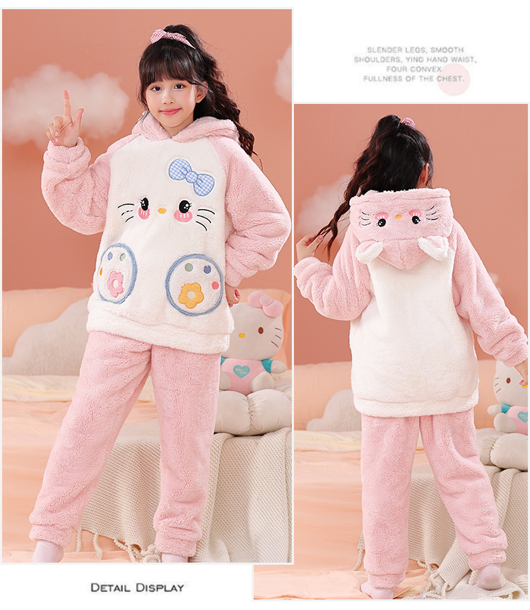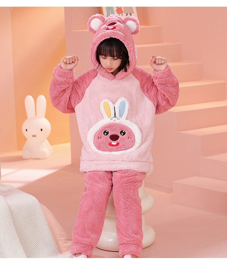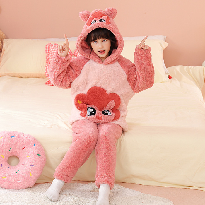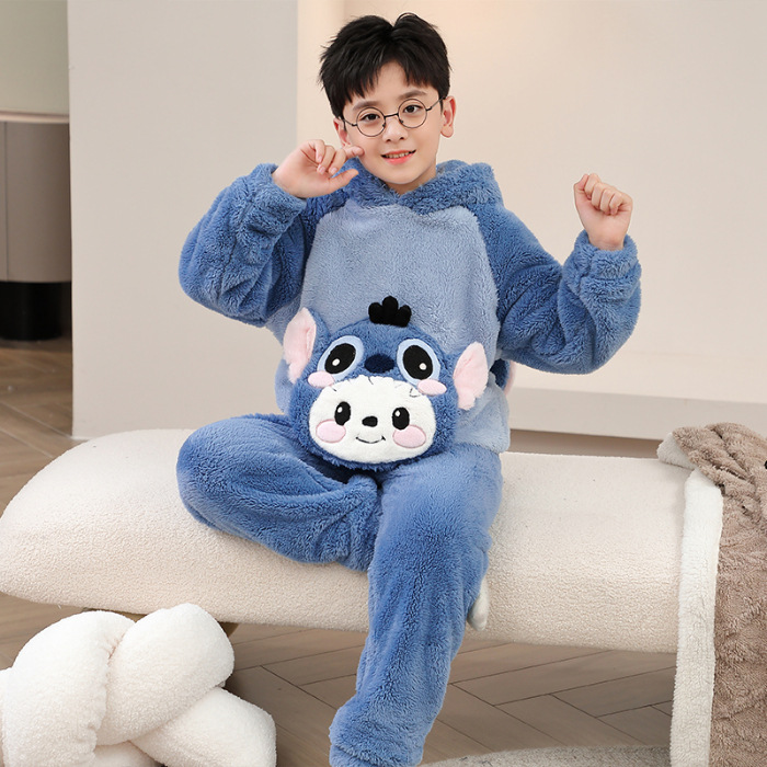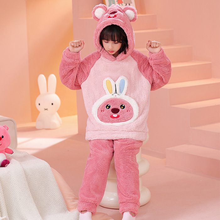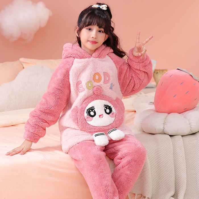 어린이 잠옷 겨울 소녀 봉제 기모 두꺼운 후드 큰 소년의 귀여운 만화 따뜻한 집 옷