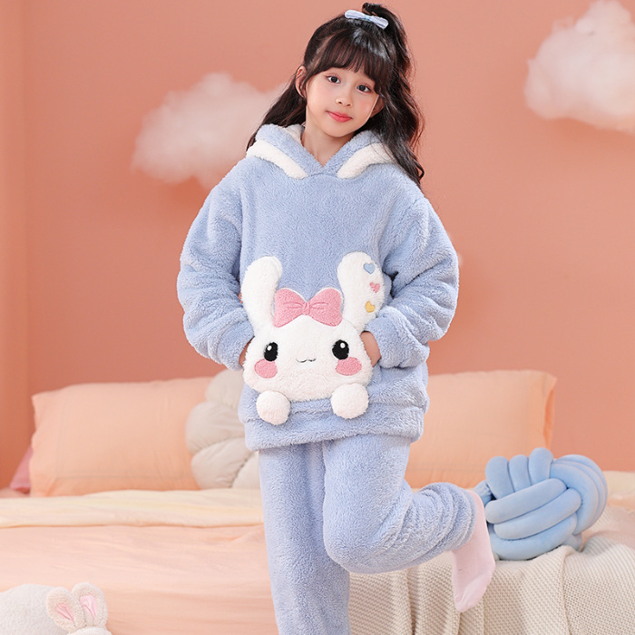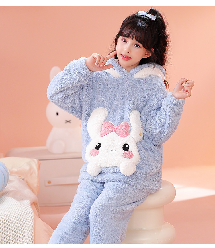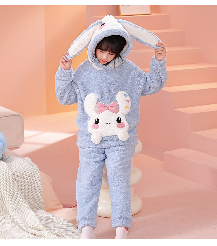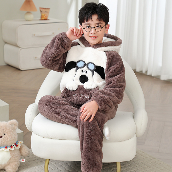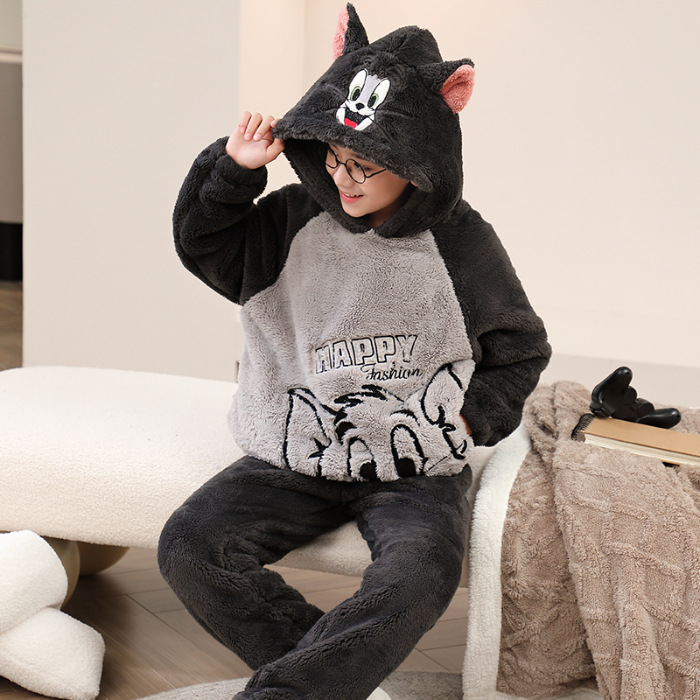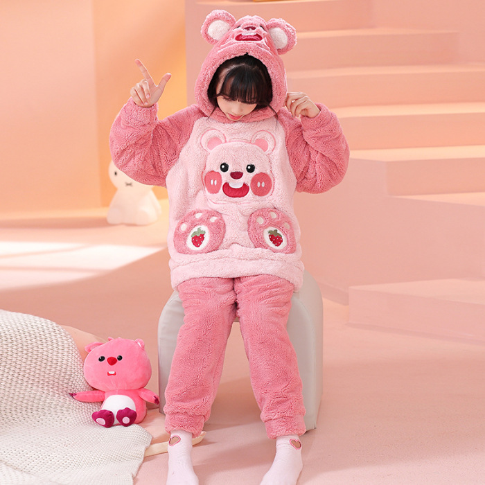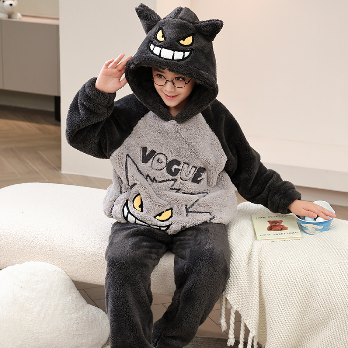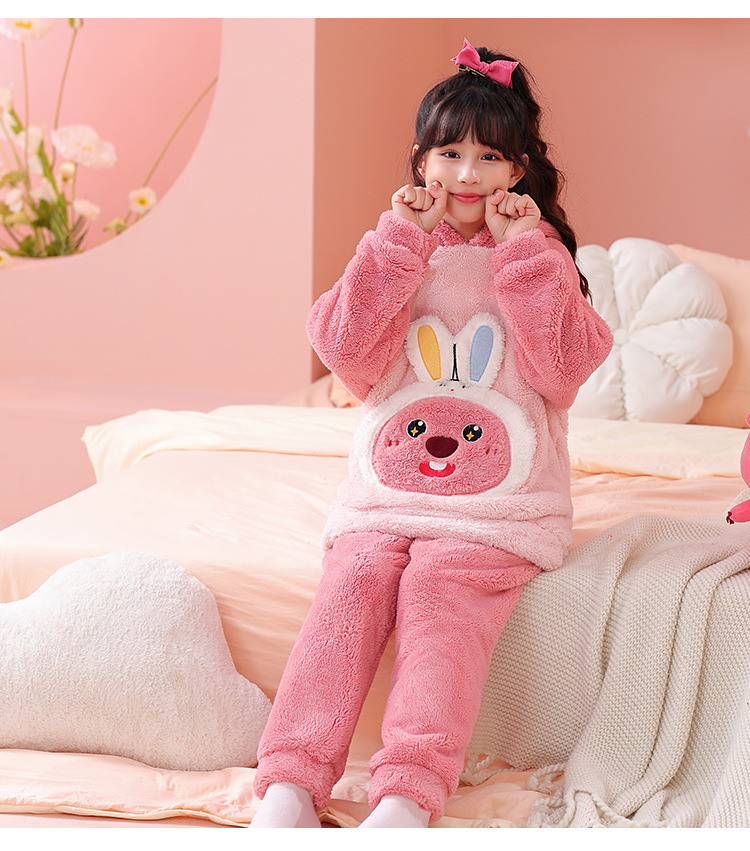 어린이 잠옷 겨울 소녀 봉제 기모 두꺼운 후드 큰 소년의 귀여운 만화 따뜻한 집 옷