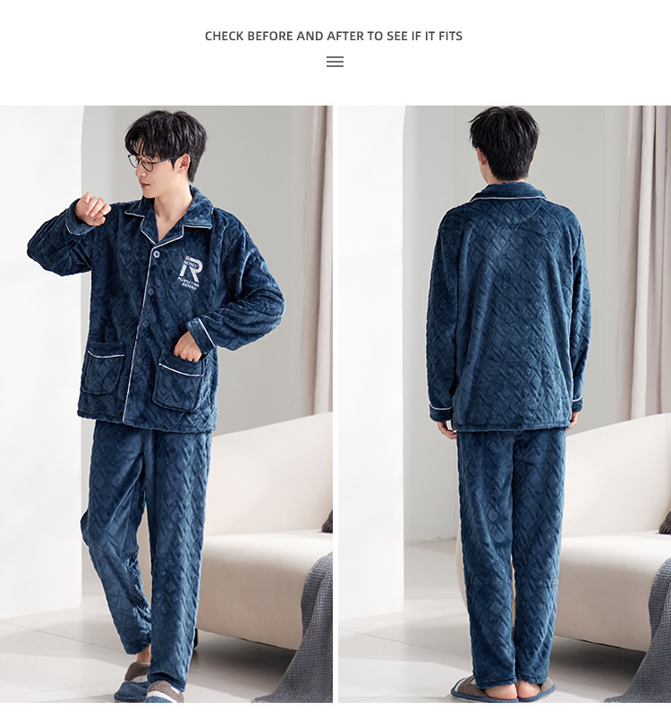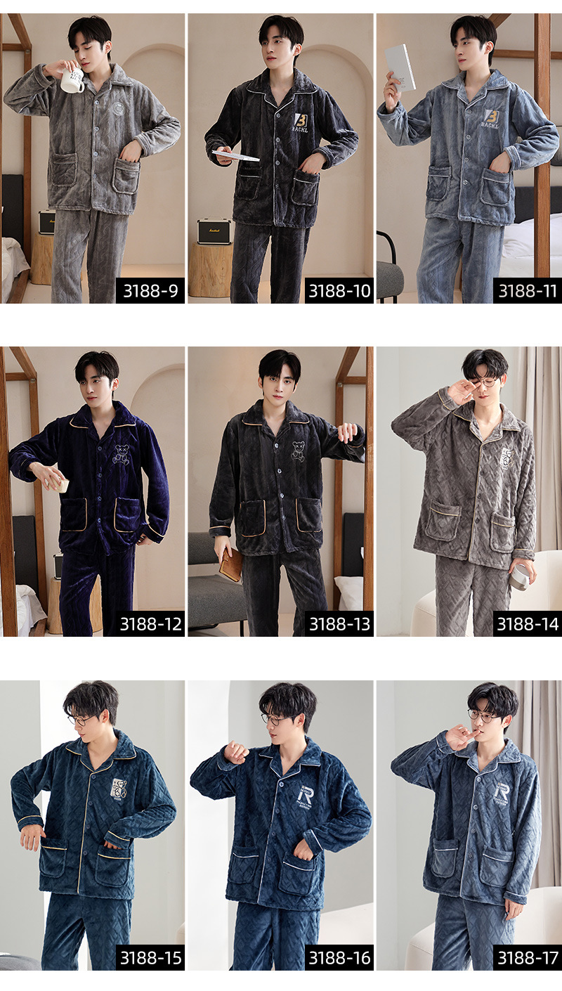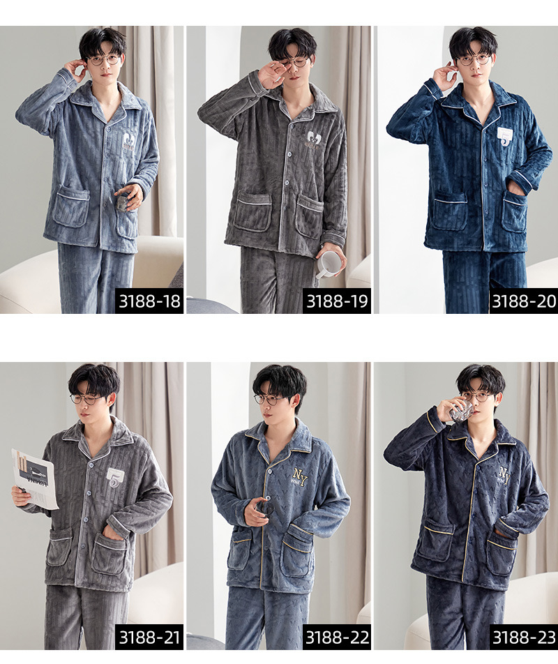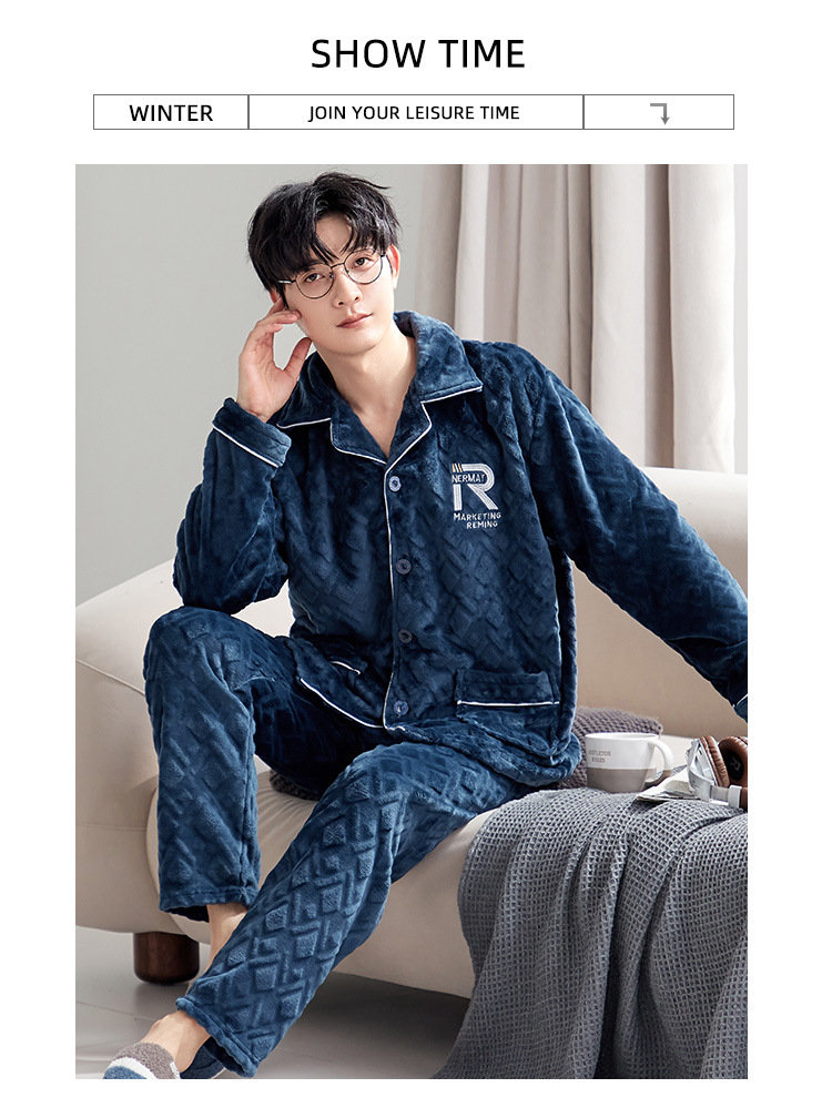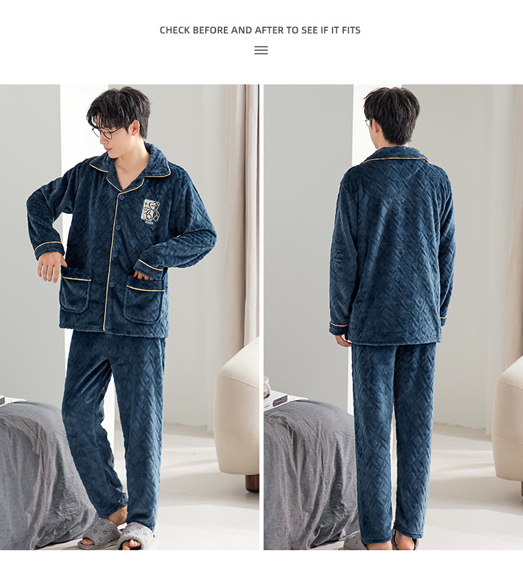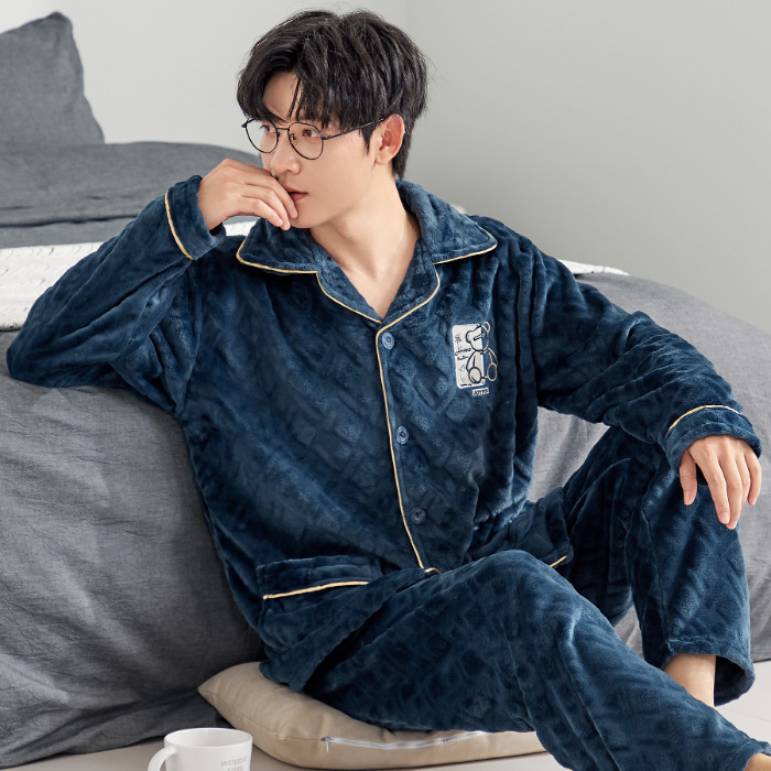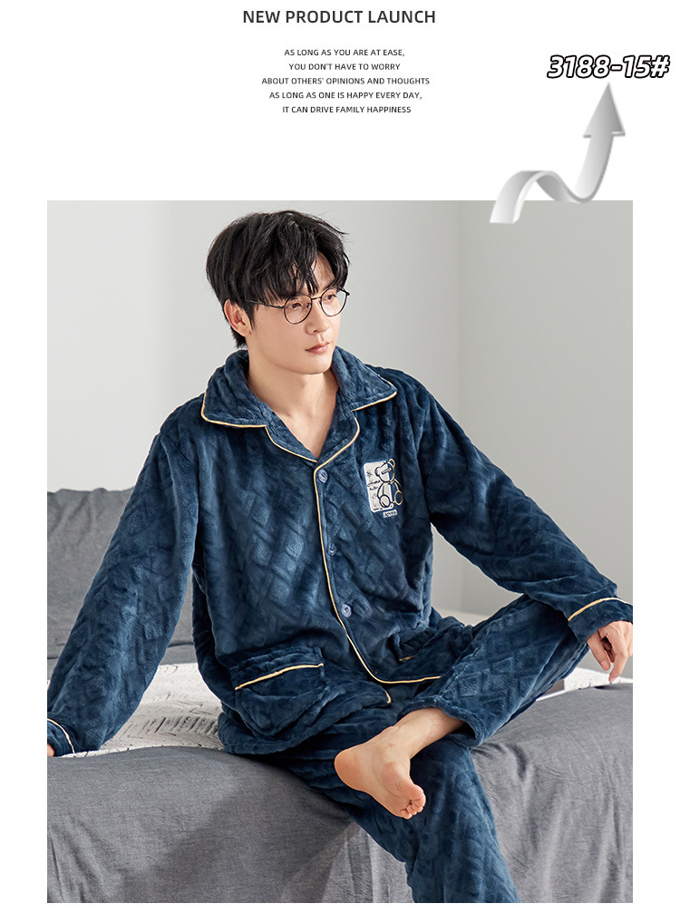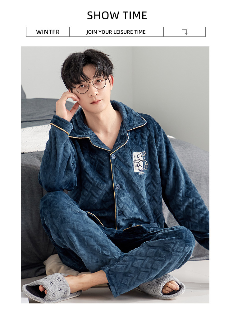 잠옷 남자의 가을과 겨울 카디건 플란넬 자카드 두꺼운 기모 따뜻한 산호 양털 만화 홈 옷 세트스토어 가기