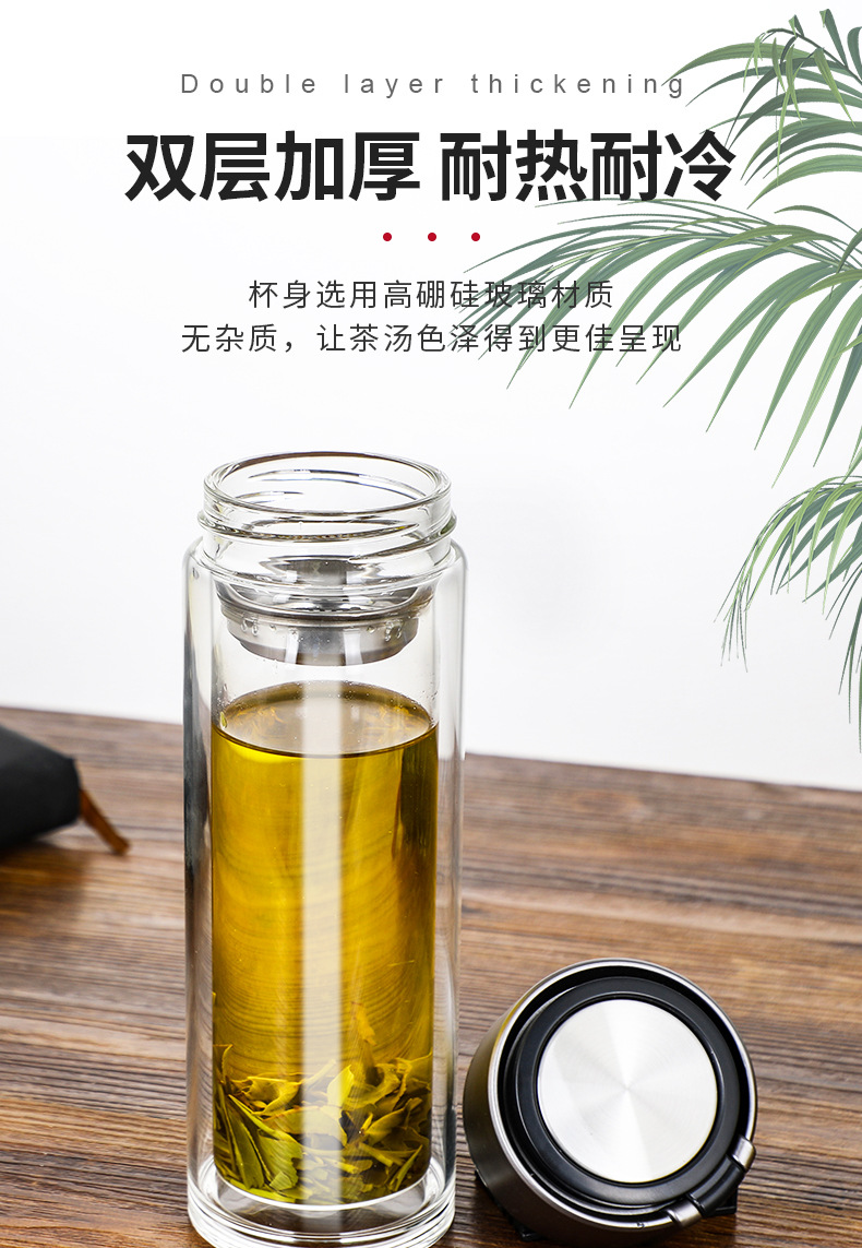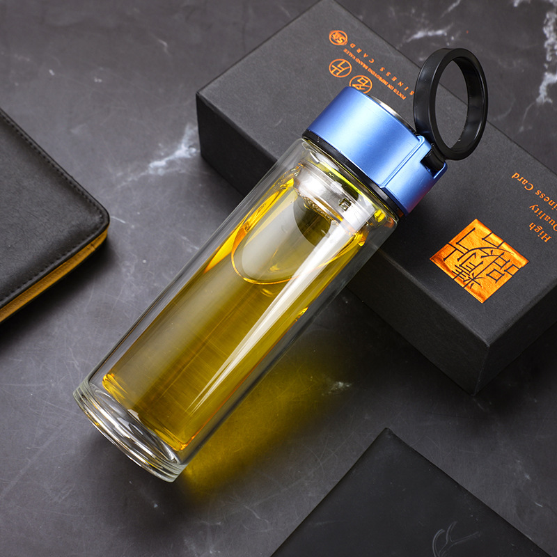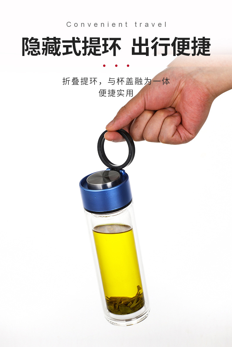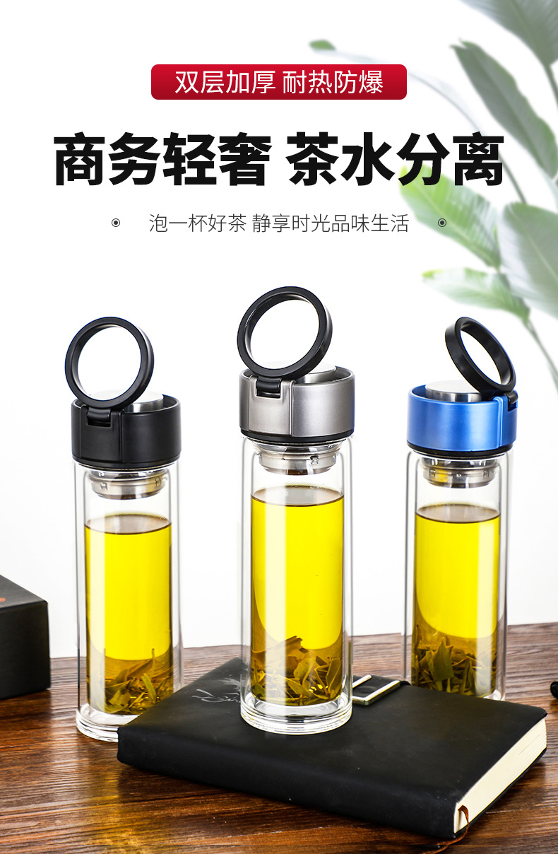 가정용 높은 붕규산 유리 컵 휴대용 반지 휴대용 자동차 물 컵 두꺼운 차 물 분리 필터 티컵 뚜껑