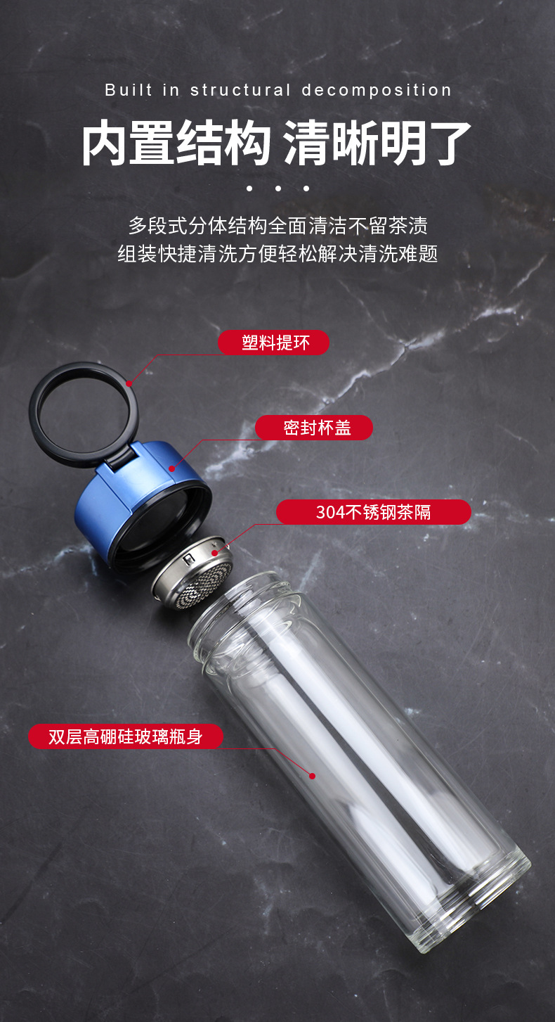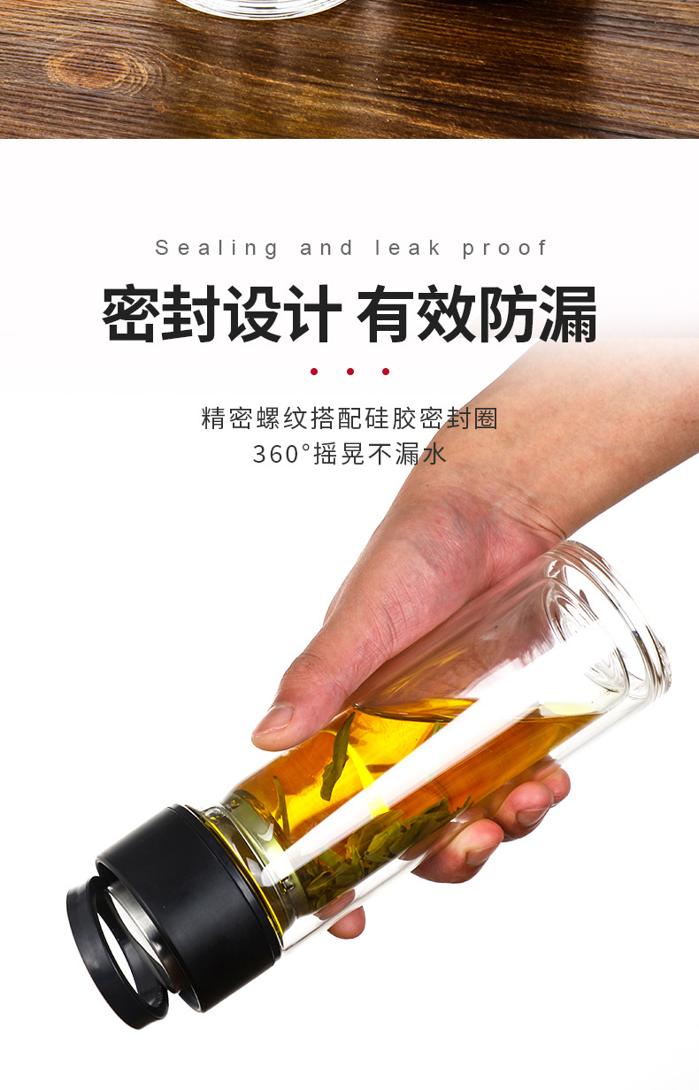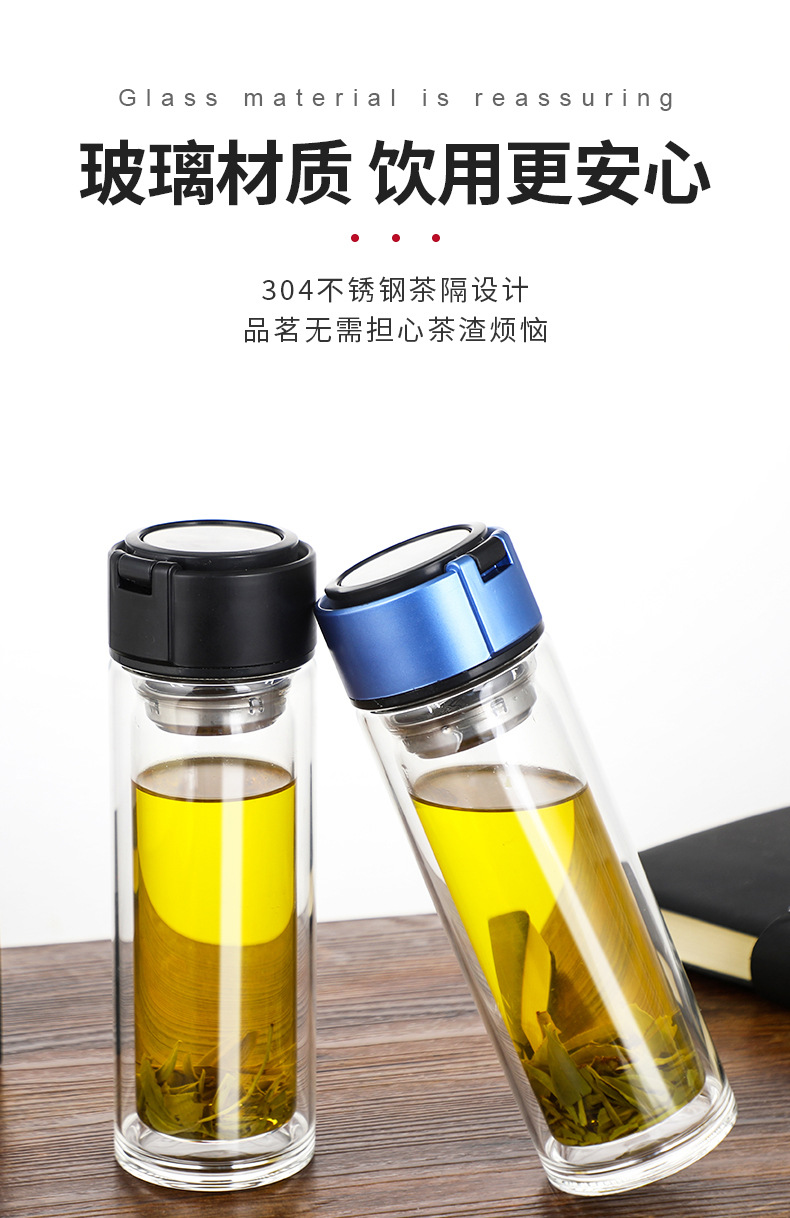 가정용 높은 붕규산 유리 컵 휴대용 반지 휴대용 자동차 물 컵 두꺼운 차 물 분리 필터 티컵 뚜껑