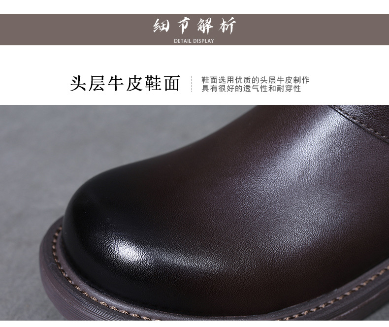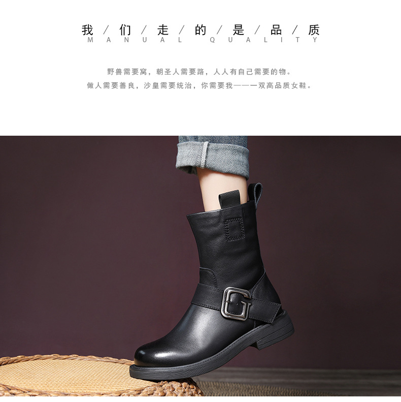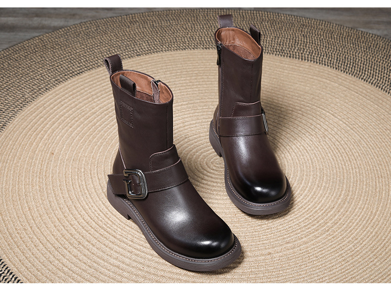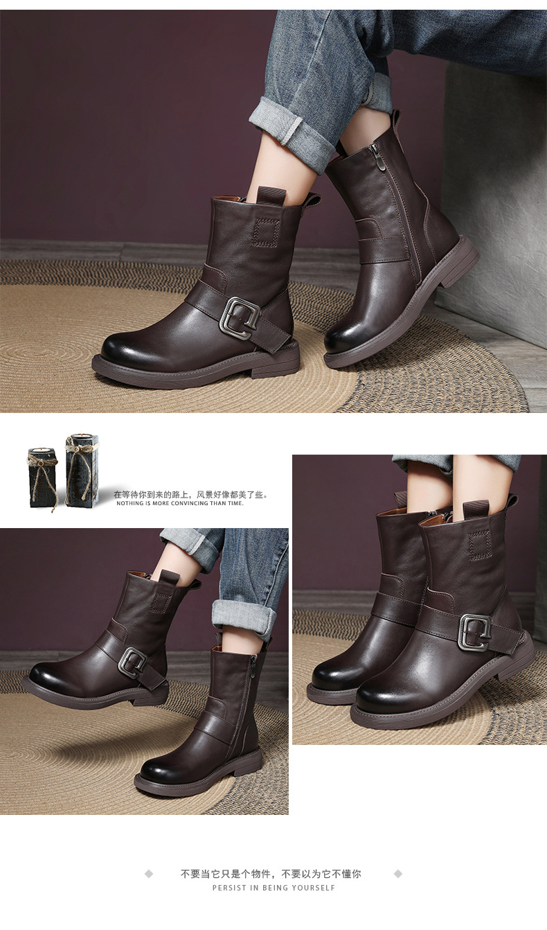 Delphinium 24 가을과 겨울 새로운 탑 레이어 Cowhide 빈티지 캐주얼 마틴 부츠 금속 버클 장식 로우 힐 사이드 Zip 발목 부츠