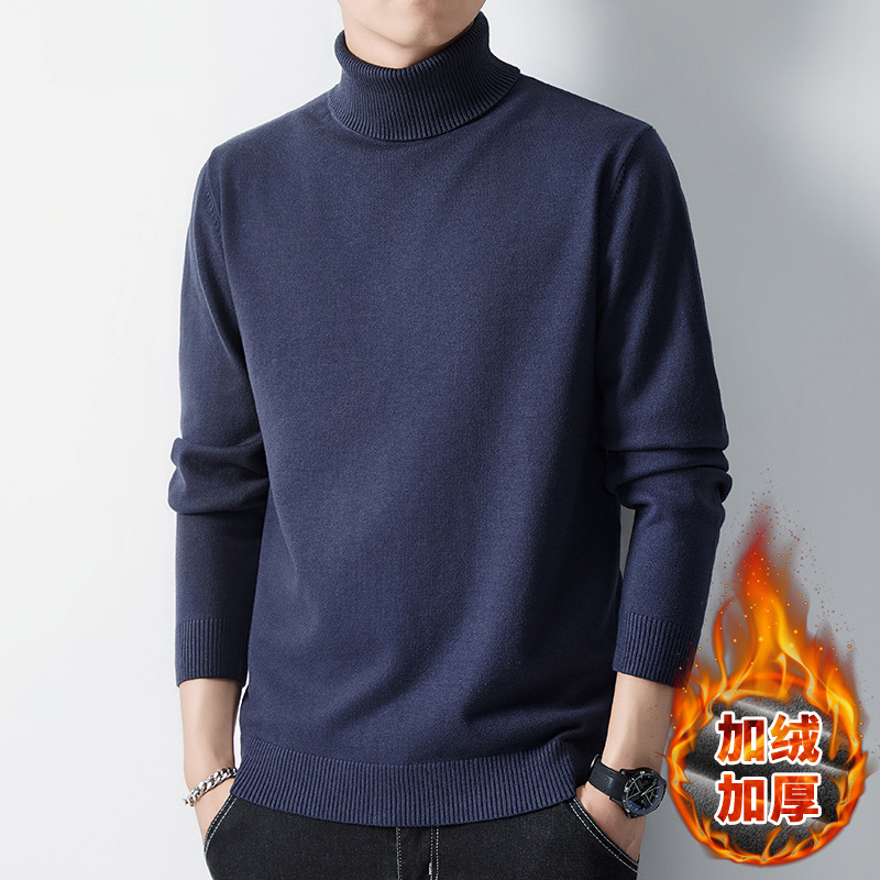 터틀넥 스웨터 남자 기모 가을과 겨울 새로운 내부 두꺼운 니트 스웨터 긴 칼라 따뜻한 옷깃 울 옷