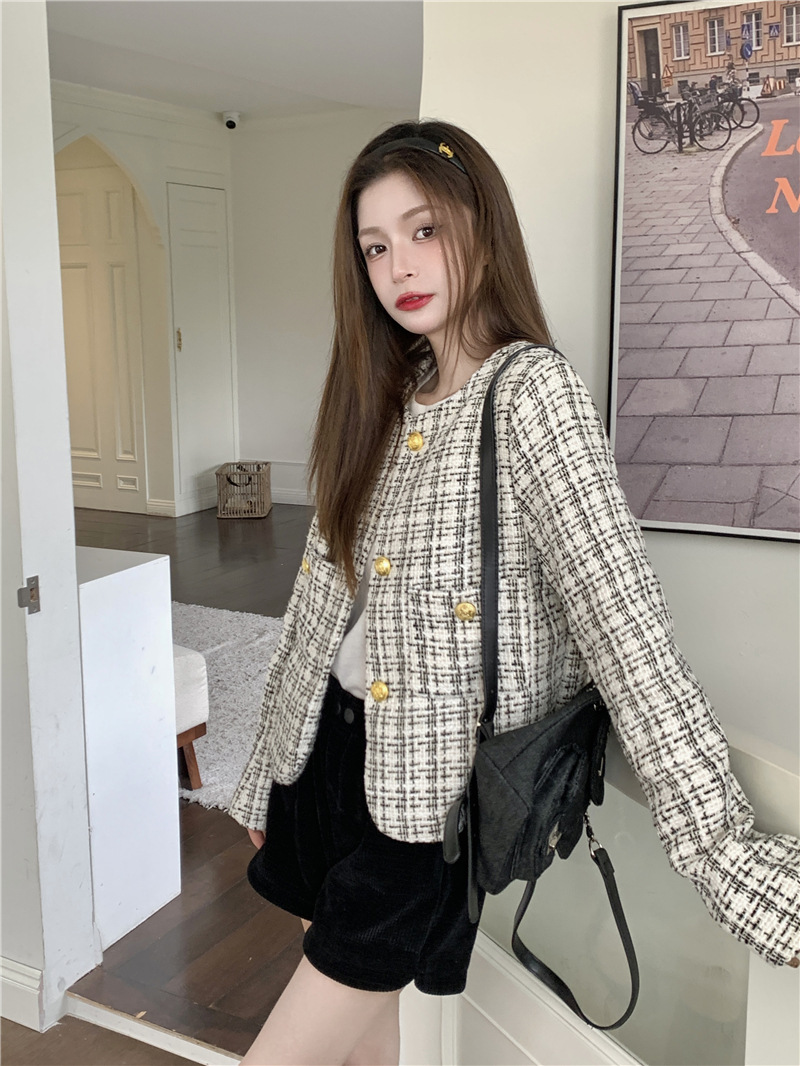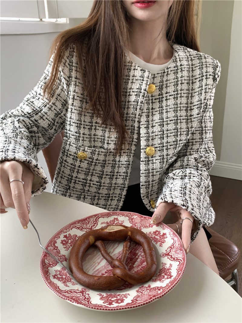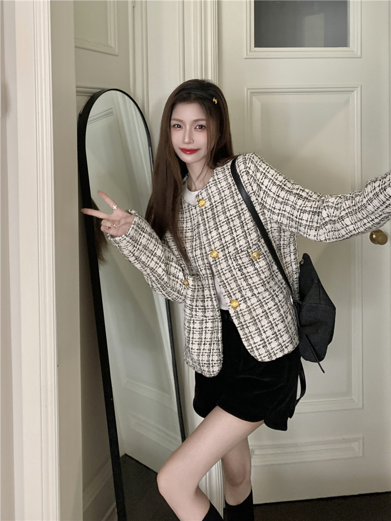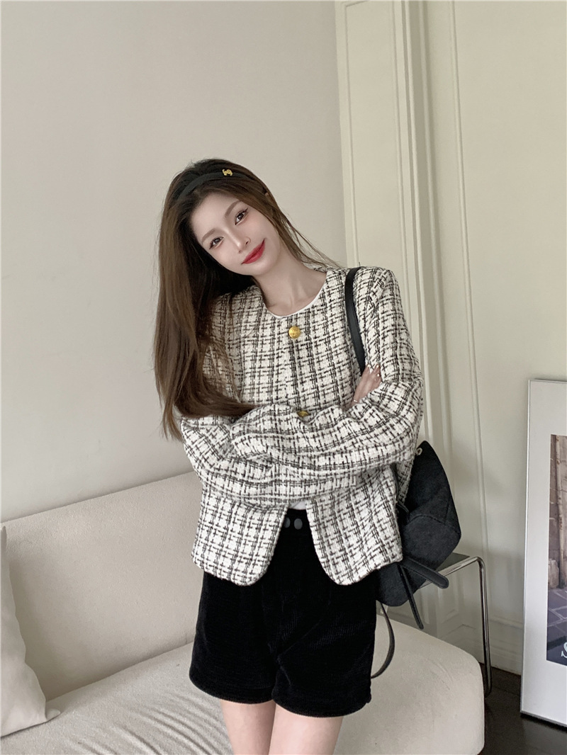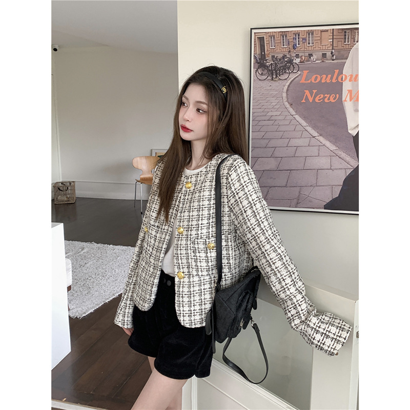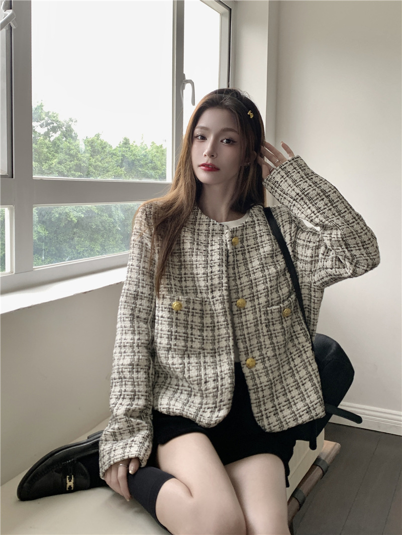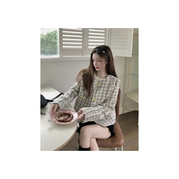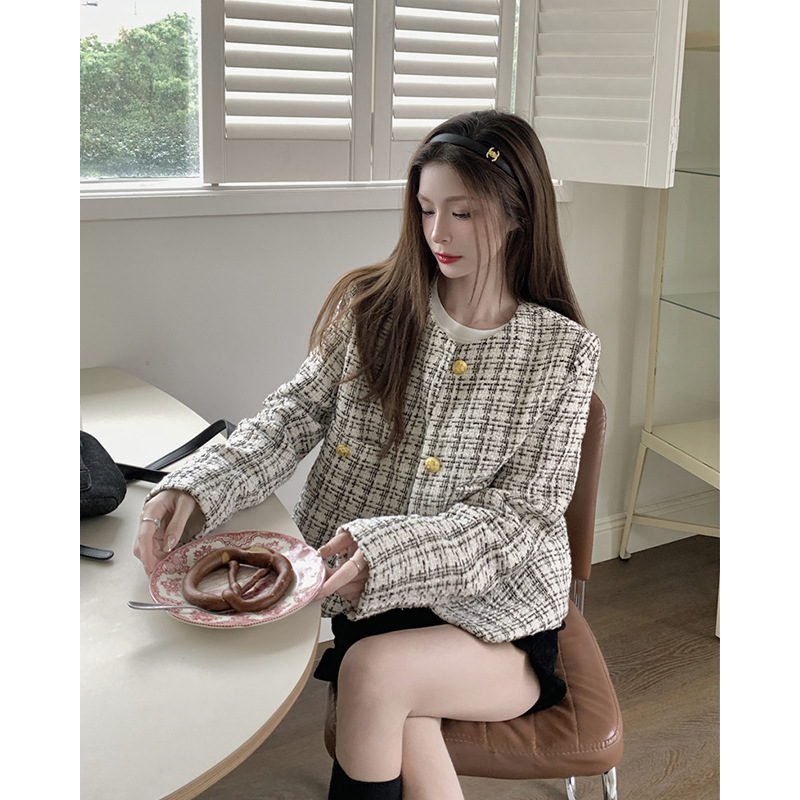 2024 새로운 스타일 샤넬 스타일 코트 여성 가을 빈티지 격자 무늬 느슨한 사교계 스타일 하이 엔드 패션 긴팔 탑