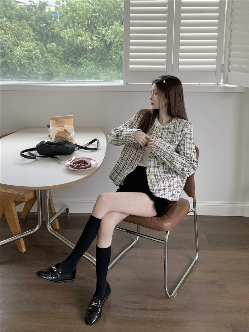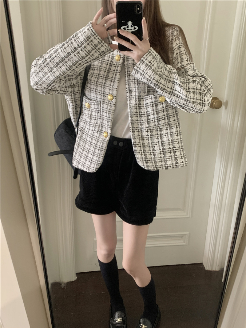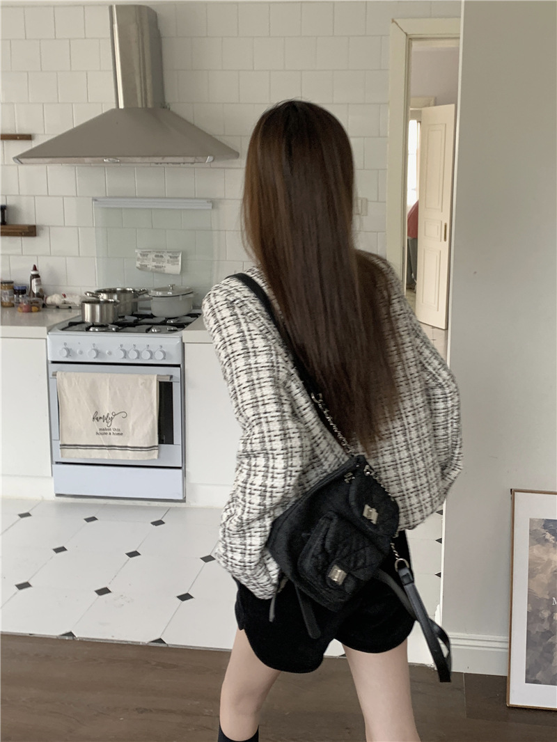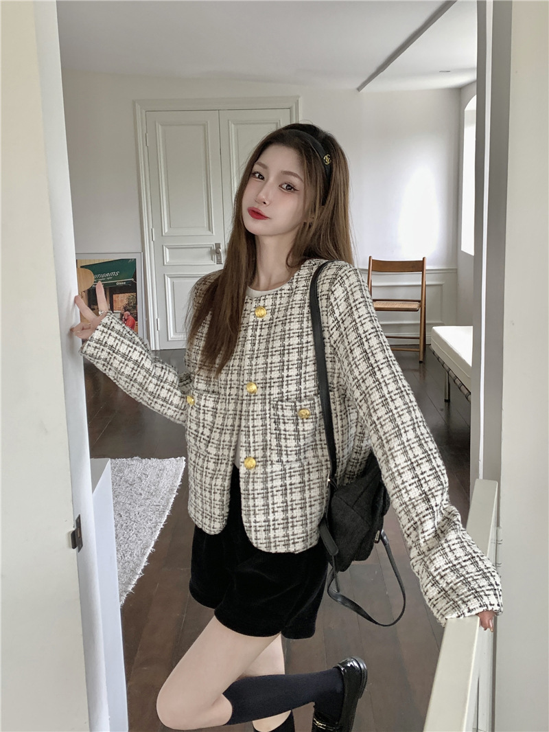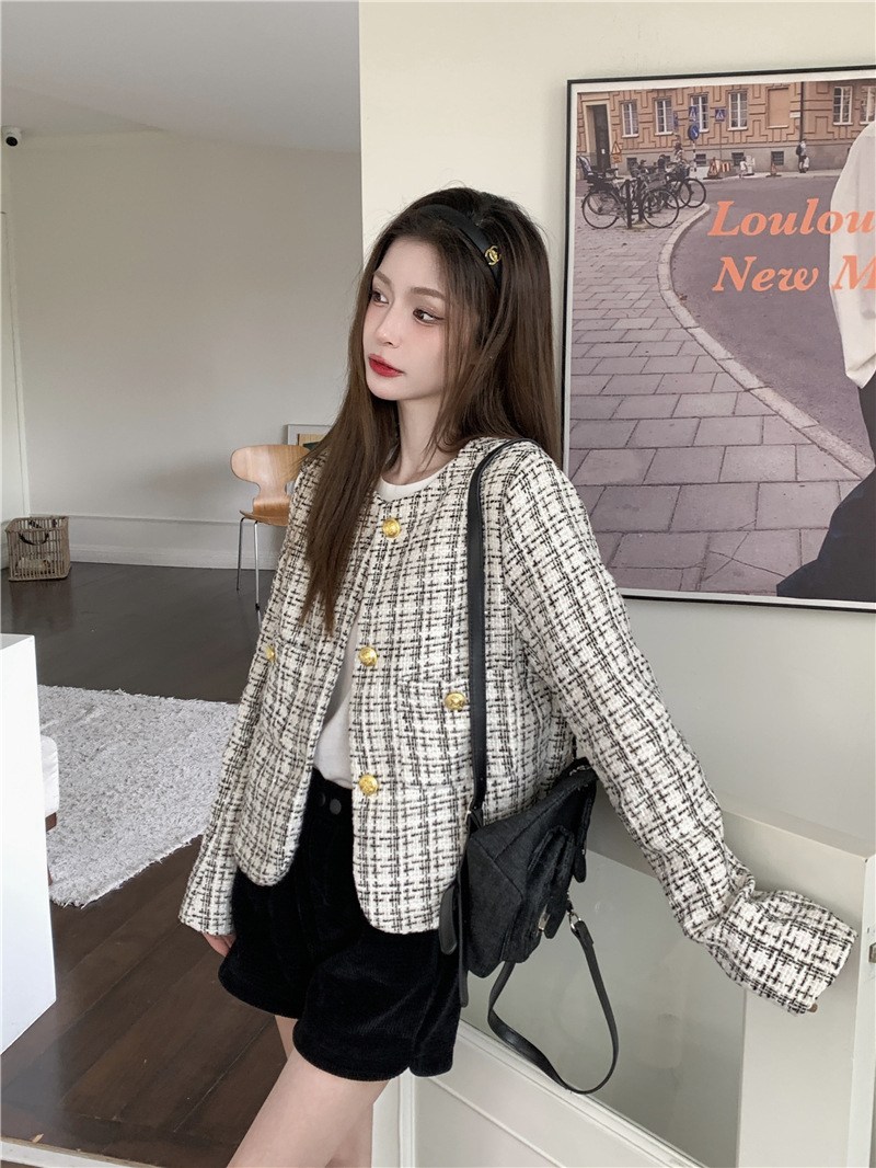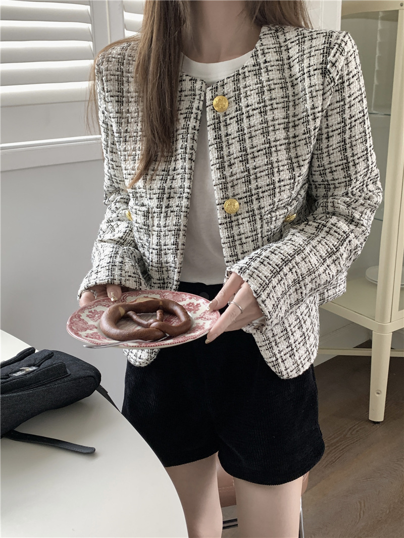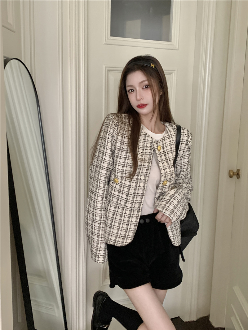 2024 새로운 스타일 샤넬 스타일 코트 여성 가을 빈티지 격자 무늬 느슨한 사교계 스타일 하이 엔드 패션 긴팔 탑