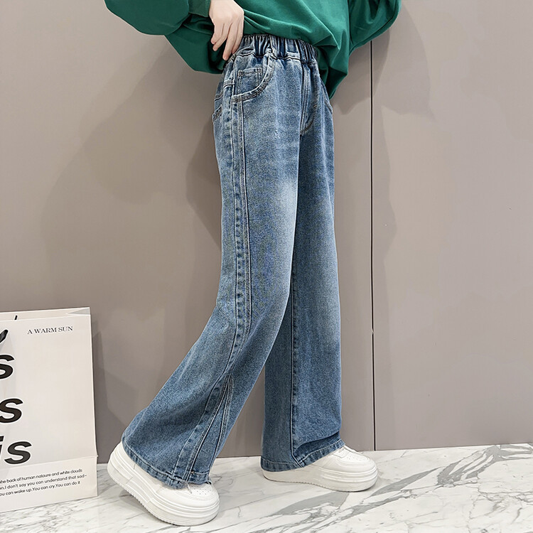 여아 청바지 2025 봄 가을 신상 가을 옷 큰 어린이 한국식 스트레이트 와이드 팬츠 아동 데님 긴 바지스토어 가기