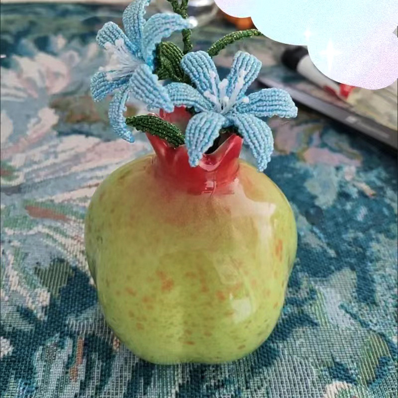 폭발 세라믹 석류 수경 용기 꽃병 시뮬레이션 꽃 중국 홈 액세서리 모델 룸 디스플레이 작은 장식품스토어 가기