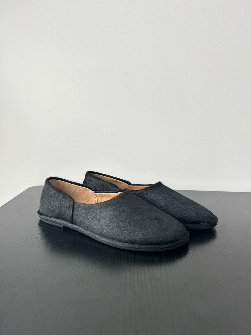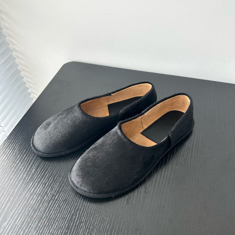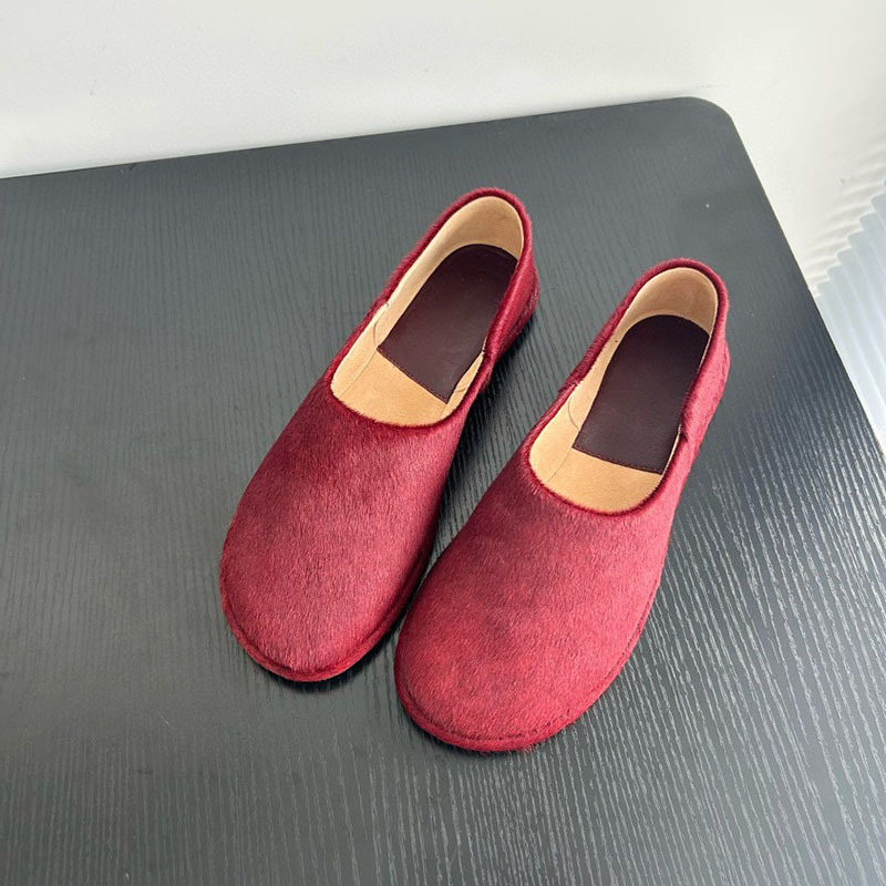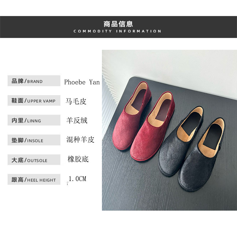 동관 말 헤어 로퍼 여성의 가을과 겨울 새로운 편안한 간단한 틈새 여성 플랫 신발 가죽 얕은 입 싱글 레이어 신발