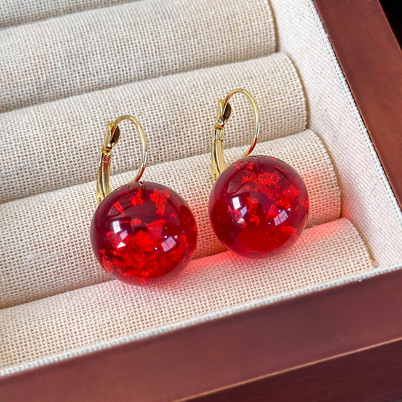 앰버 골드 호일 ~ 레트로 클리어 큰 공 귀 버클 귀걸이 가을 부드러운 얼굴 작은 귀 보석 수지 귀걸이스토어 가기