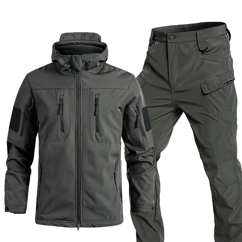 국경 간 상어 피부 TAD 소프트 쉘 충전 의류 세트 승마 바지 남자와 남자의 방수 스포츠 따뜻한 겨울