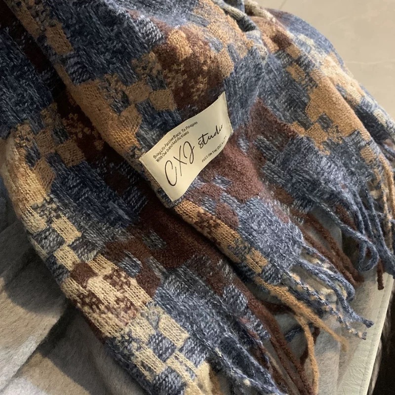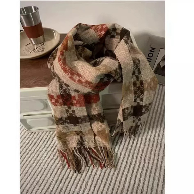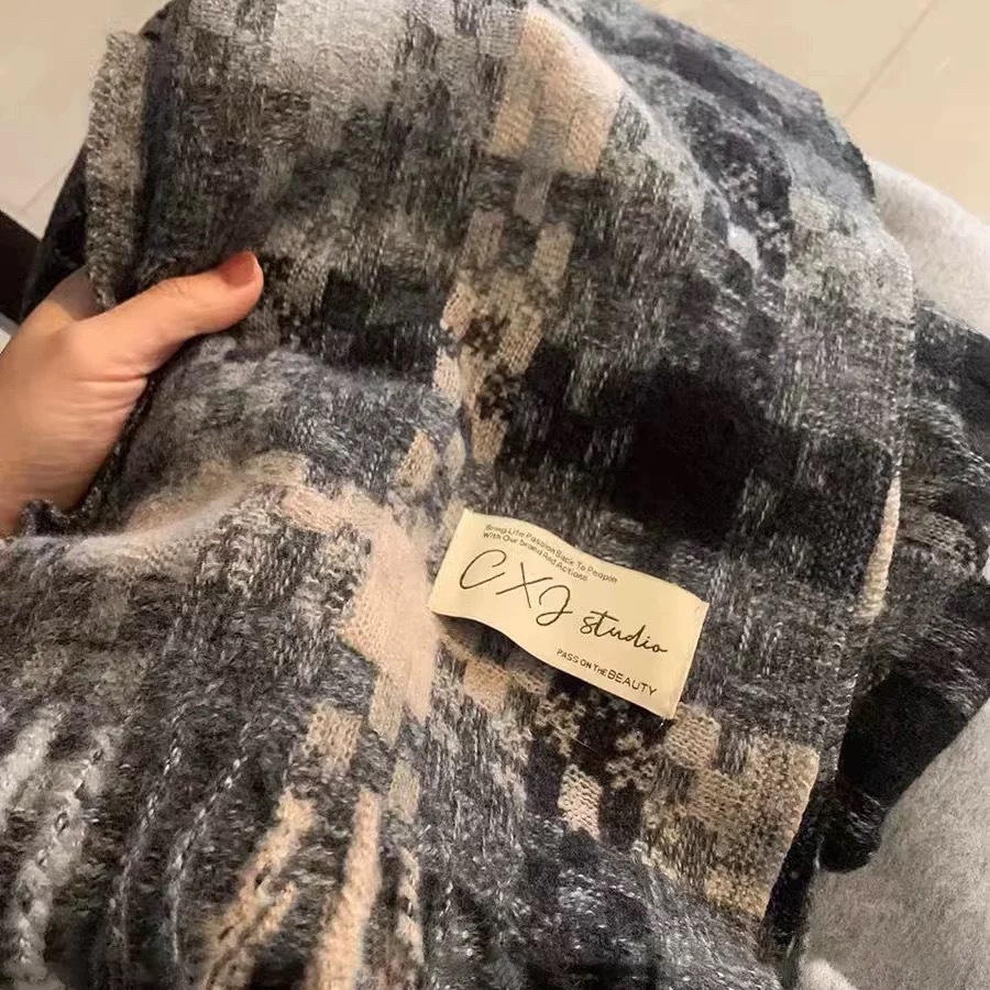 2024 새로운 스카프 겨울 여자 하이 엔드 감각 남자 학생 커플 따뜻한 스카프 레트로 술 격자 무늬