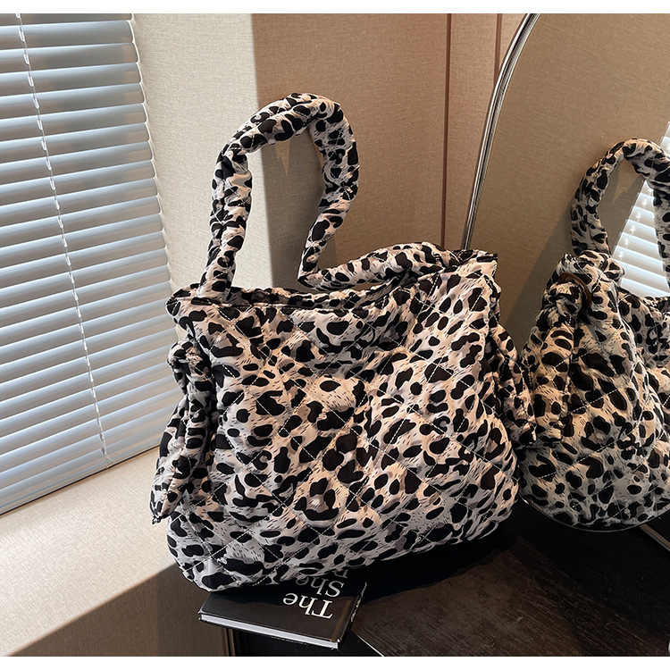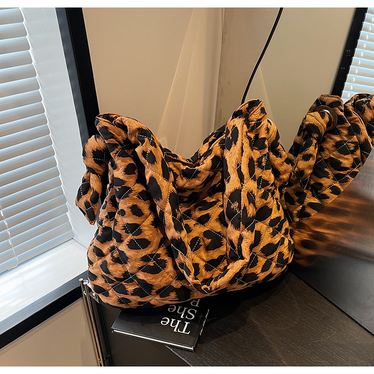 국경 간 레오파드 무늬 가방 여성 대용량 2024 새로운 가을 및 겨울 캐주얼 크로스 바디 헝겊 가방 모든 경기 통근 토트 백