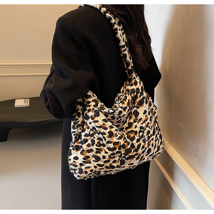 국경 간 레오파드 무늬 가방 여성 대용량 2024 새로운 가을 및 겨울 캐주얼 크로스 바디 헝겊 가방 모든 경기 통근 토트 백스토어 가기