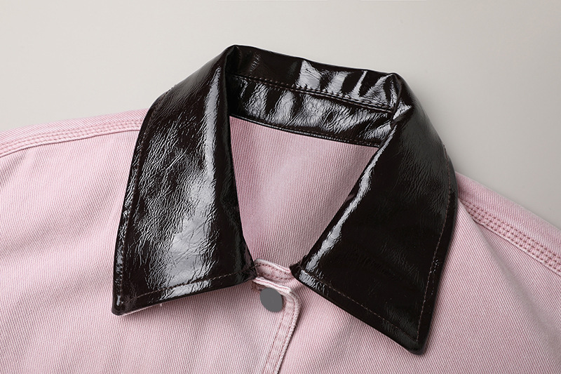 2024 겨울 새로운 PU 가죽 바느질 옷깃 상자 재킷 무거운 산업 워시 느슨한 데님 재킷 여성 4JKT006