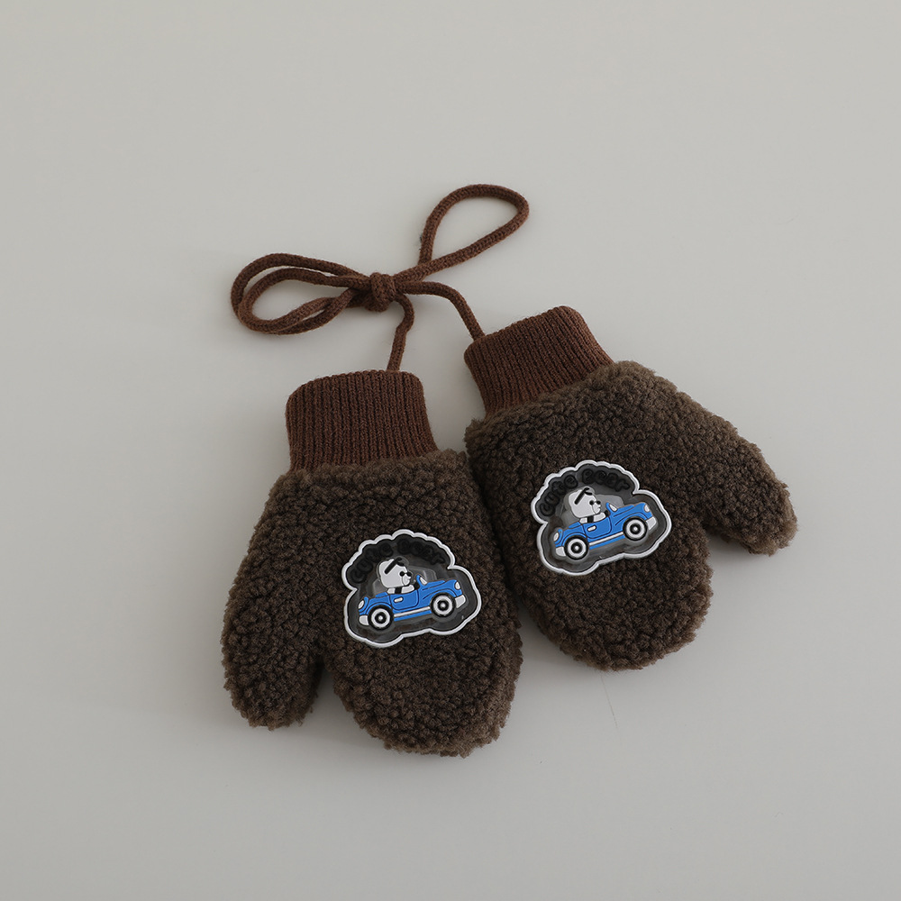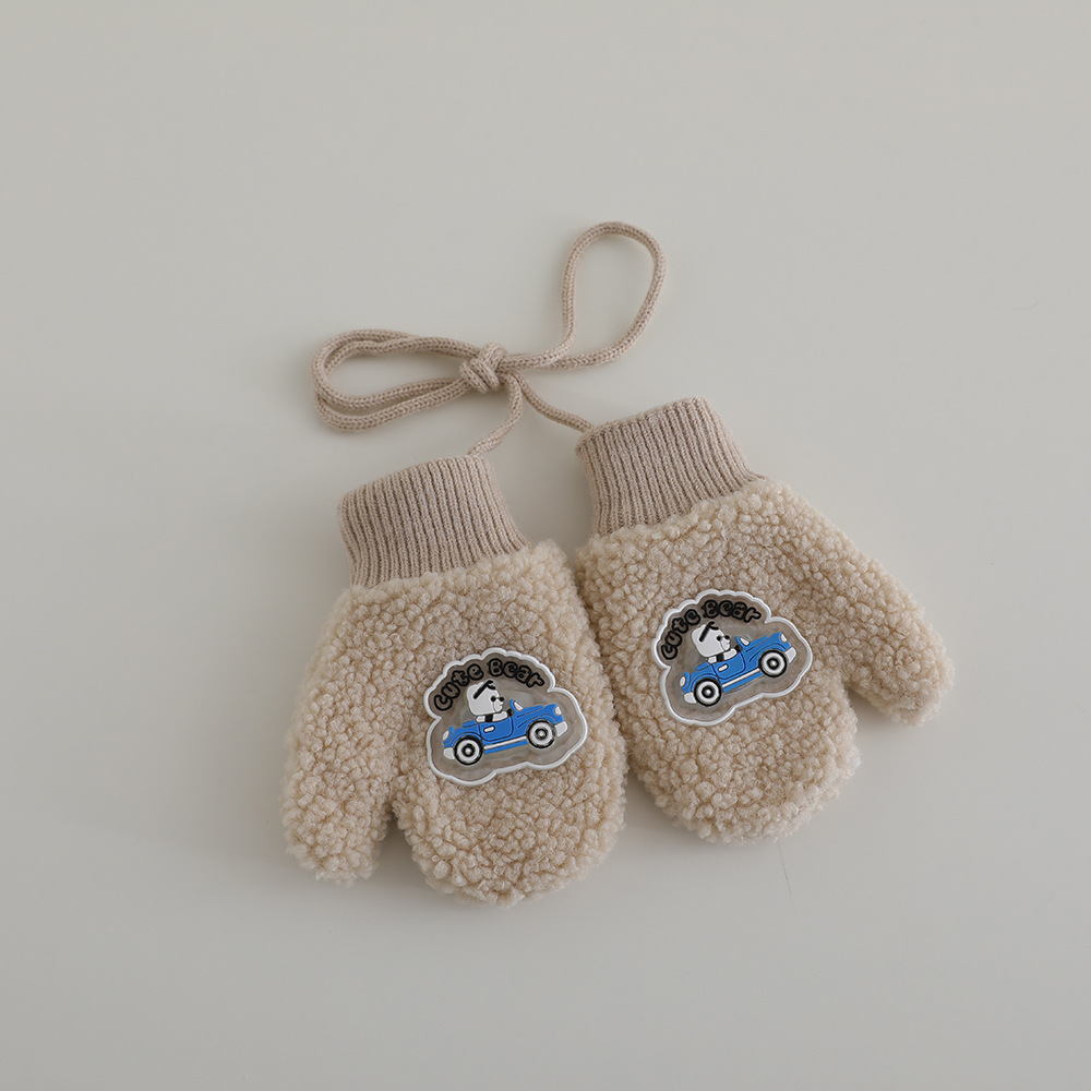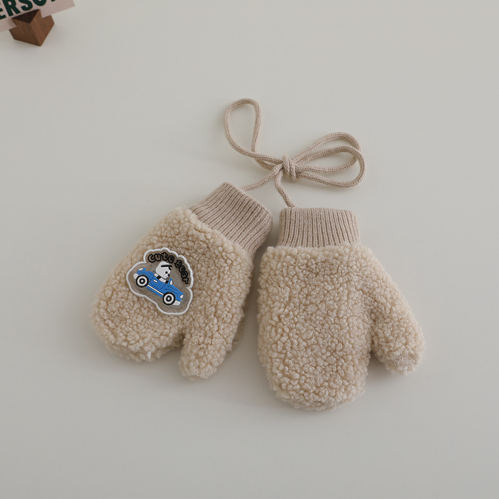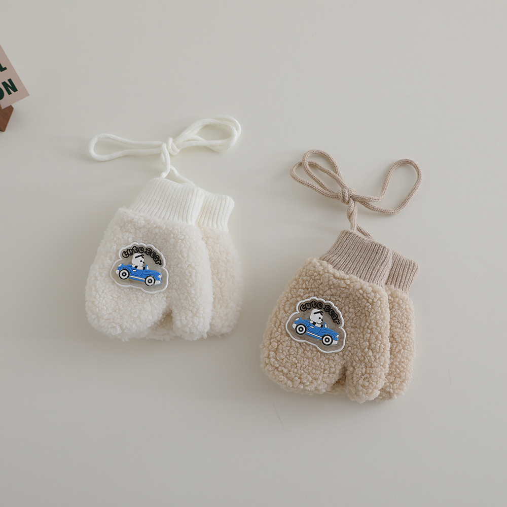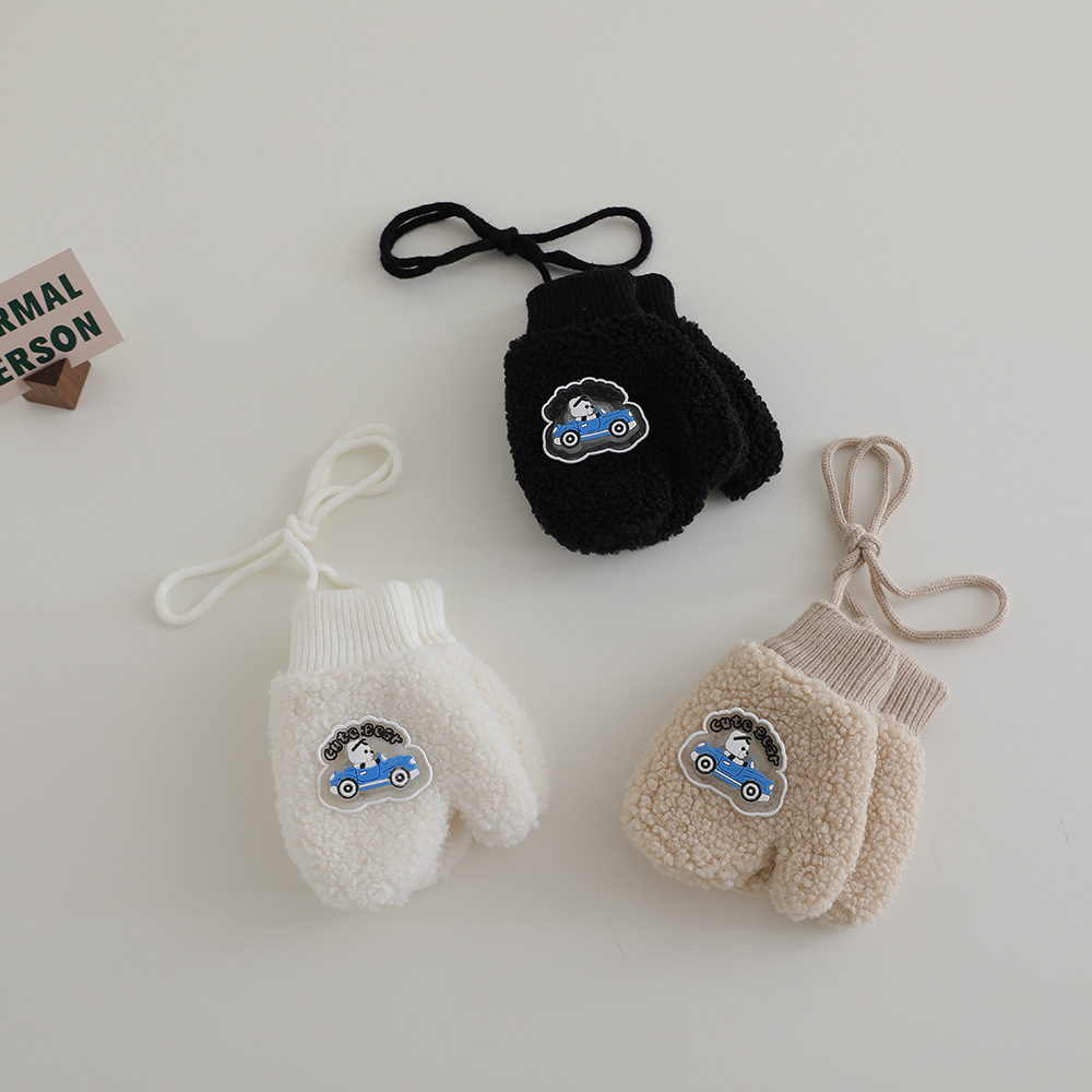 곰 자동차 어린이 장갑 가을과 겨울 모든 것을 포함하는 손가락 양고기 벨벳 아기의 목 교수형 손가락 어린이 따뜻한 장갑