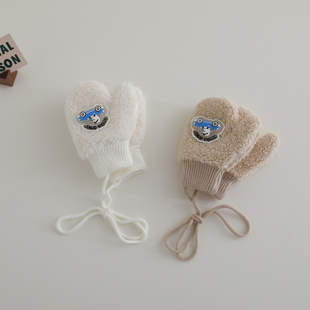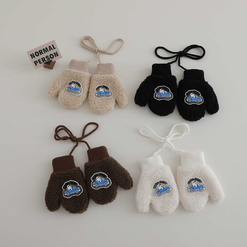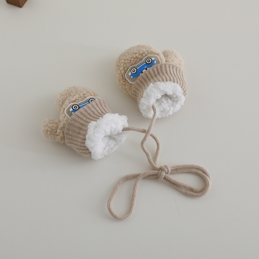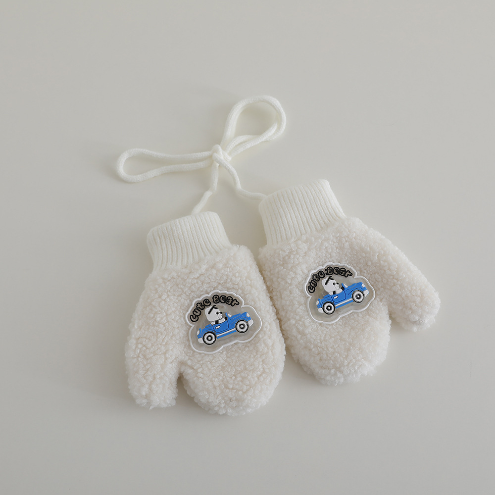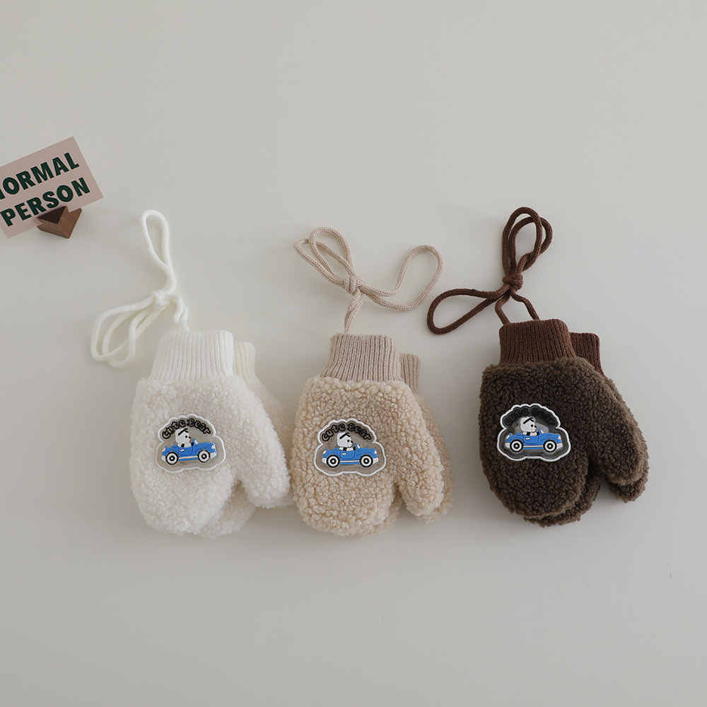 곰 자동차 어린이 장갑 가을과 겨울 모든 것을 포함하는 손가락 양고기 벨벳 아기의 목 교수형 손가락 어린이 따뜻한 장갑