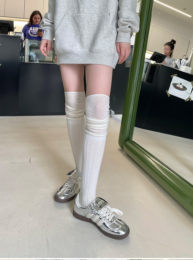 달콤하고 뜨거운 유행 바느질 더미 허벅지 양말 부츠 뜨거운 드릴링 수직 패턴 슬리밍 높은 코튼 양말 오버 더 무릎 양말 가을과 겨울 여성스토어 가기