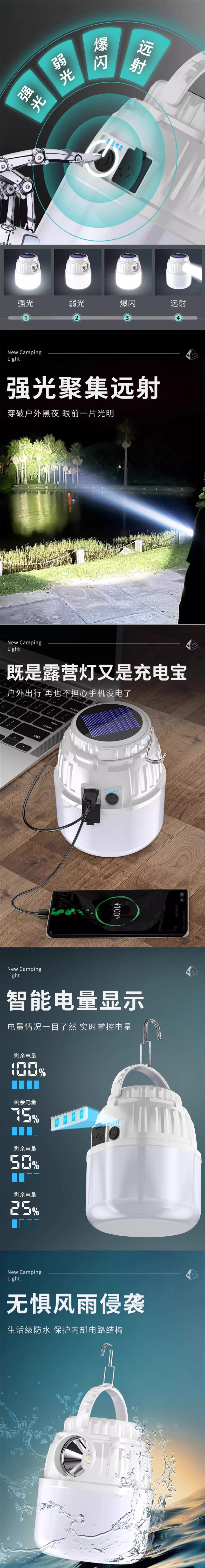 태양 캠핑 조명 야간 시장 정지 조명 정전 비상 조명 충전 긴 내구성 야외 텐트 조명 교수형 조명스토어 가기