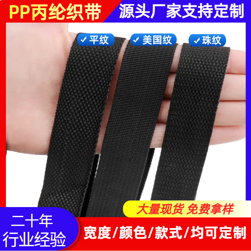 厂家黑色丙纶平纹织带辅料包边带人字带箱包背带pp加厚美国纹