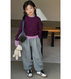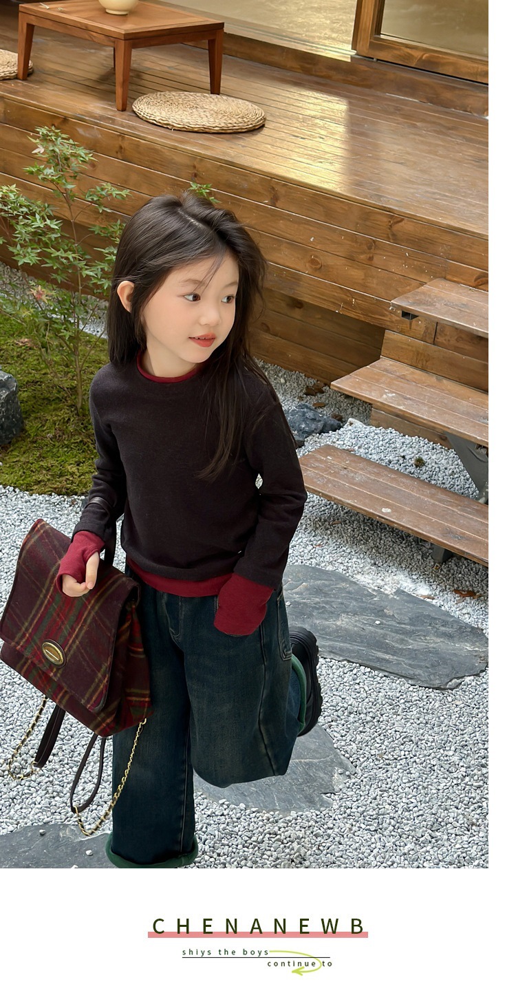 한국 스타일 여아 봄옷 2025 신상 아동용 고탄력 긴팔 티셔츠 유아 투피스 스타일 상의 배색 트렌디스토어 가기