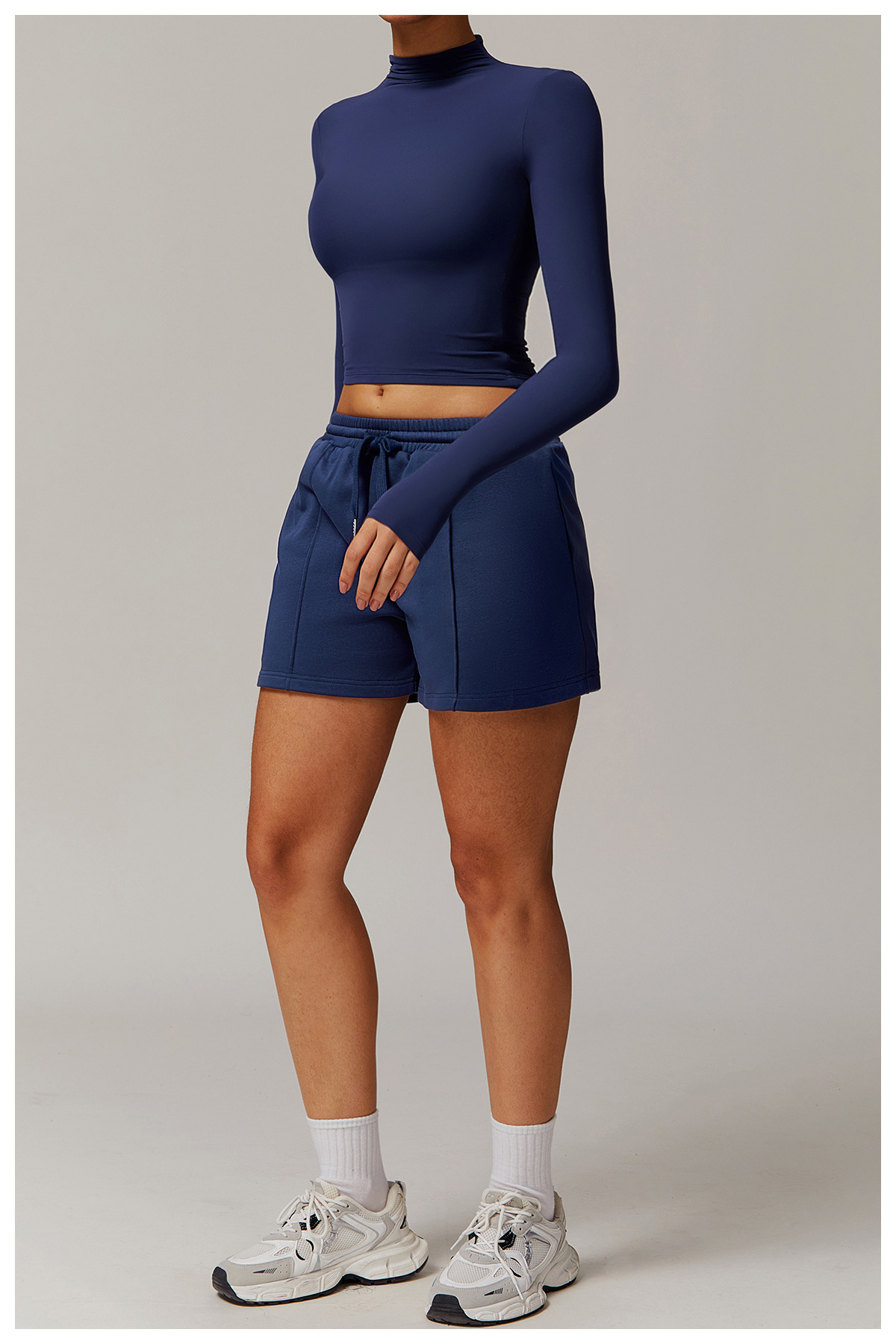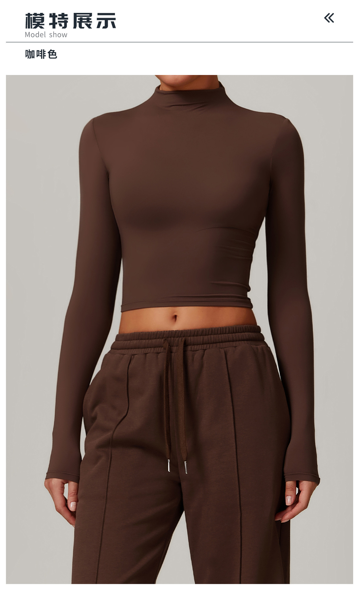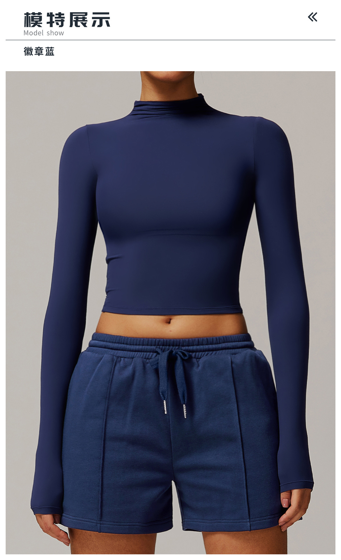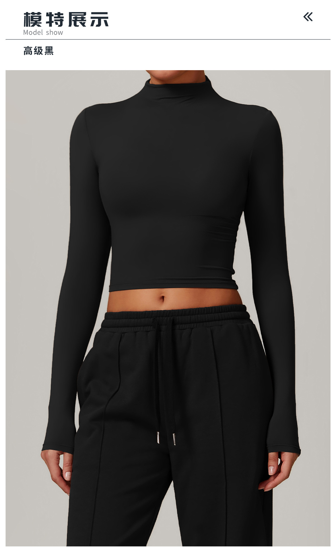 Zechuang 유럽과 미국의 빠른 건조 피트니스 스포츠 긴팔 탑 높은 목 타이트 아우터 올 매치 긴팔 요가 의류 8933스토어 가기