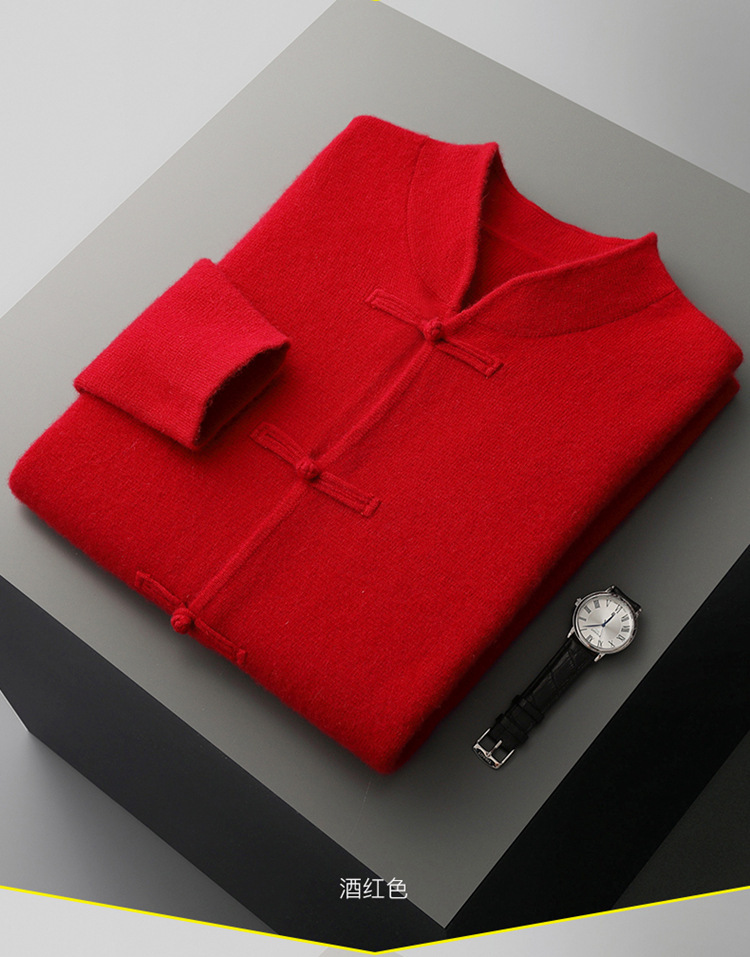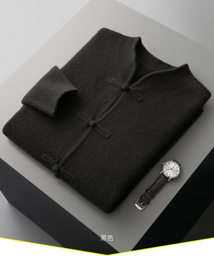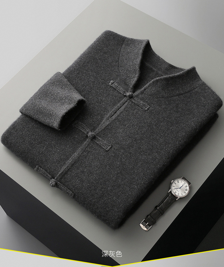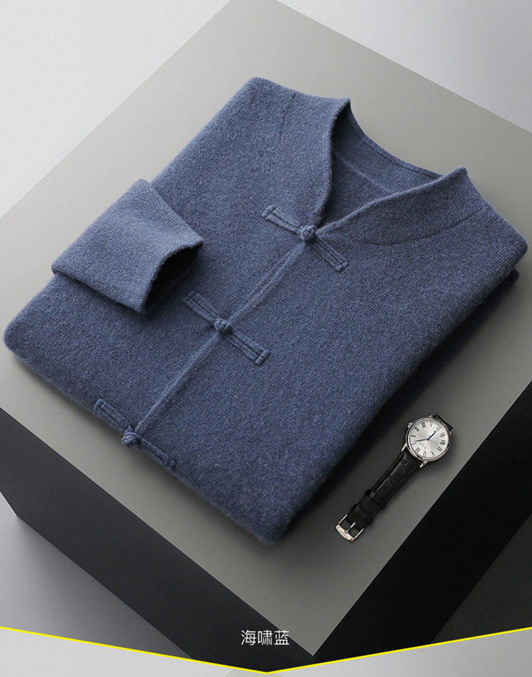 2024 가을과 겨울 남자 모직 스웨터 버클 코트 패션 골동품 V 넥 카디건 아마존 폭발스토어 가기