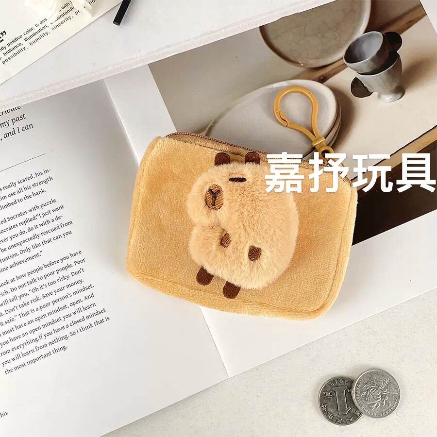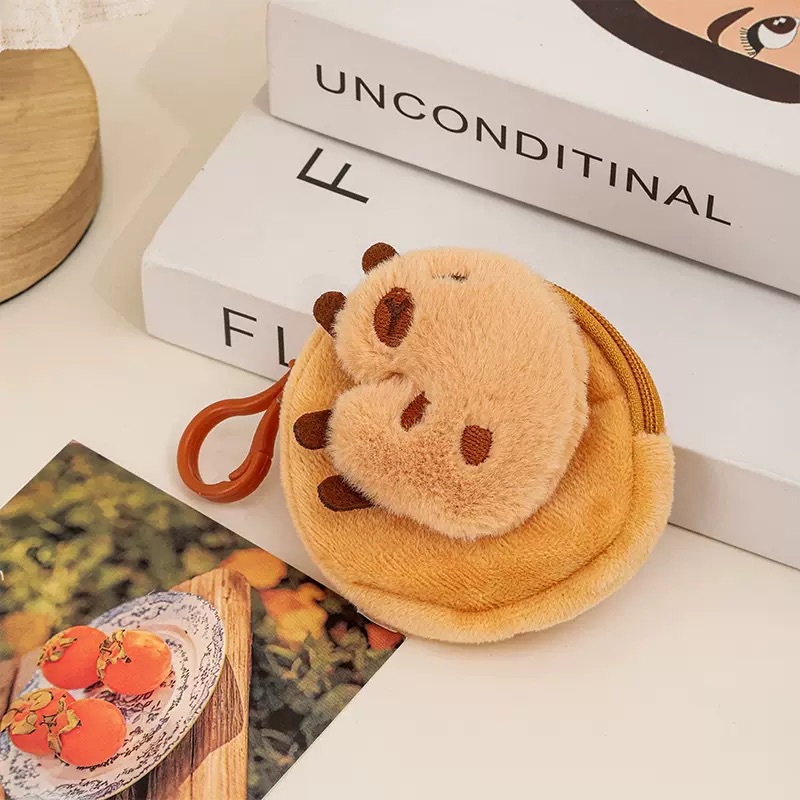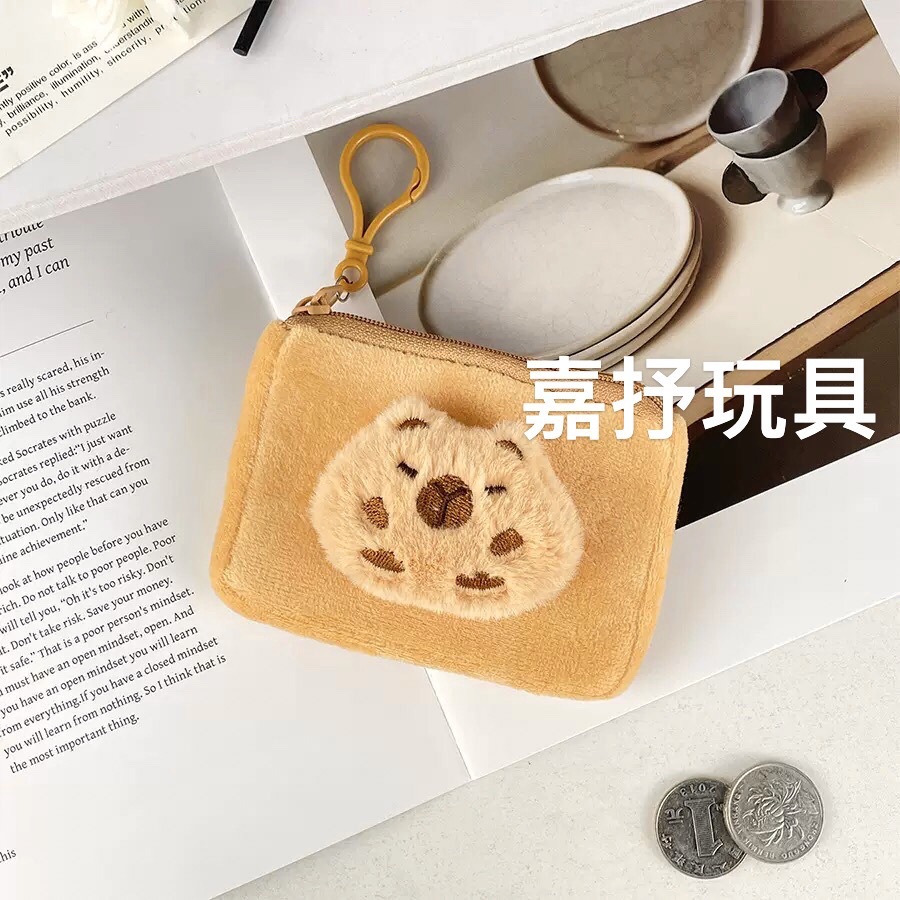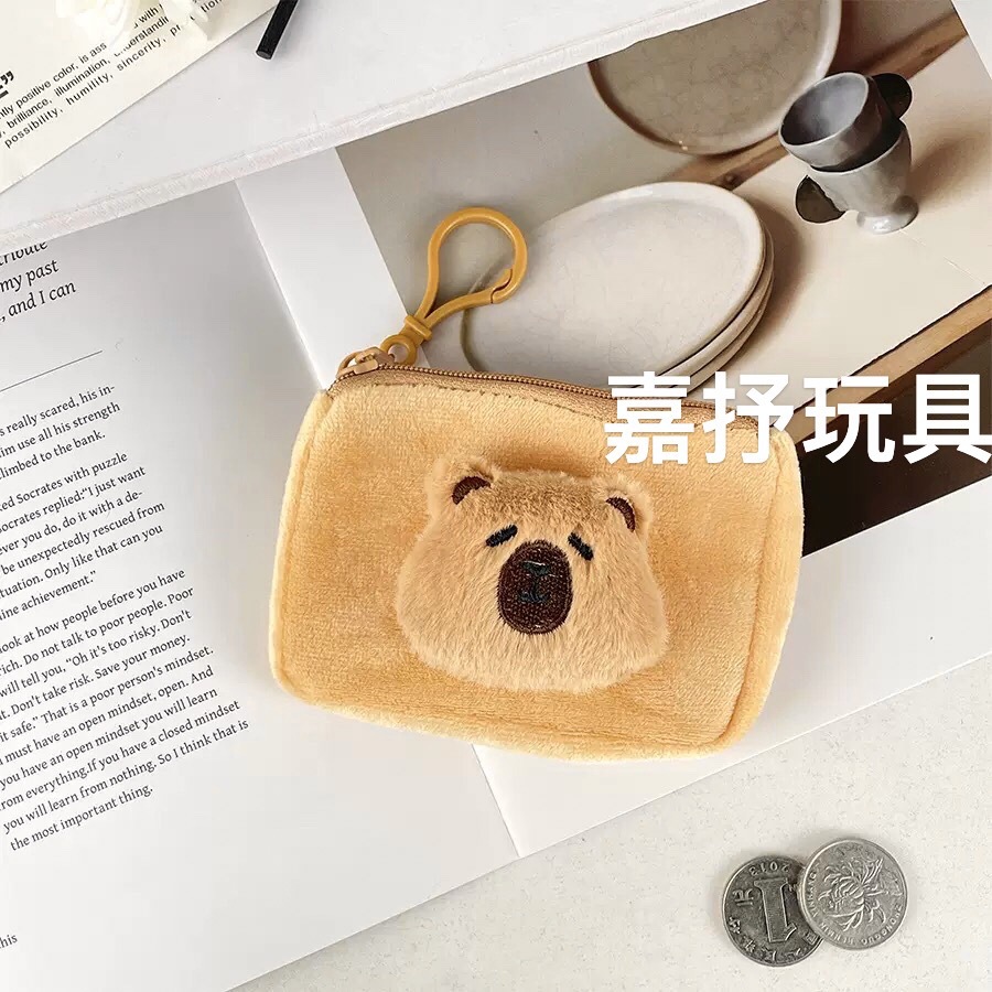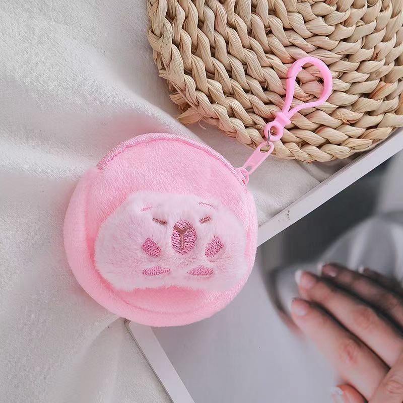 Xiaohongshu Kapibara 헤드폰 동전 지갑 귀여운 만화 플러시 동전 지갑 여성용 수납 키 가방스토어 가기