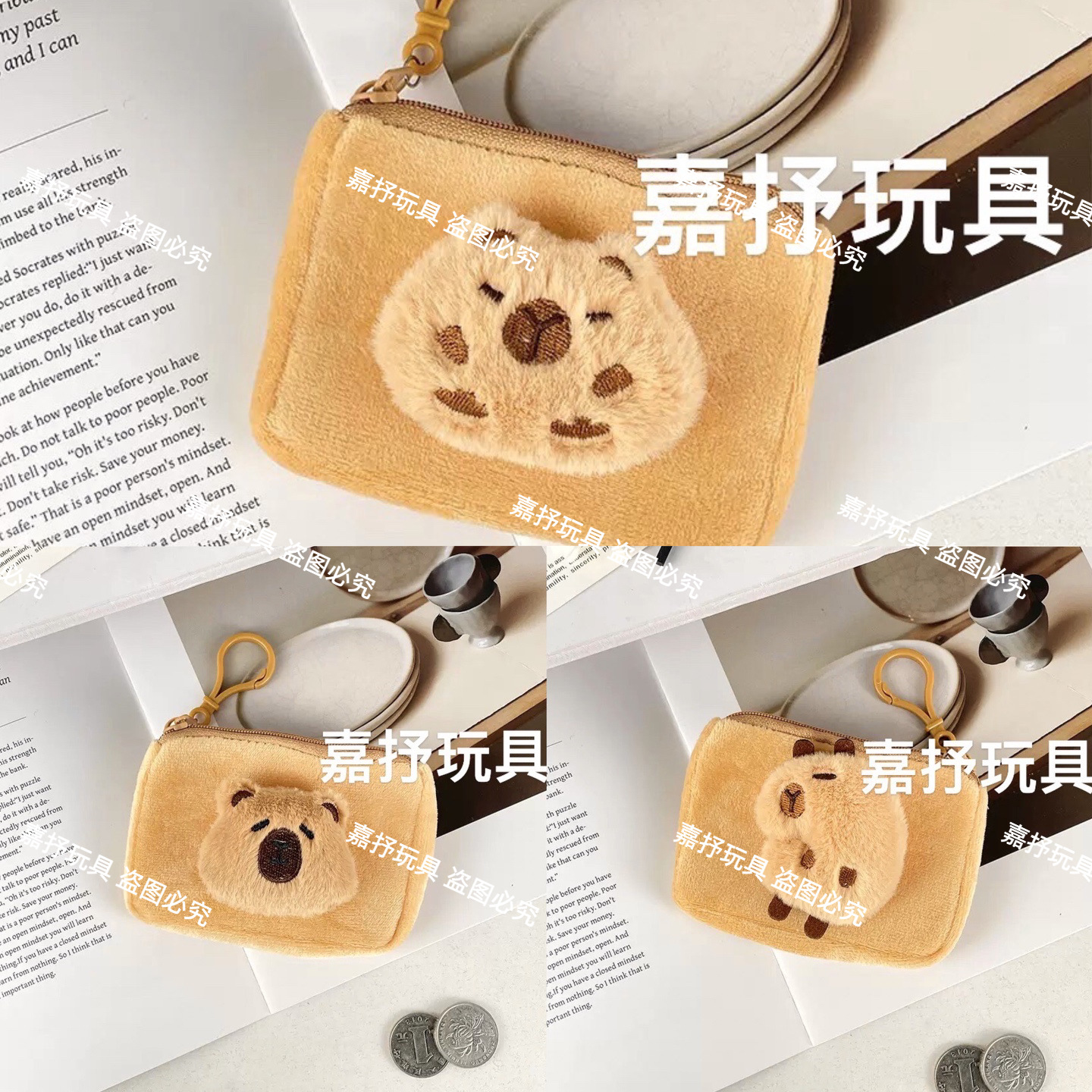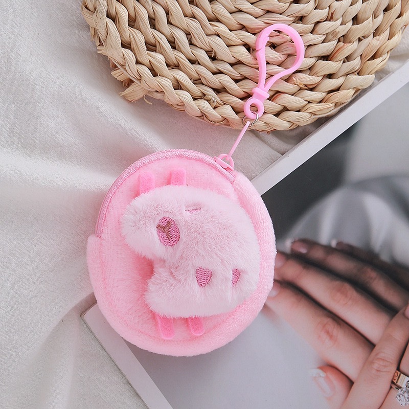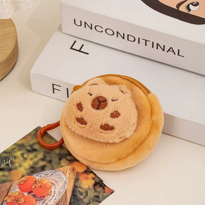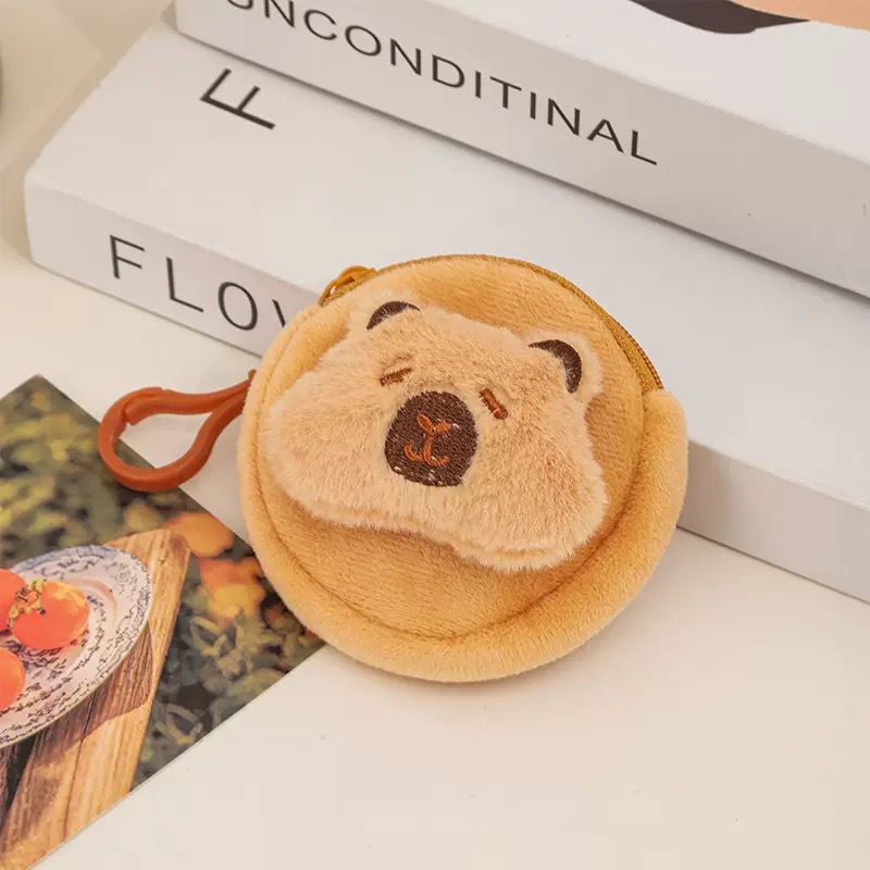 Xiaohongshu Kapibara 헤드폰 동전 지갑 귀여운 만화 플러시 동전 지갑 여성용 수납 키 가방스토어 가기
