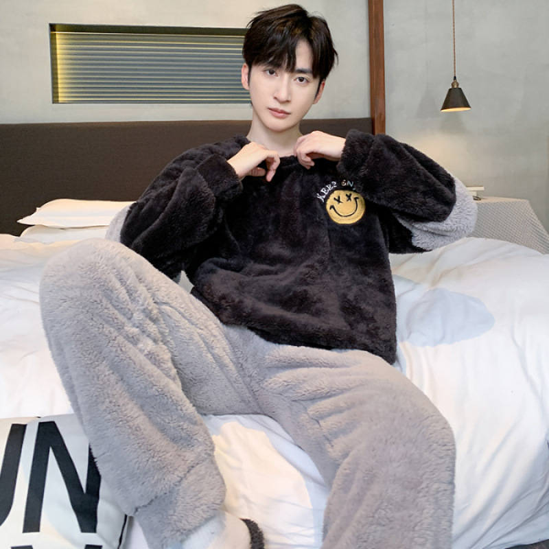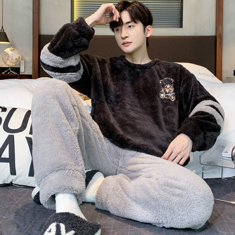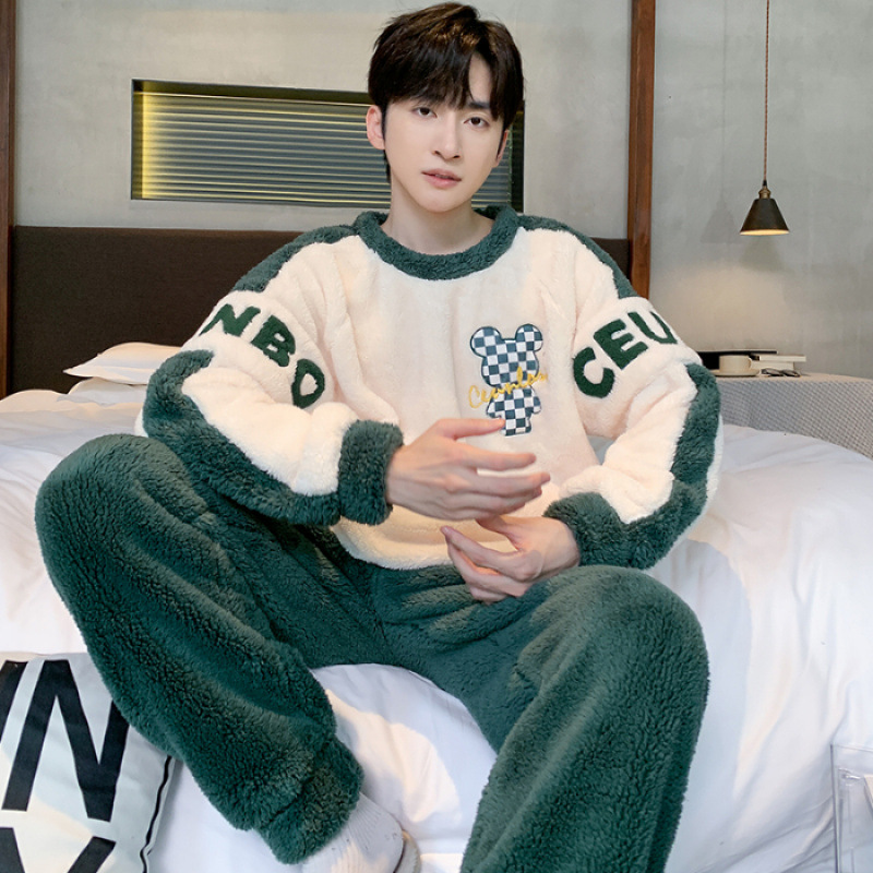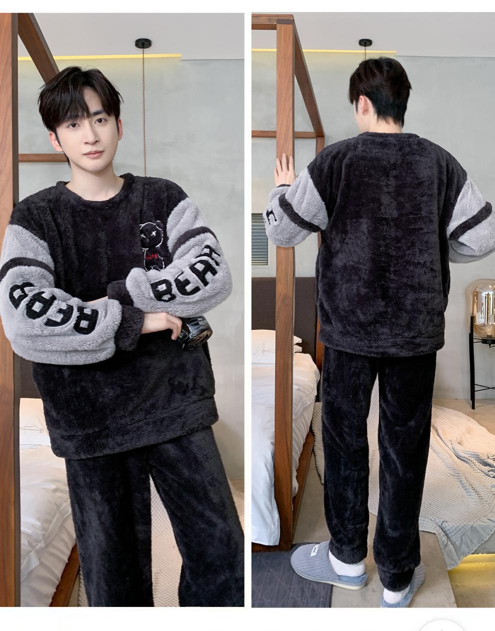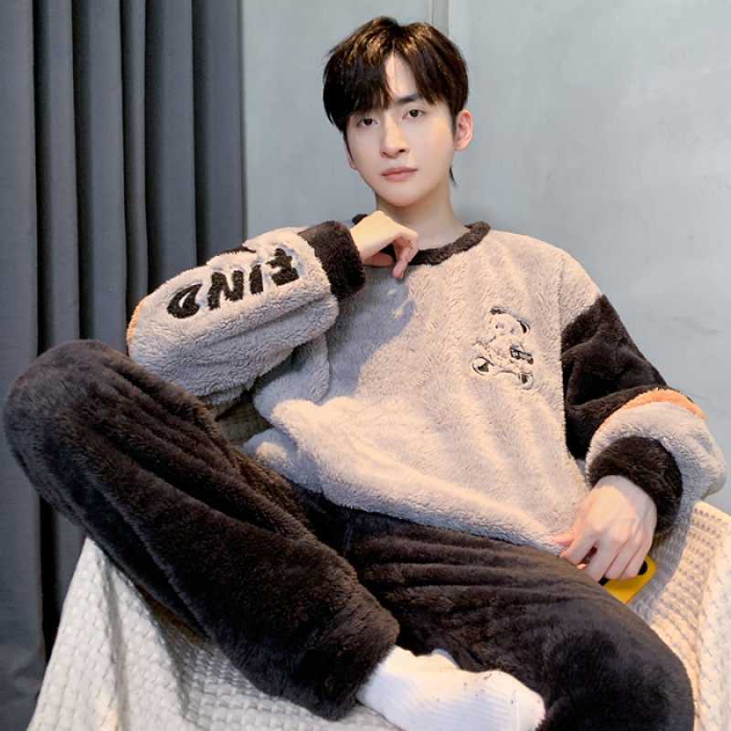 남성복 플러시 두꺼운 벨벳 따뜻한 남성 잠옷 홈 의류 만화 세트