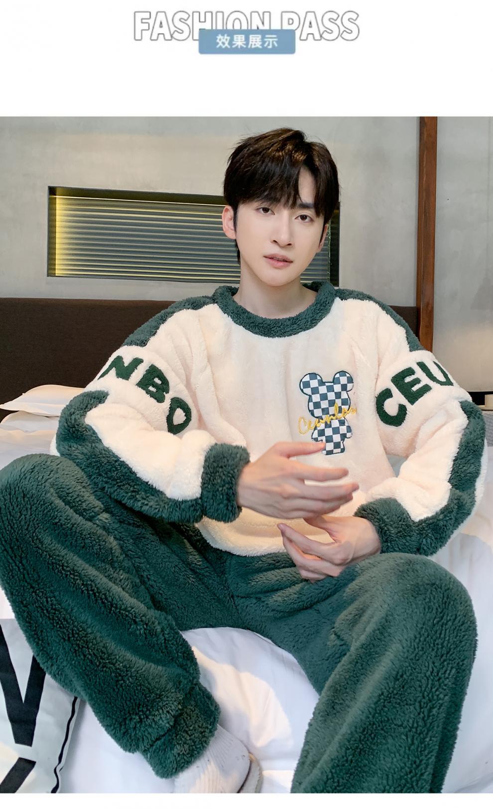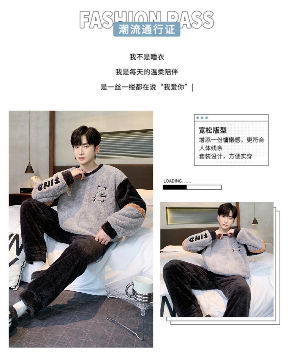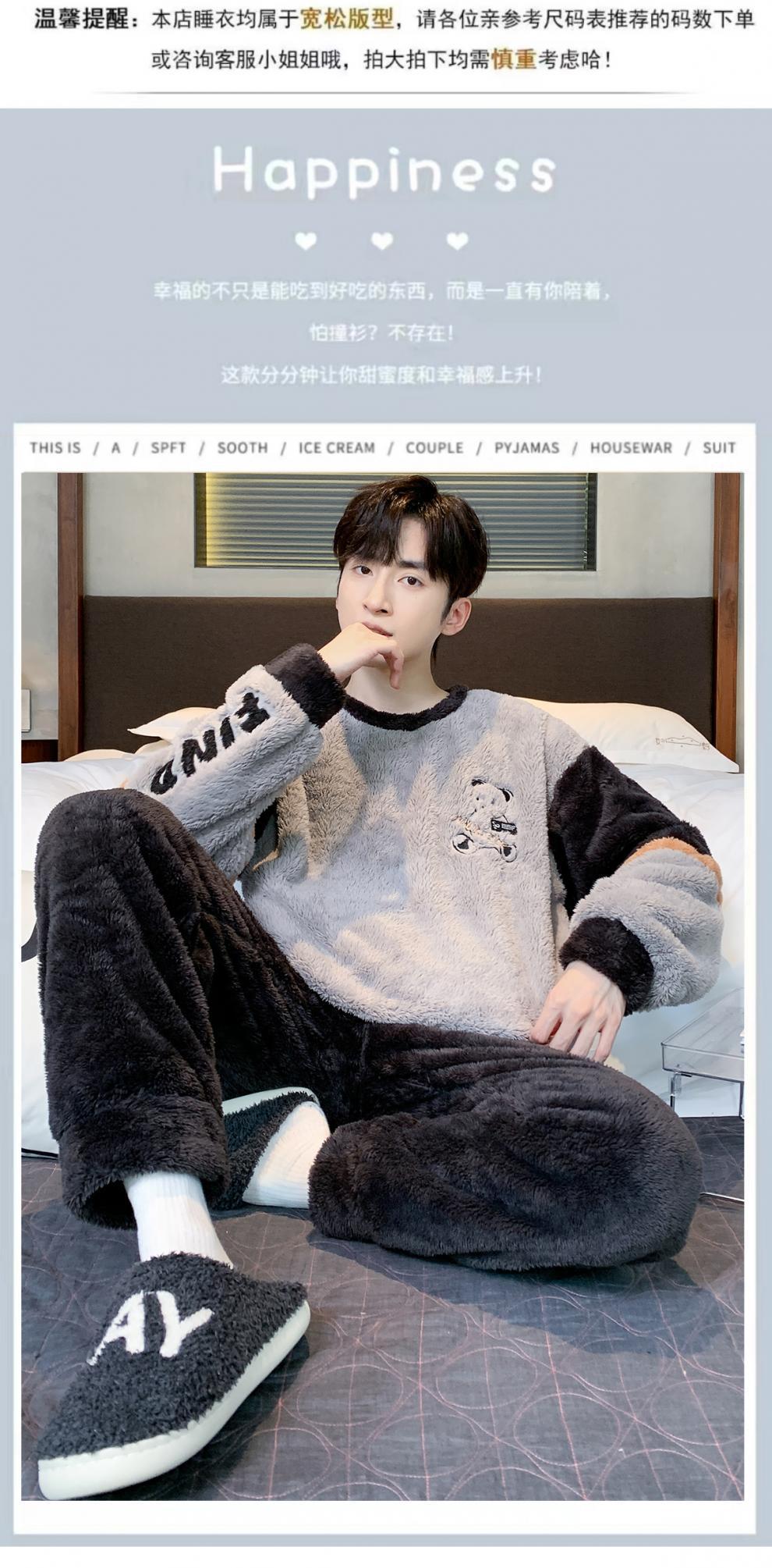 남성복 플러시 두꺼운 벨벳 따뜻한 남성 잠옷 홈 의류 만화 세트스토어 가기