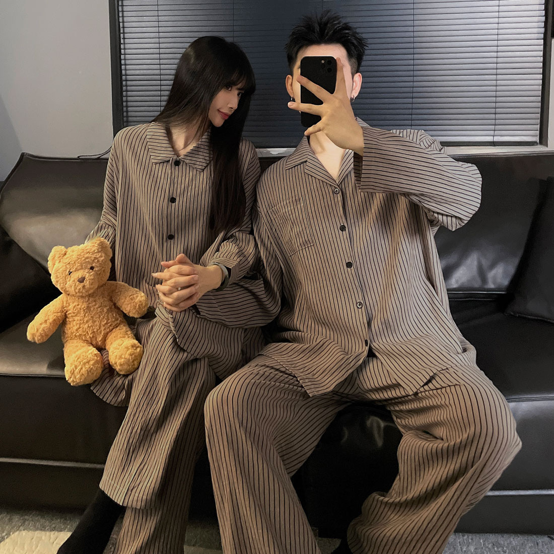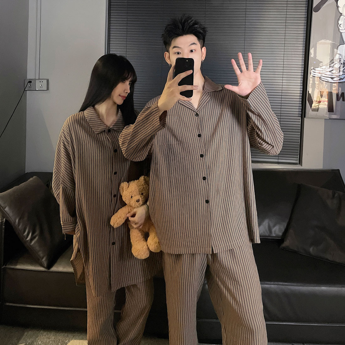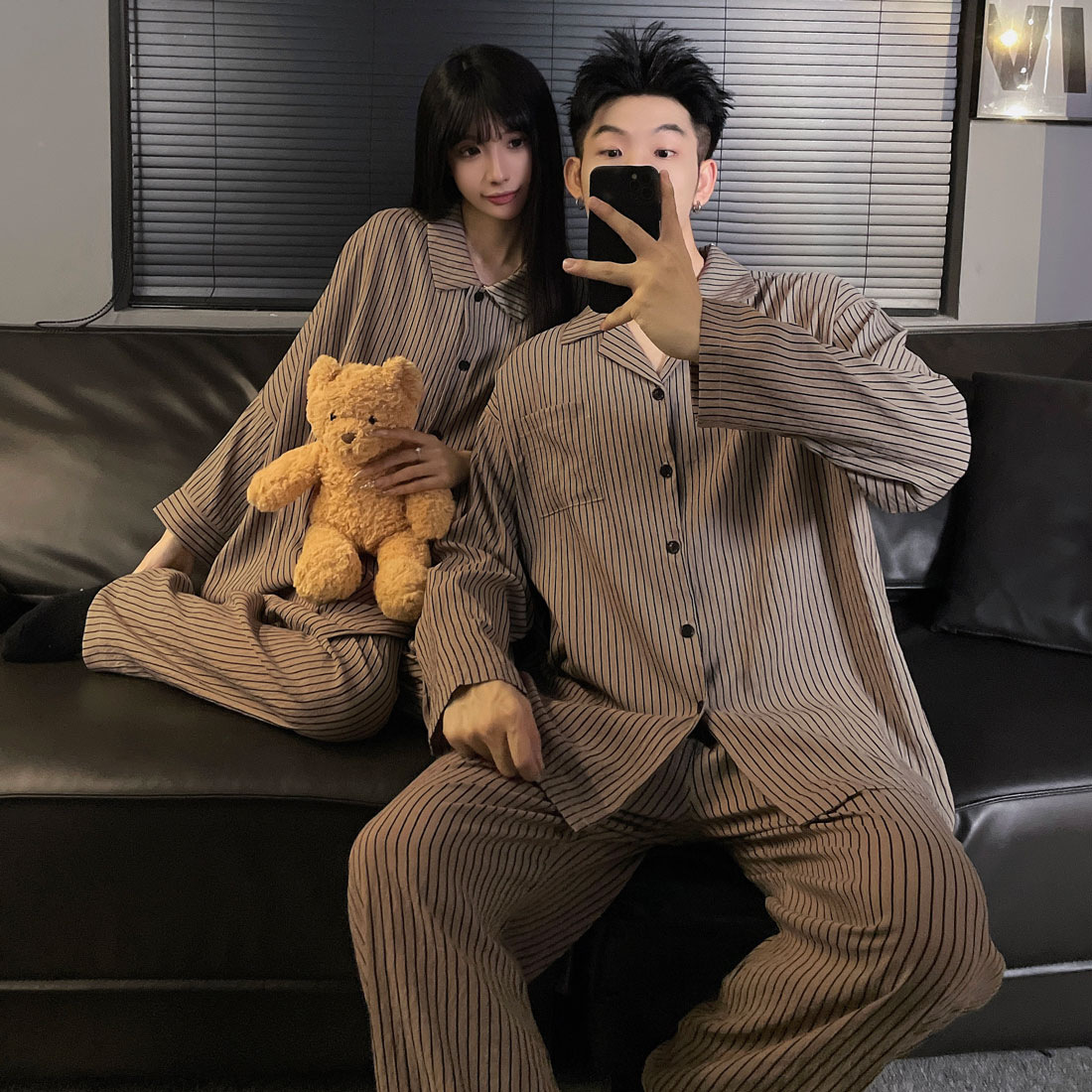 커플 잠옷 봄과 가을 구름 면 긴 소매 카디건 2024 새로운 간단한 캐주얼 남성과 여성의 홈 의류 세트