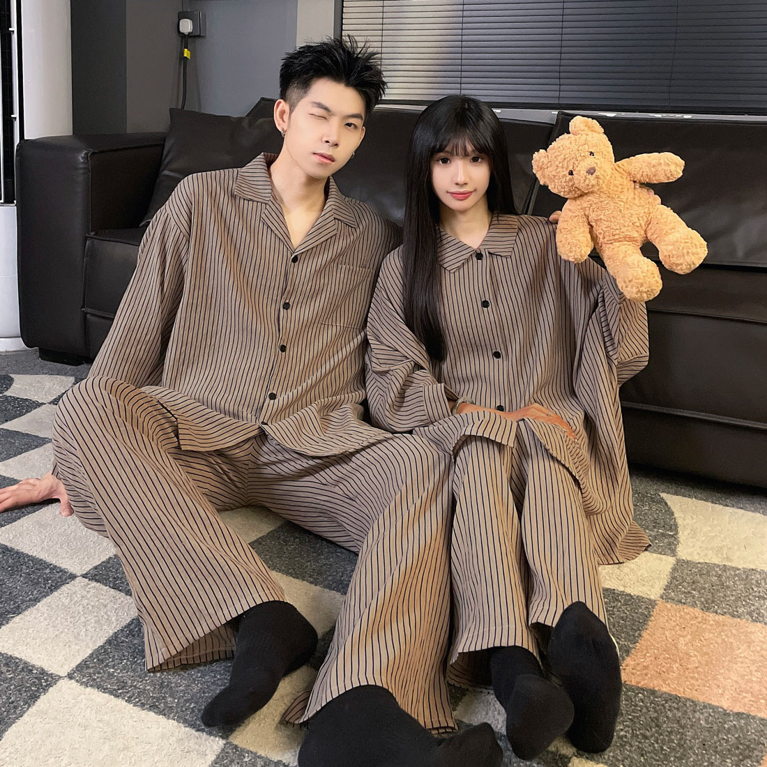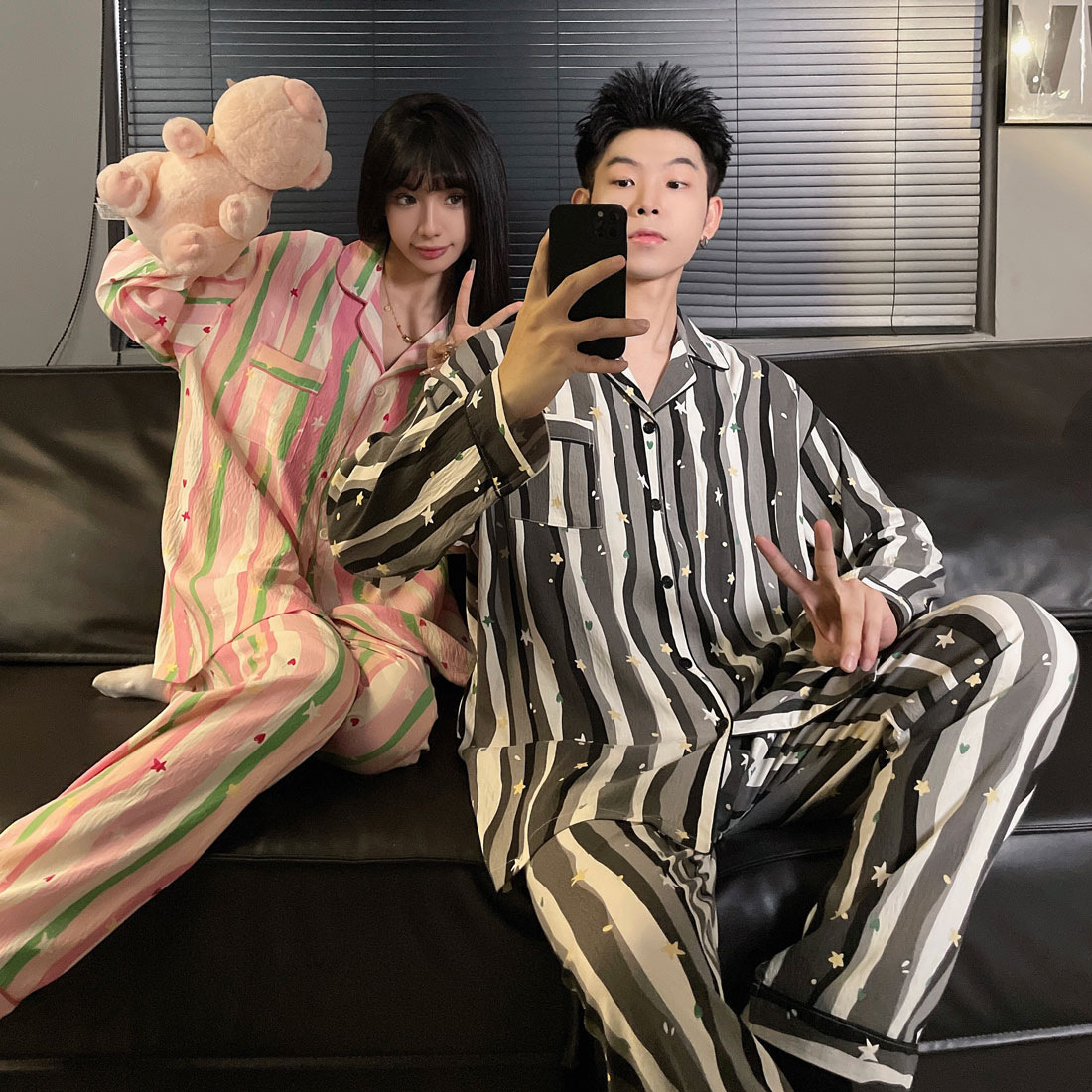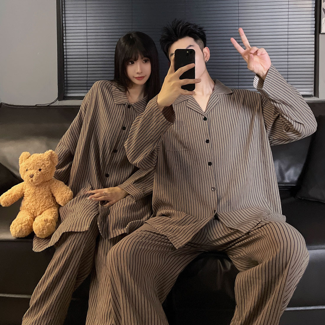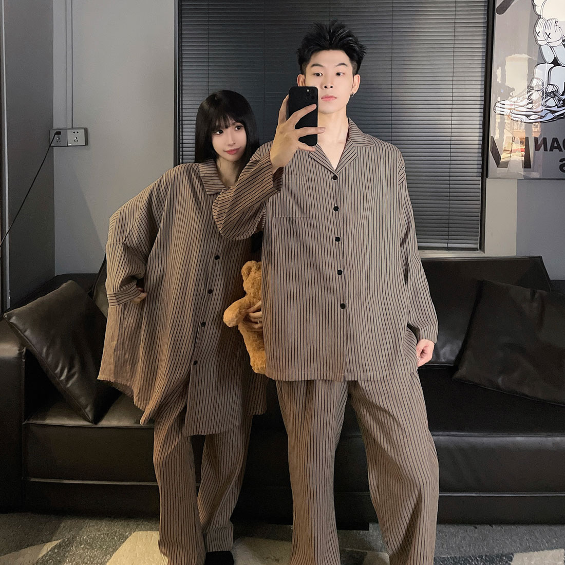 커플 잠옷 봄과 가을 구름 면 긴 소매 카디건 2024 새로운 간단한 캐주얼 남성과 여성의 홈 의류 세트