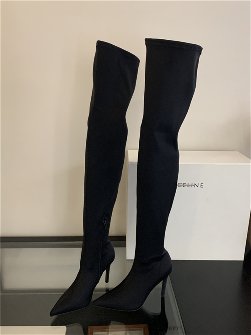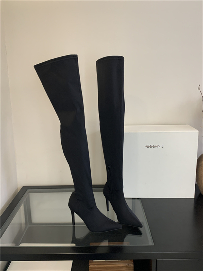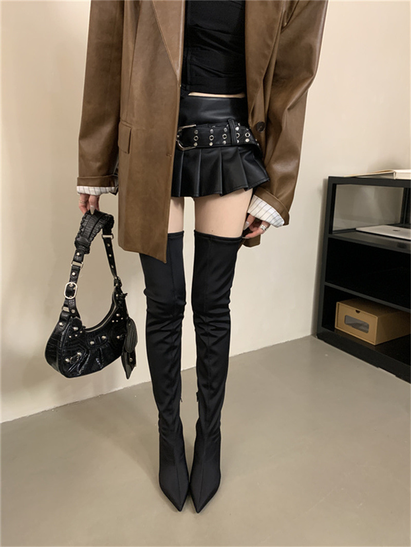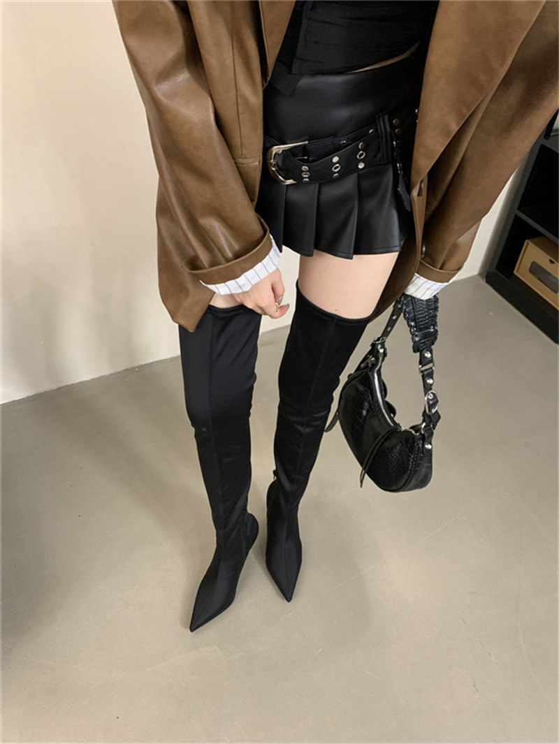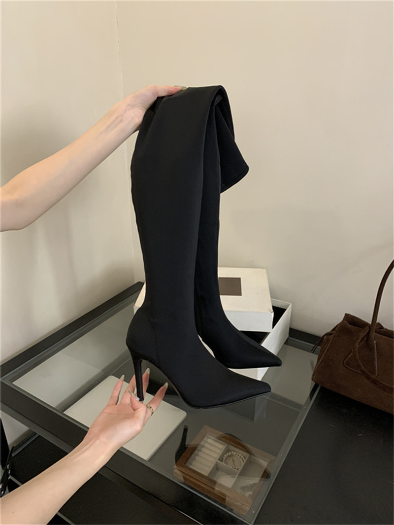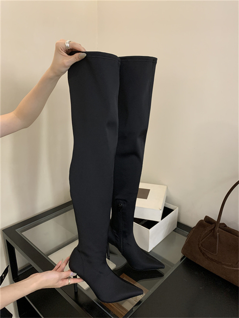 2025 가을 겨울 신상 하이탑 부츠 뾰족한 앞코 얇은 굽 하이힐 신축성 부츠 패션 오버니 부츠 여성용
