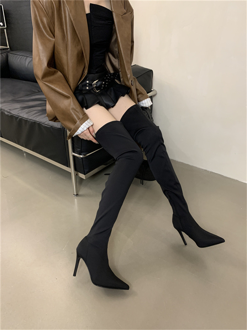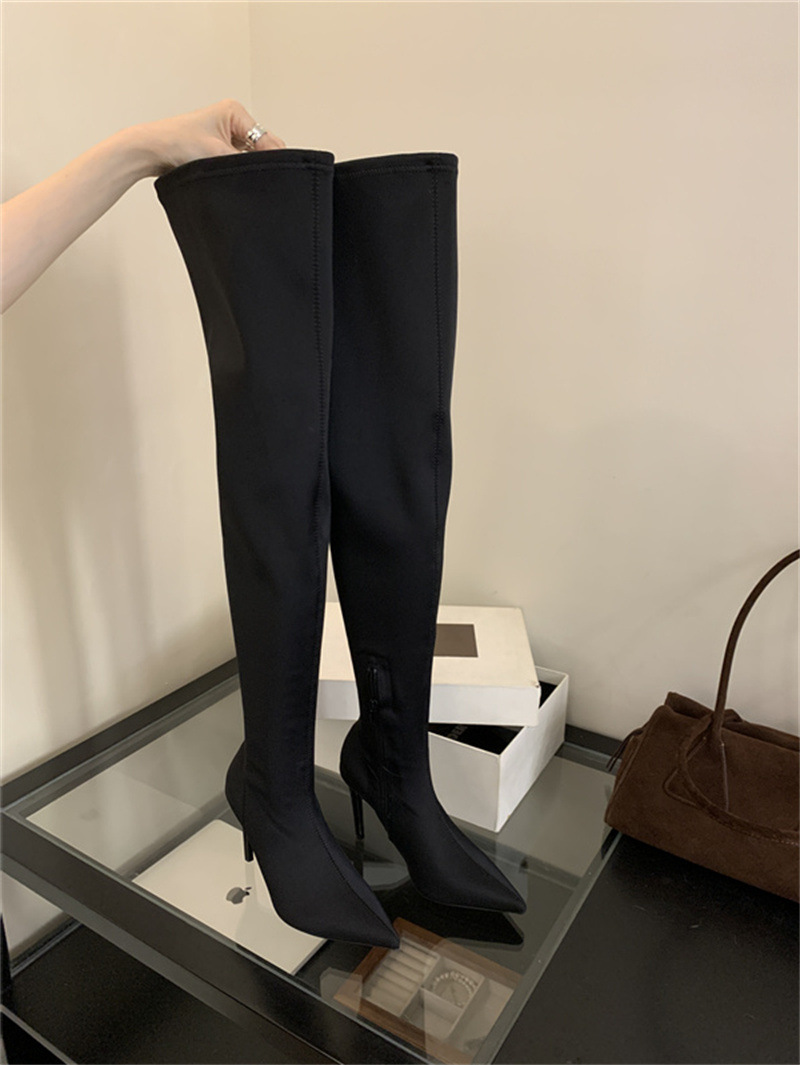 2025 가을 겨울 신상 하이탑 부츠 뾰족한 앞코 얇은 굽 하이힐 신축성 부츠 패션 오버니 부츠 여성용스토어 가기