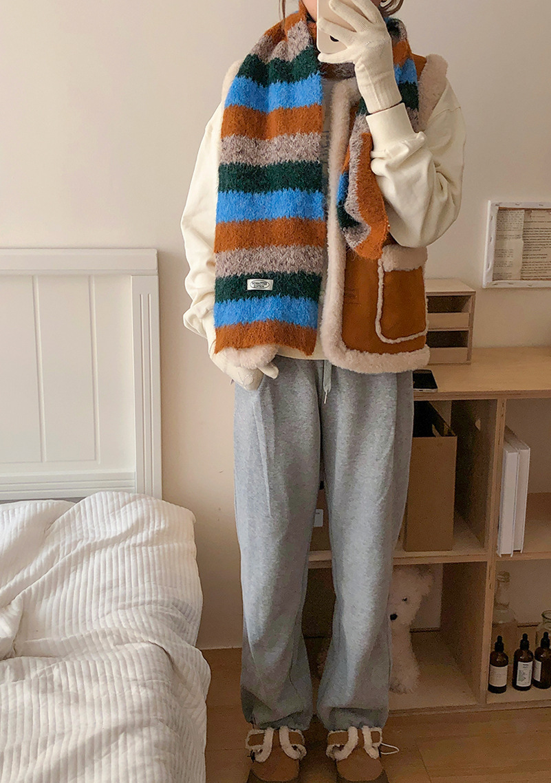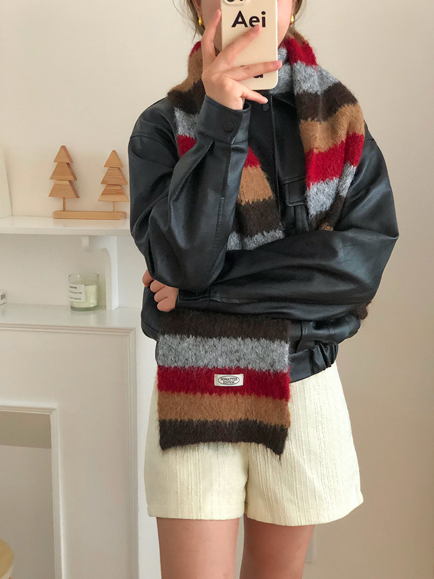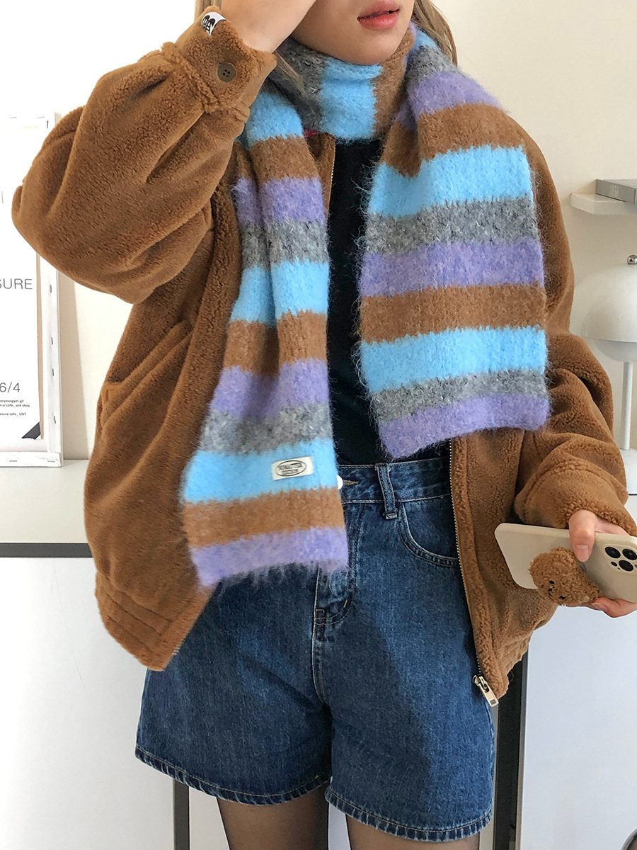 Ins 도파민 모헤어 레인보우 스카프 겨울 다채로운 줄무늬 다기능 따뜻한 목 일본 대학 스타일스토어 가기