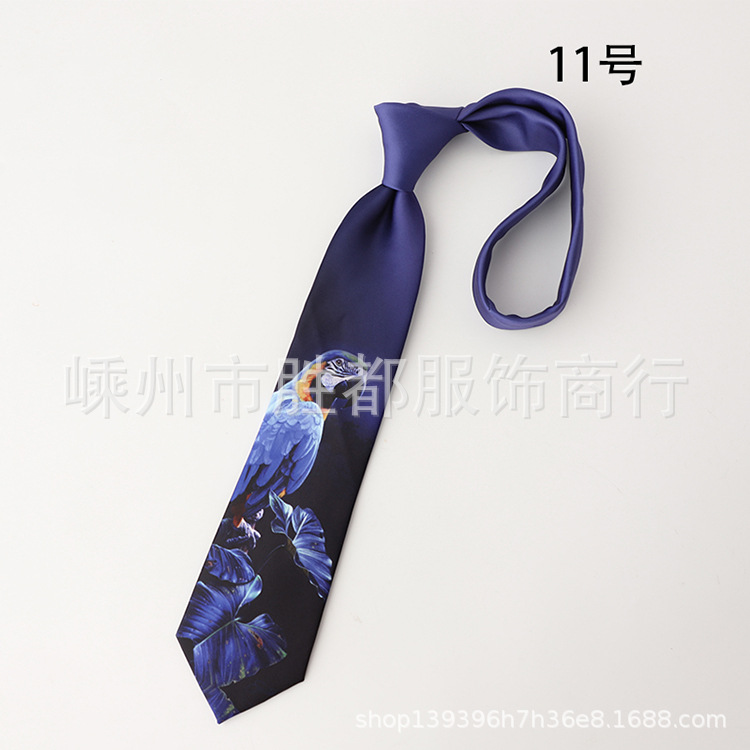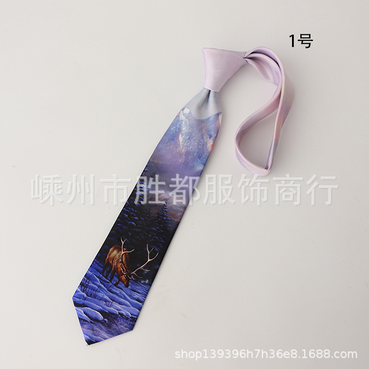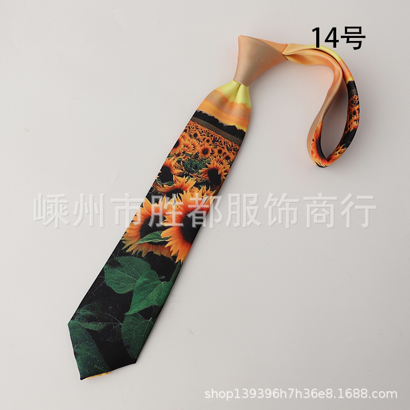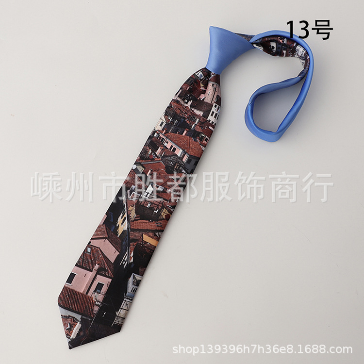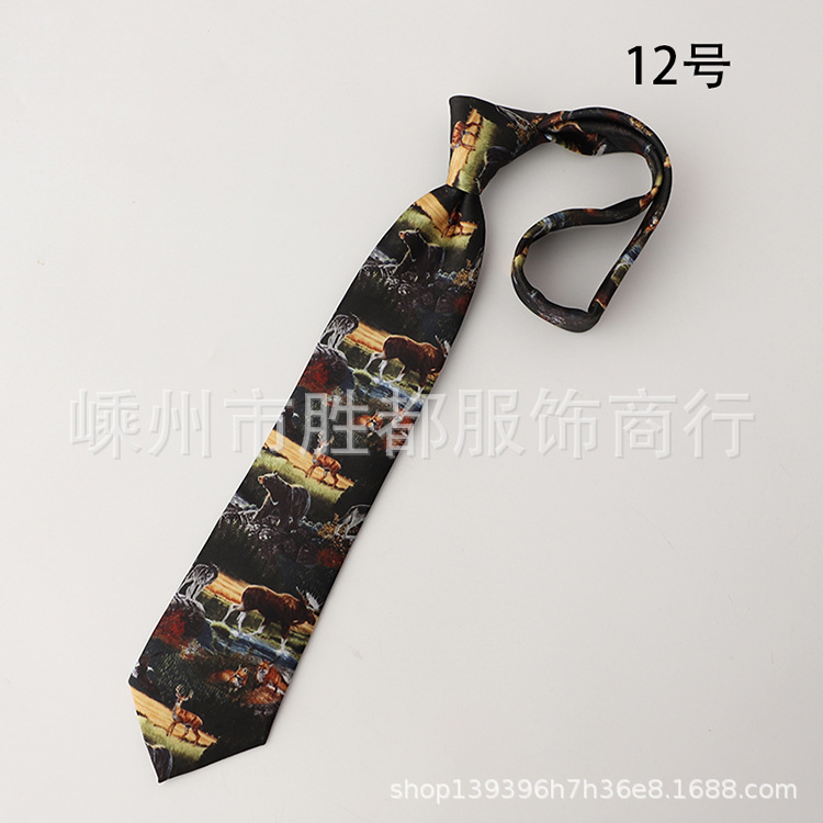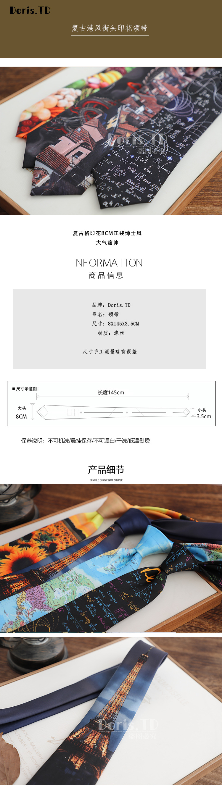 신제품 공장 재고 도매 레트로 인쇄 유화 홍콩 스타일 거리 8CM 캐주얼 아메리칸 타이 연회 카멜
