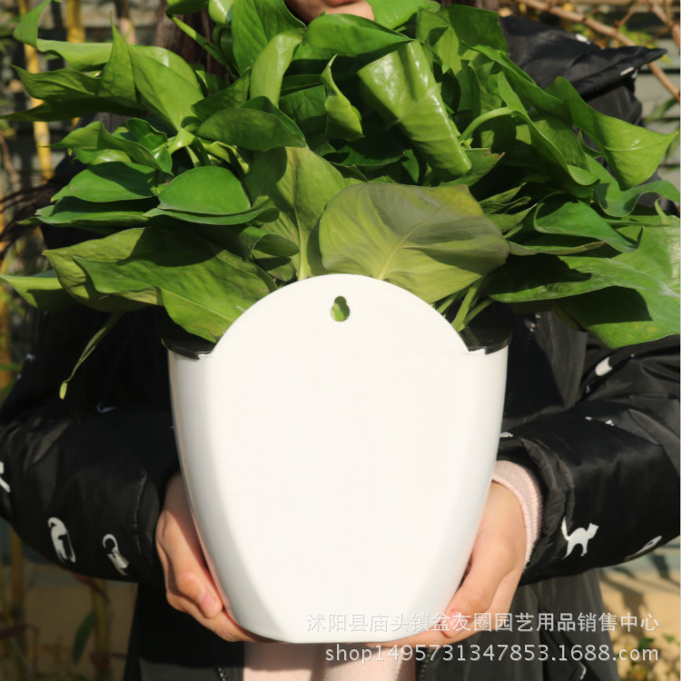 새로운 자동 흡수성 게으른 꽃 냄비 창조적 인 수경 벽걸이 라운드 수지 그린 로즈 플라스틱 꽃 냄비 도매스토어 가기